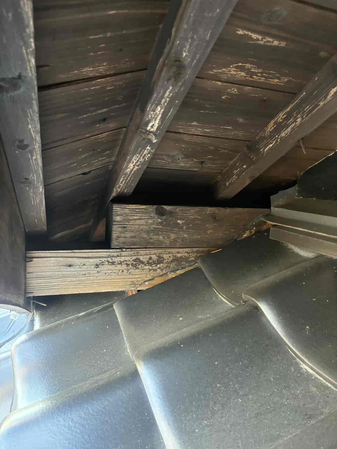 本件の害獣被害は、大屋根および入り母屋部分という高所での点検・作業が必須となる箇所が侵入経路となっています。