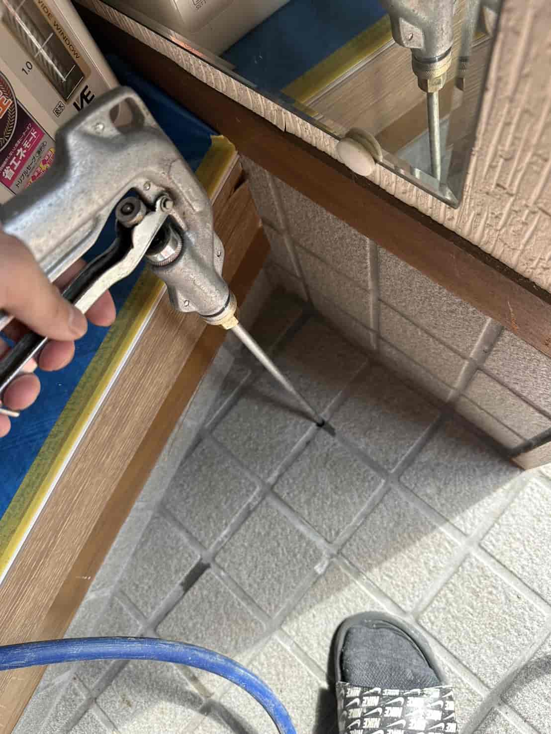 「玄関タイル穿孔処理」