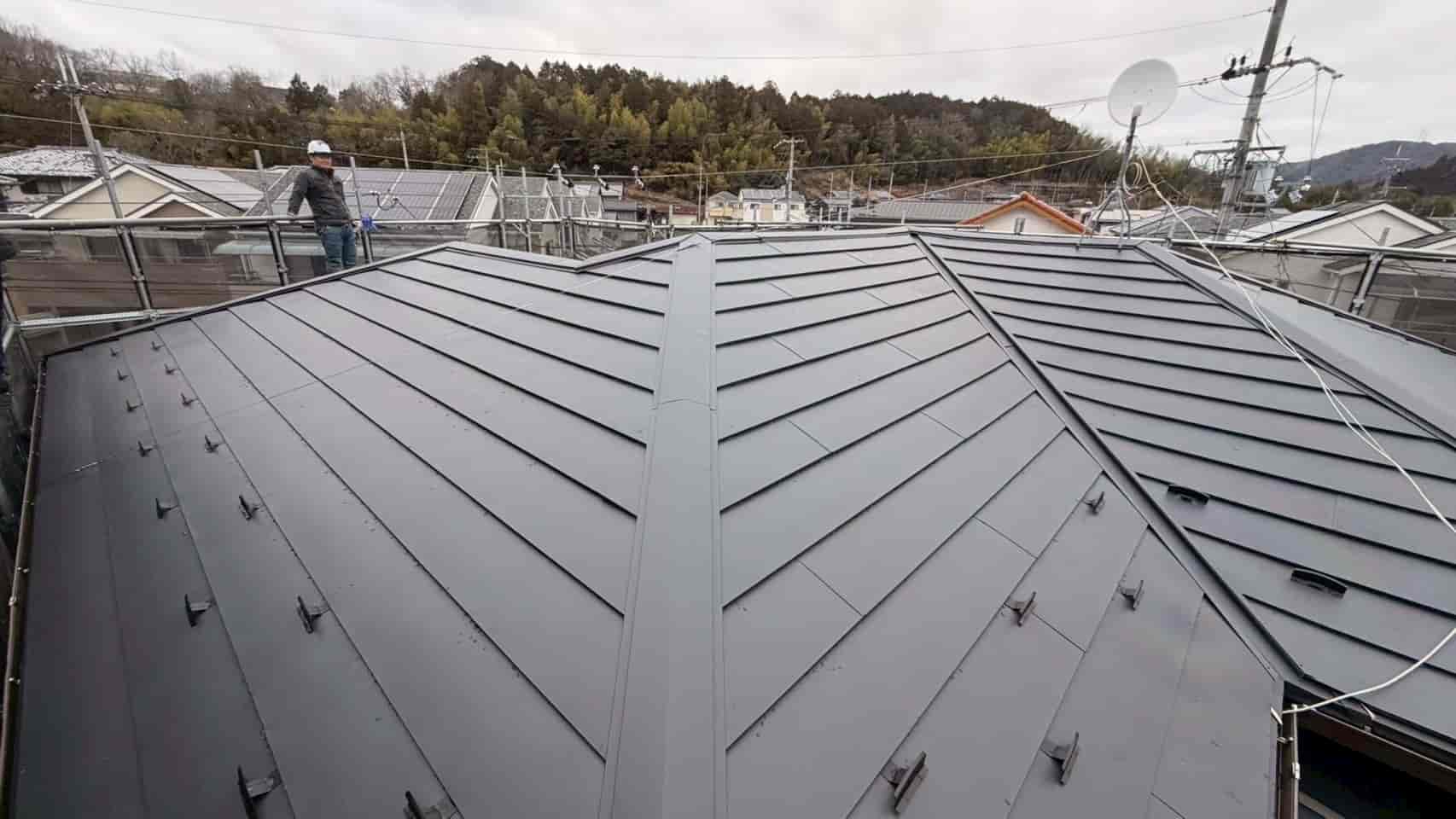 【対応】京都府南丹市にて、雨漏りが発生したカラーベスト屋根に対し、カバー工法でニチハ横暖ルーフを施工。防水性と断熱性を向上させ、雨漏りリスクを根本から改善しました。