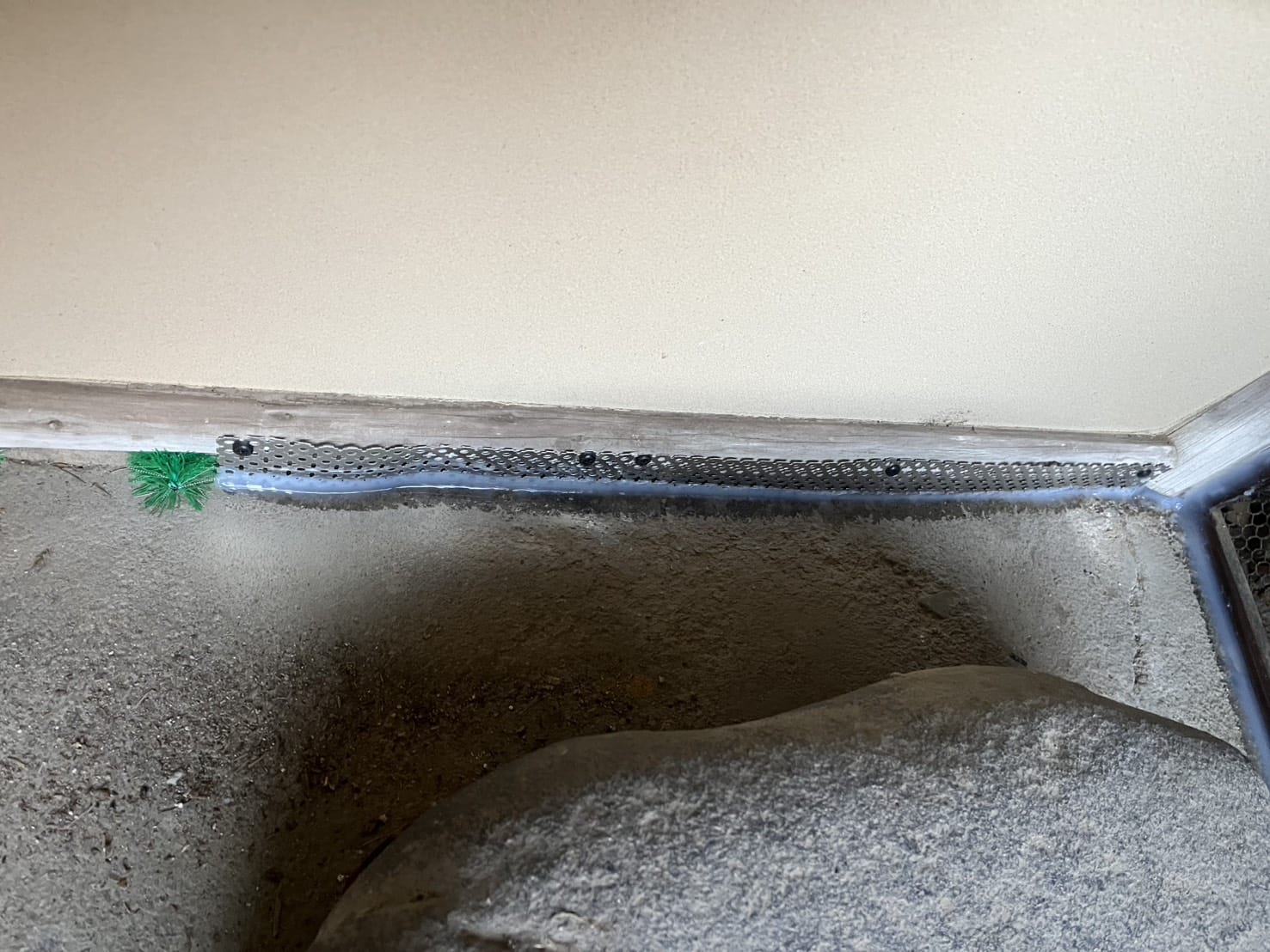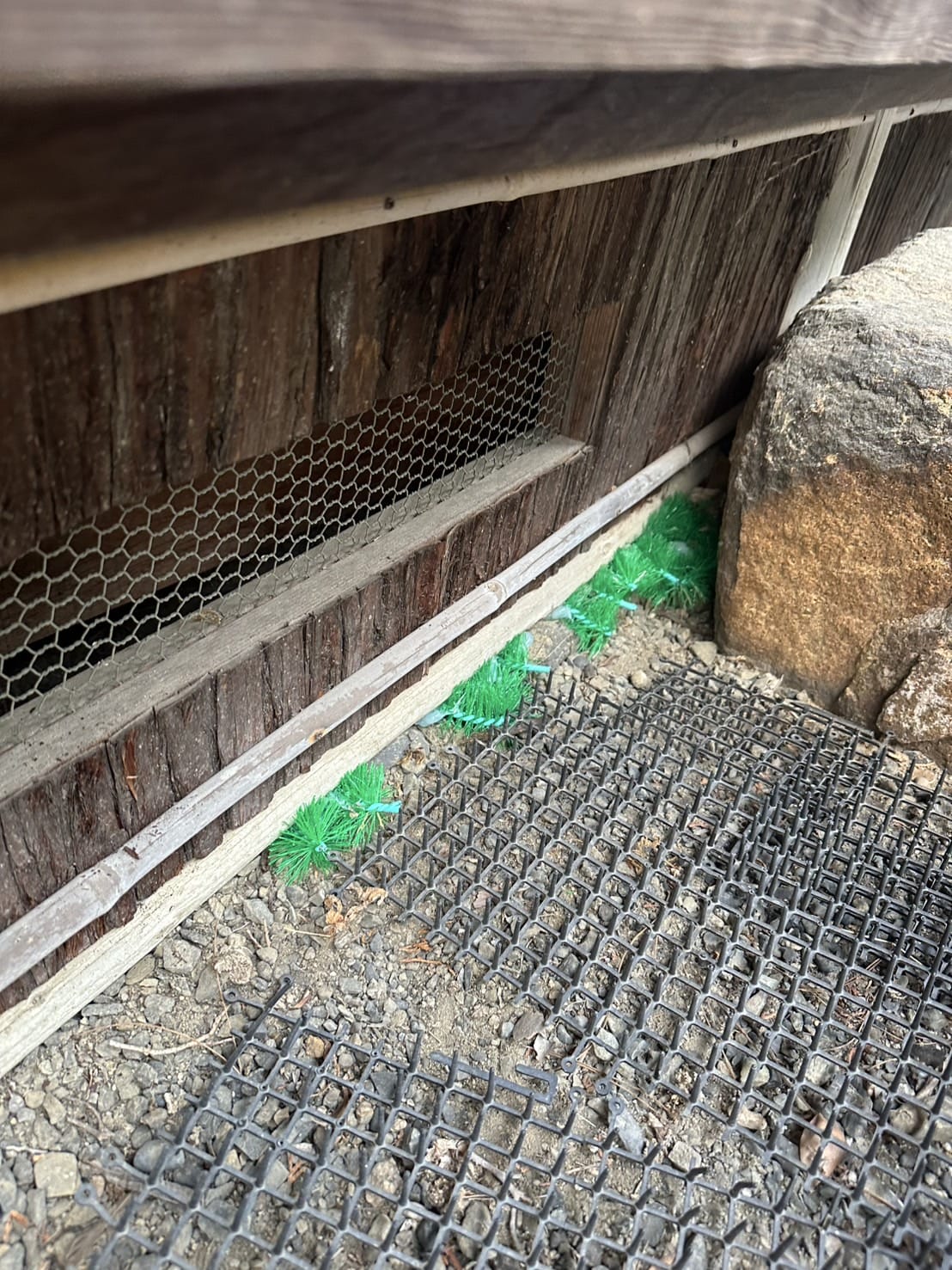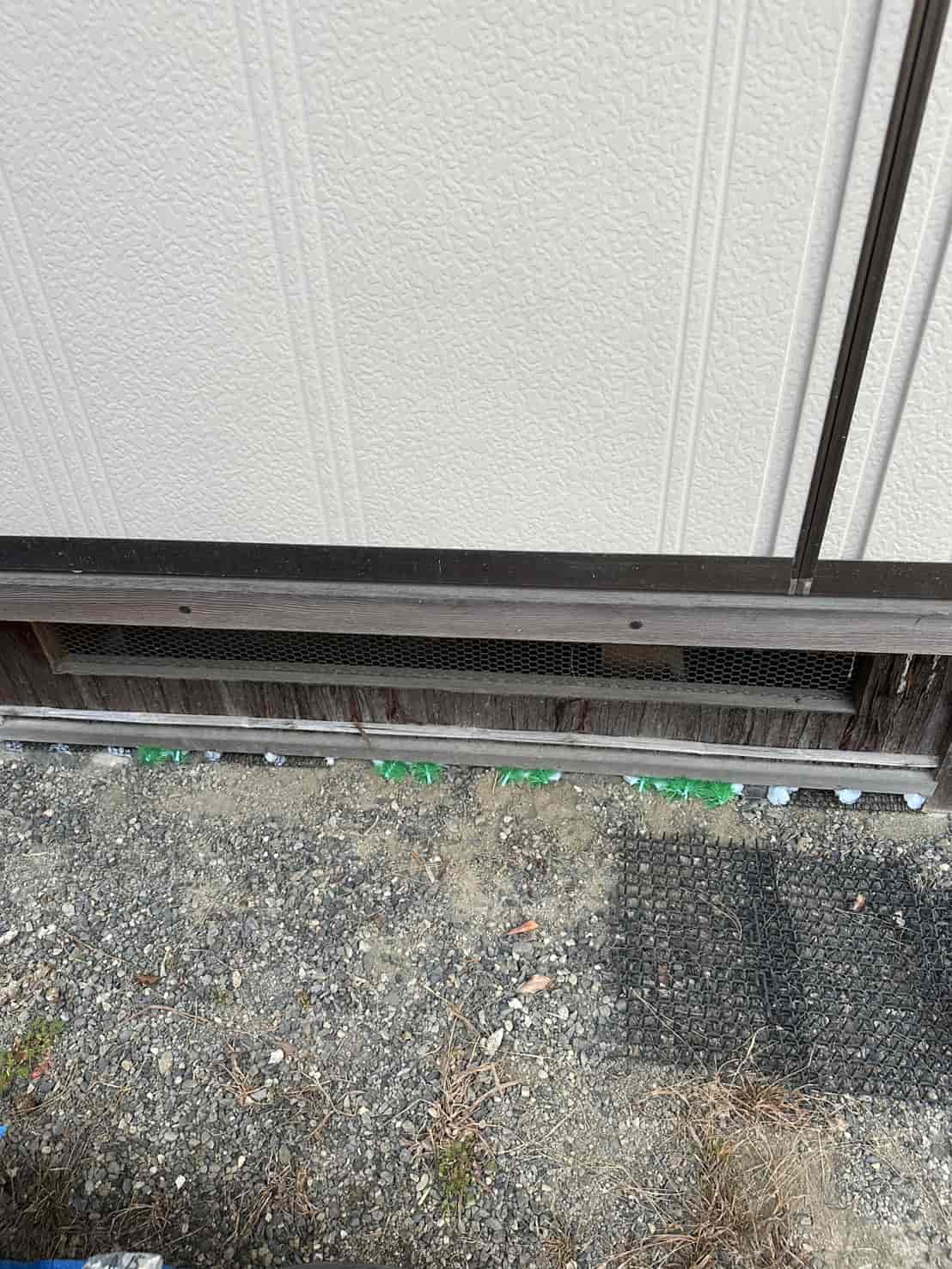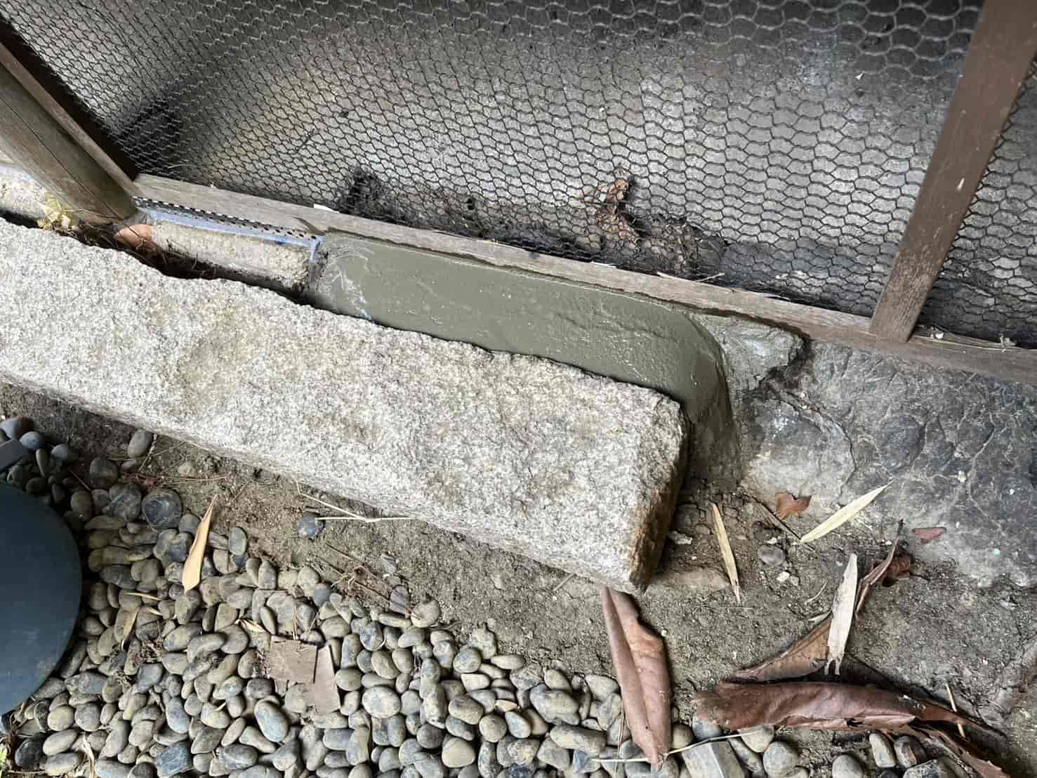 ひとつひとつの隙間を丁寧にふさぎ、再侵入ができないよう入念に施工。建物が広いこともあり、外周だけでも相当な箇所数があり、延べ4日間かけて全ての侵入口を封鎖しました。穴塞ぎでは「塞ぎすぎて通気を妨げない」「排水や換気に必要な部分の機能を残す」など、細かい技術が求められます。アビリティでは建物の構造を理解した上で適切に処理を行っています。
