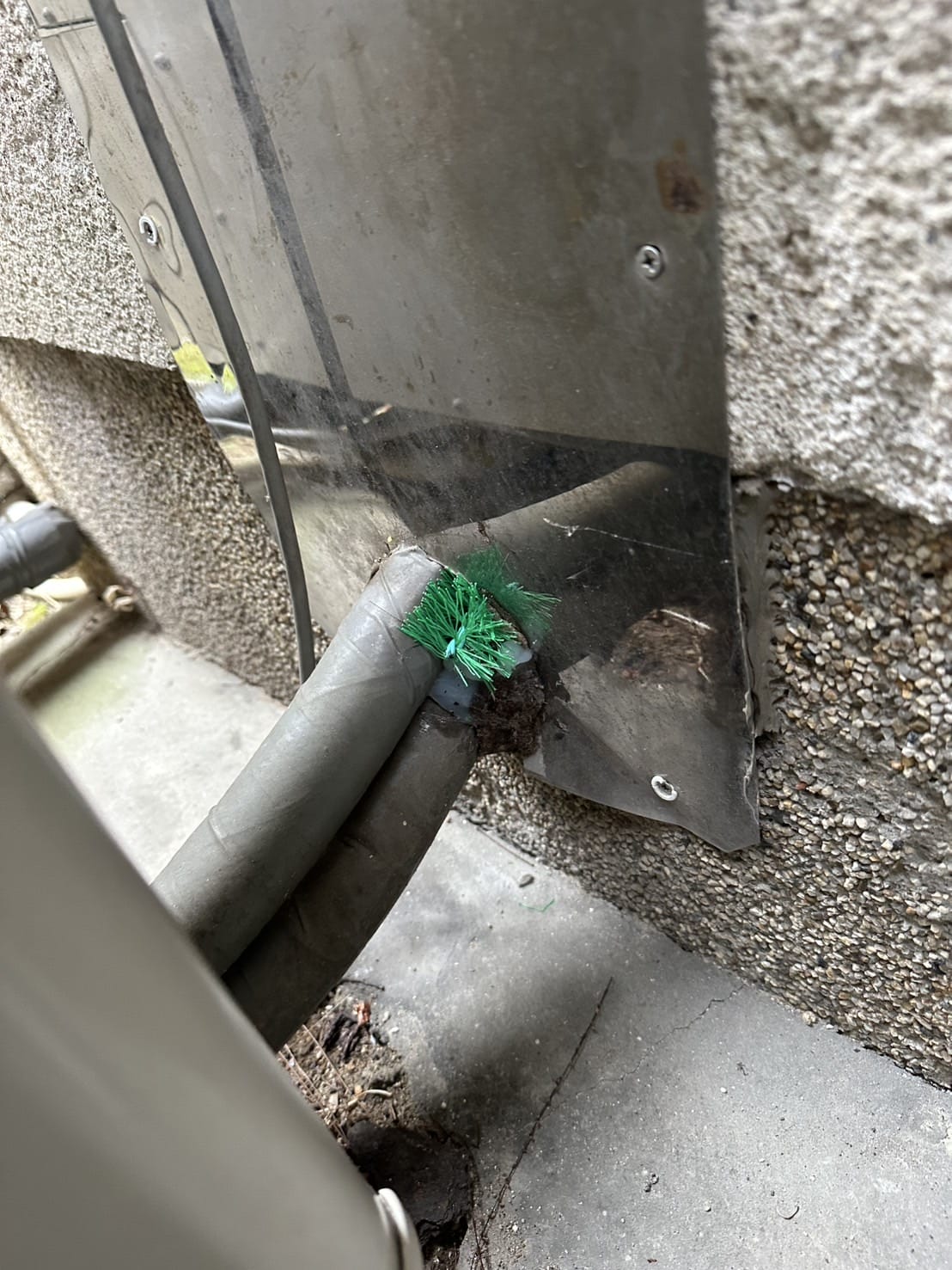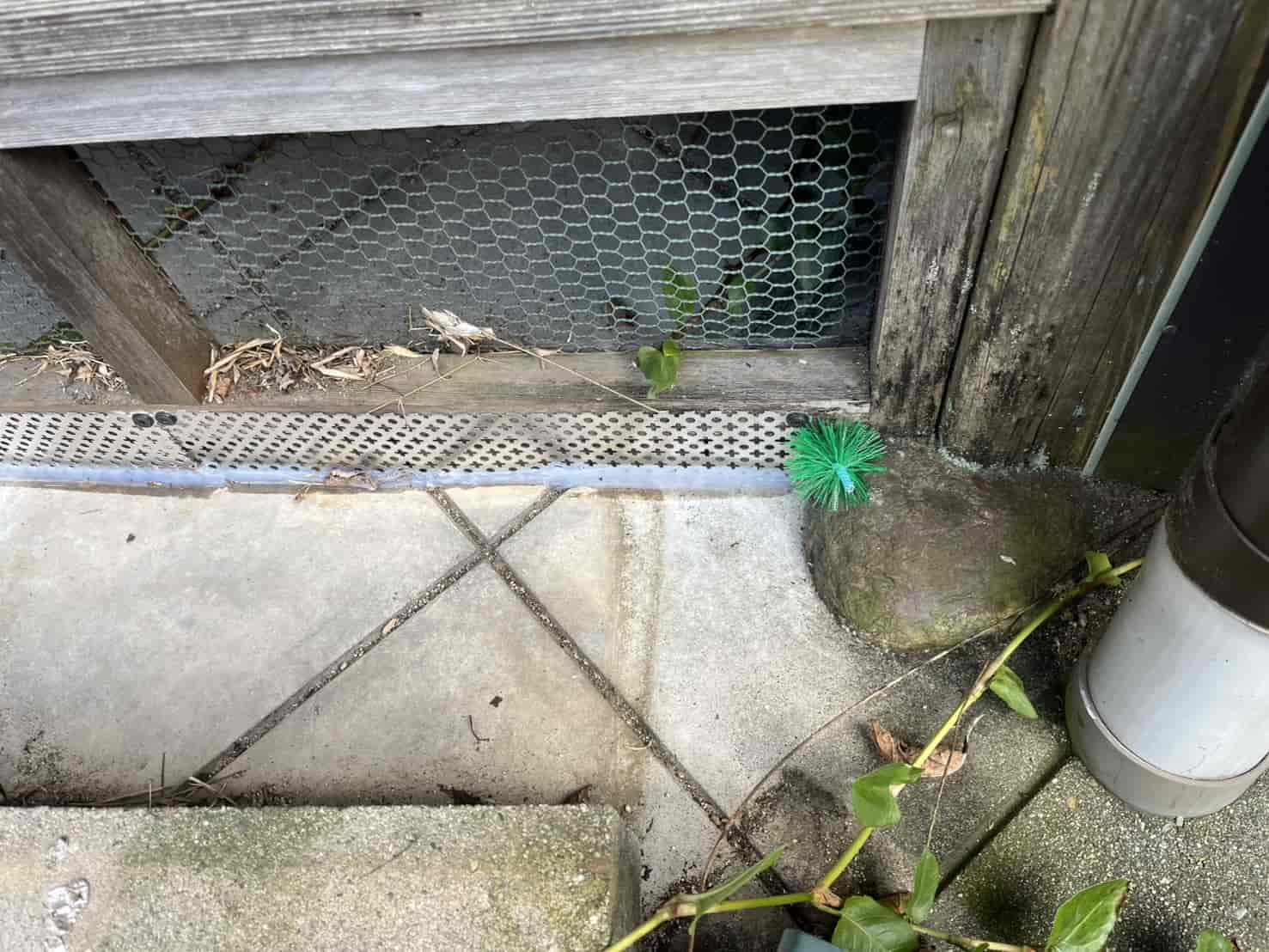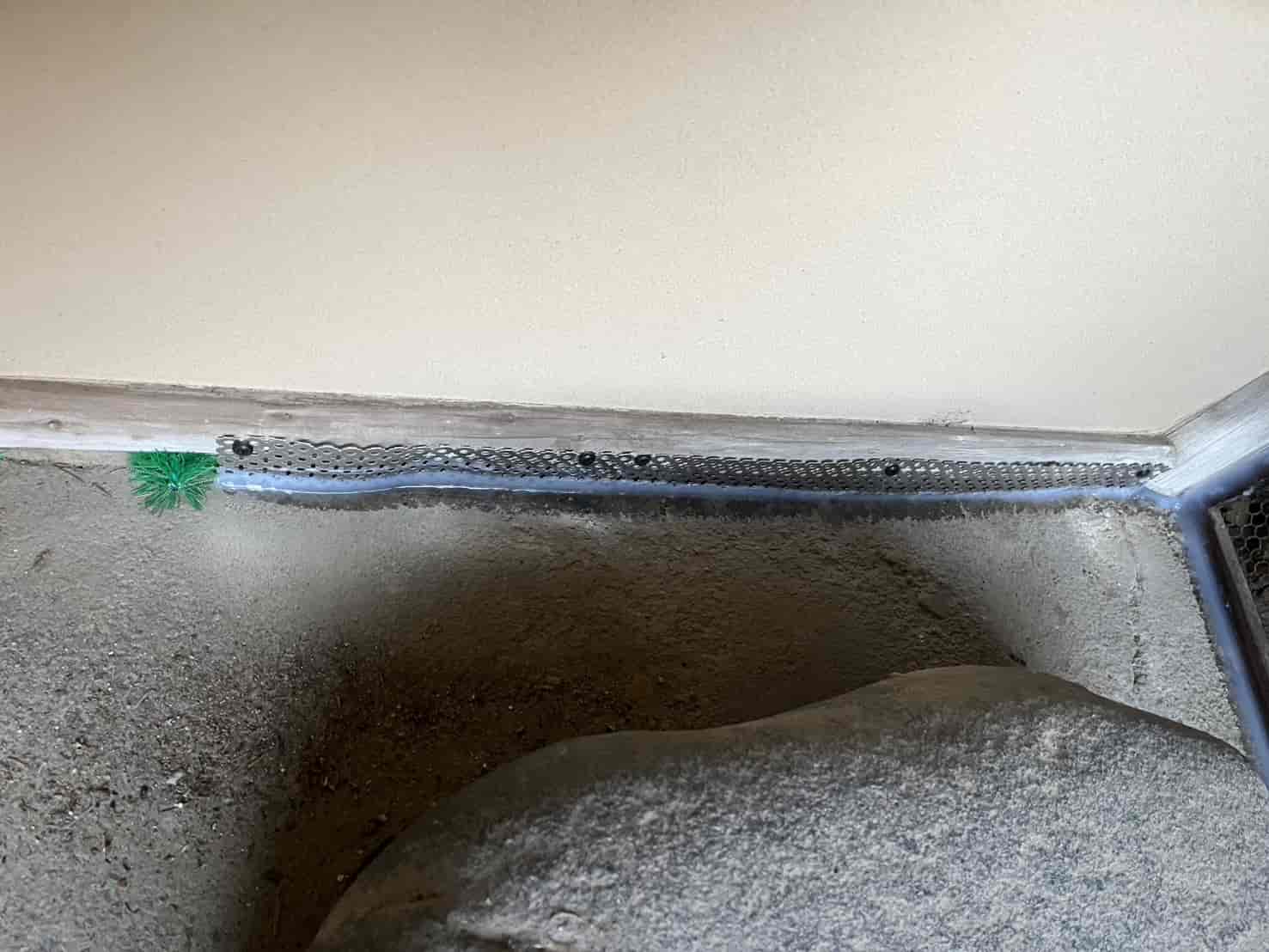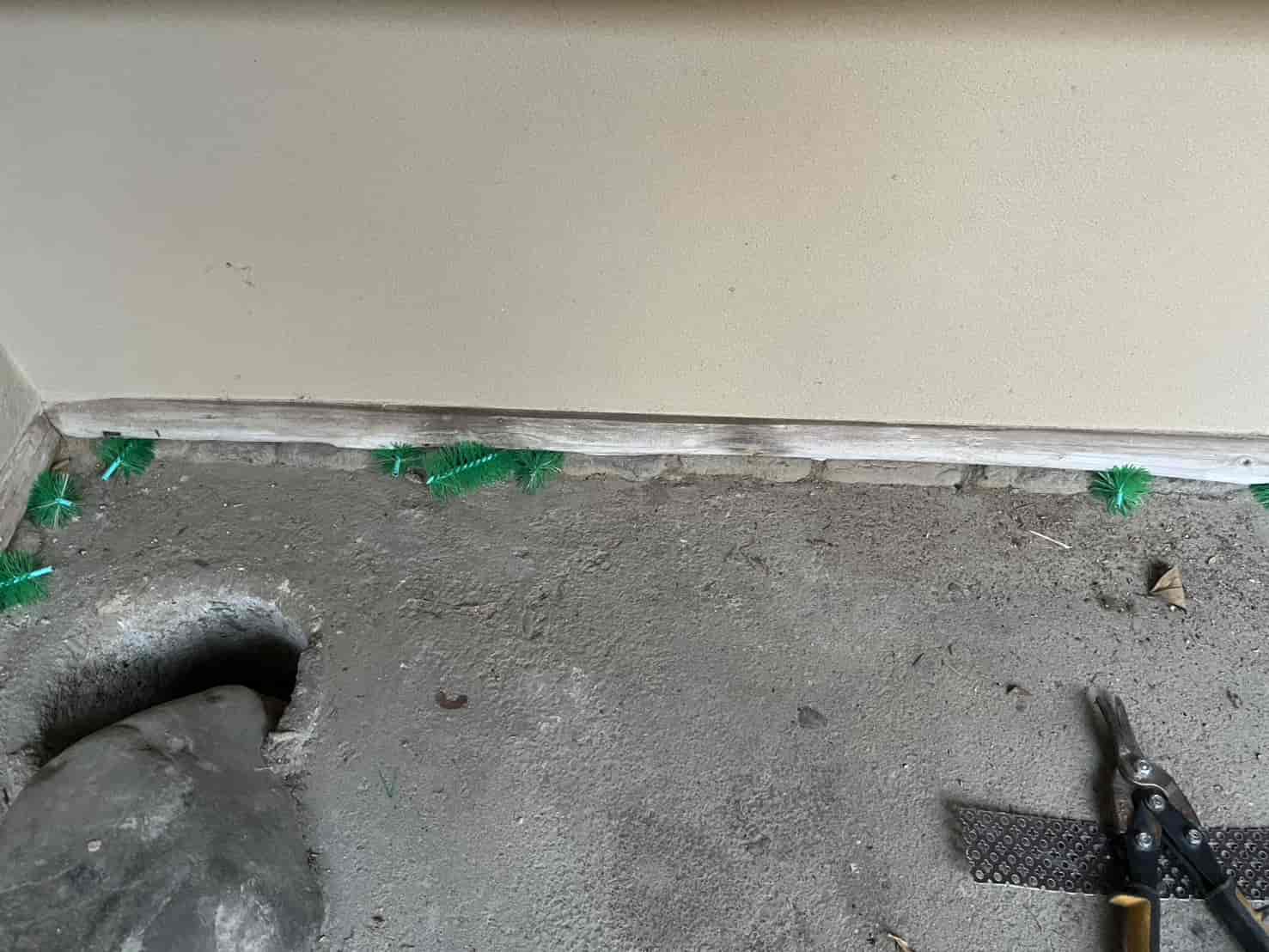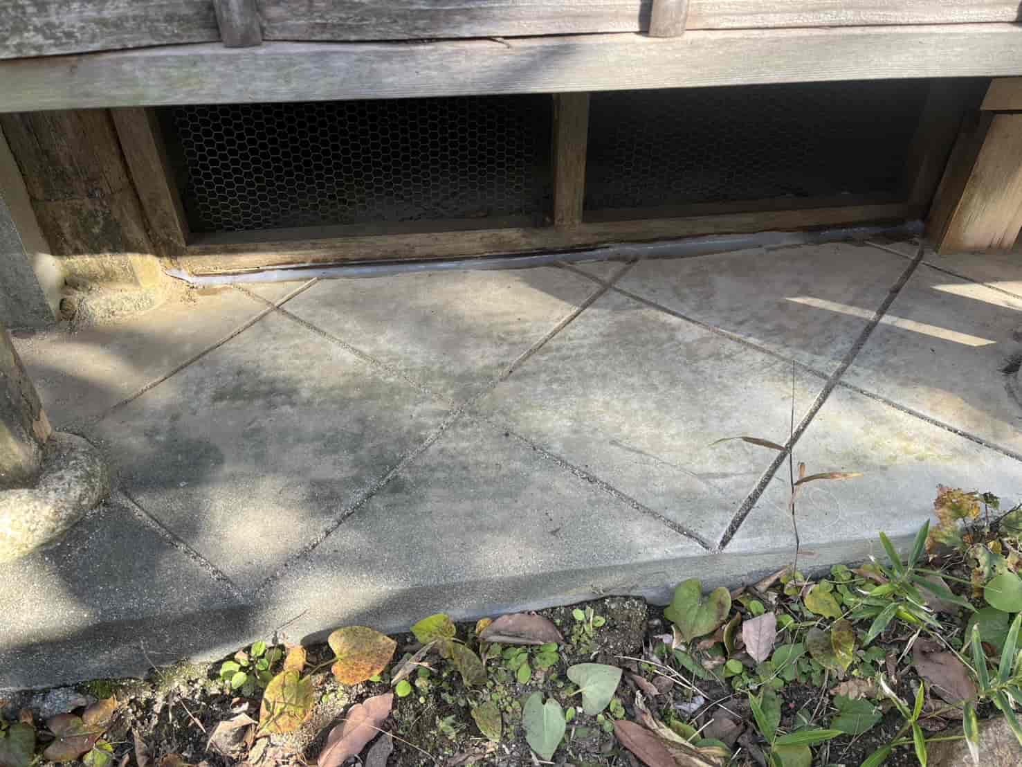 ひとつひとつの隙間を丁寧にふさぎ、再侵入ができないよう入念に施工。建物が広いこともあり、外周だけでも相当な箇所数があり、延べ4日間かけて全ての侵入口を封鎖しました。穴塞ぎでは「塞ぎすぎて通気を妨げない」「排水や換気に必要な部分の機能を残す」など、細かい技術が求められます。アビリティでは建物の構造を理解した上で適切に処理を行っています。