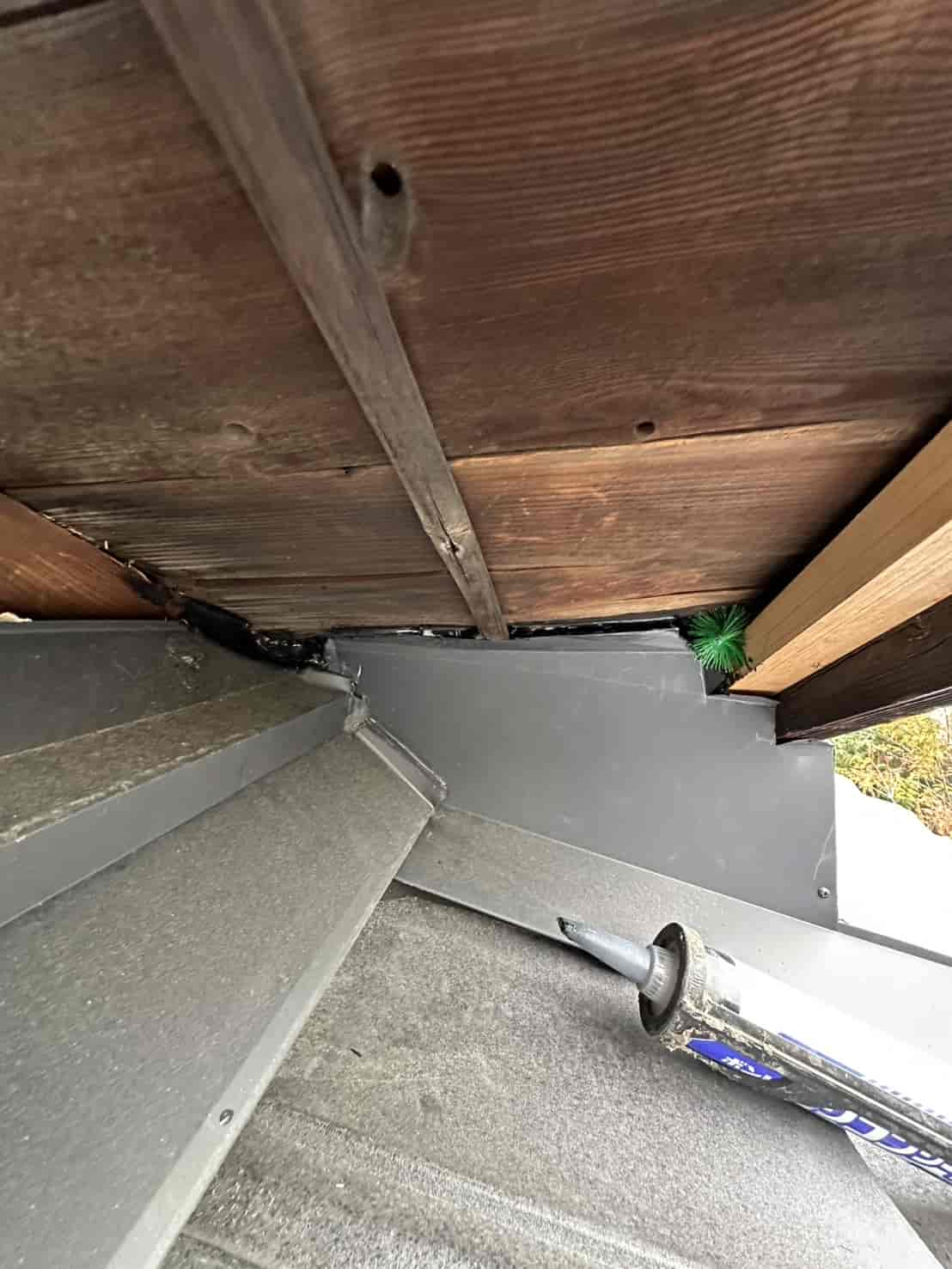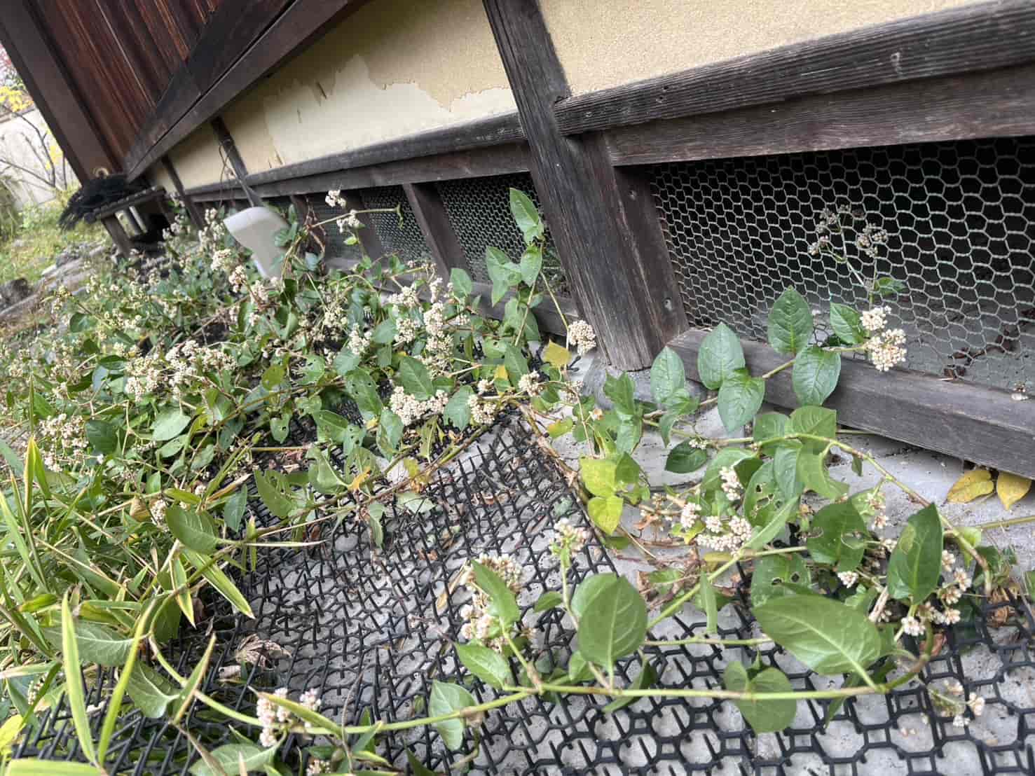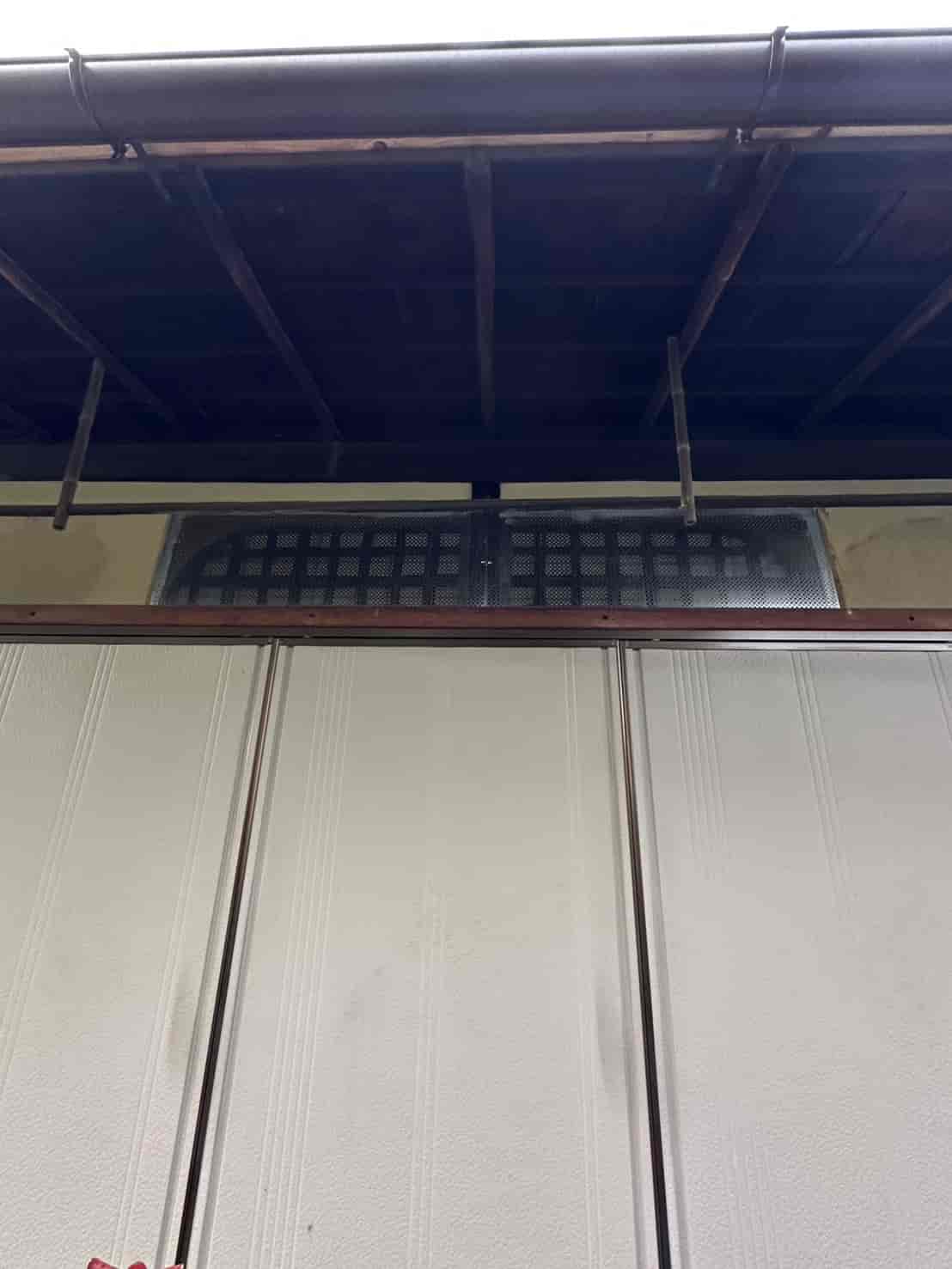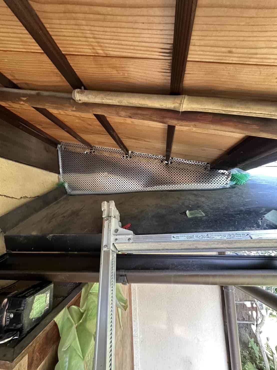 今回の工事で最も重要であり、かつ時間を要したのが「穴塞ぎ作業」です。建物が大きく、屋根裏・床下・外周・換気部分・配管部など細かい隙間が多数存在していました。