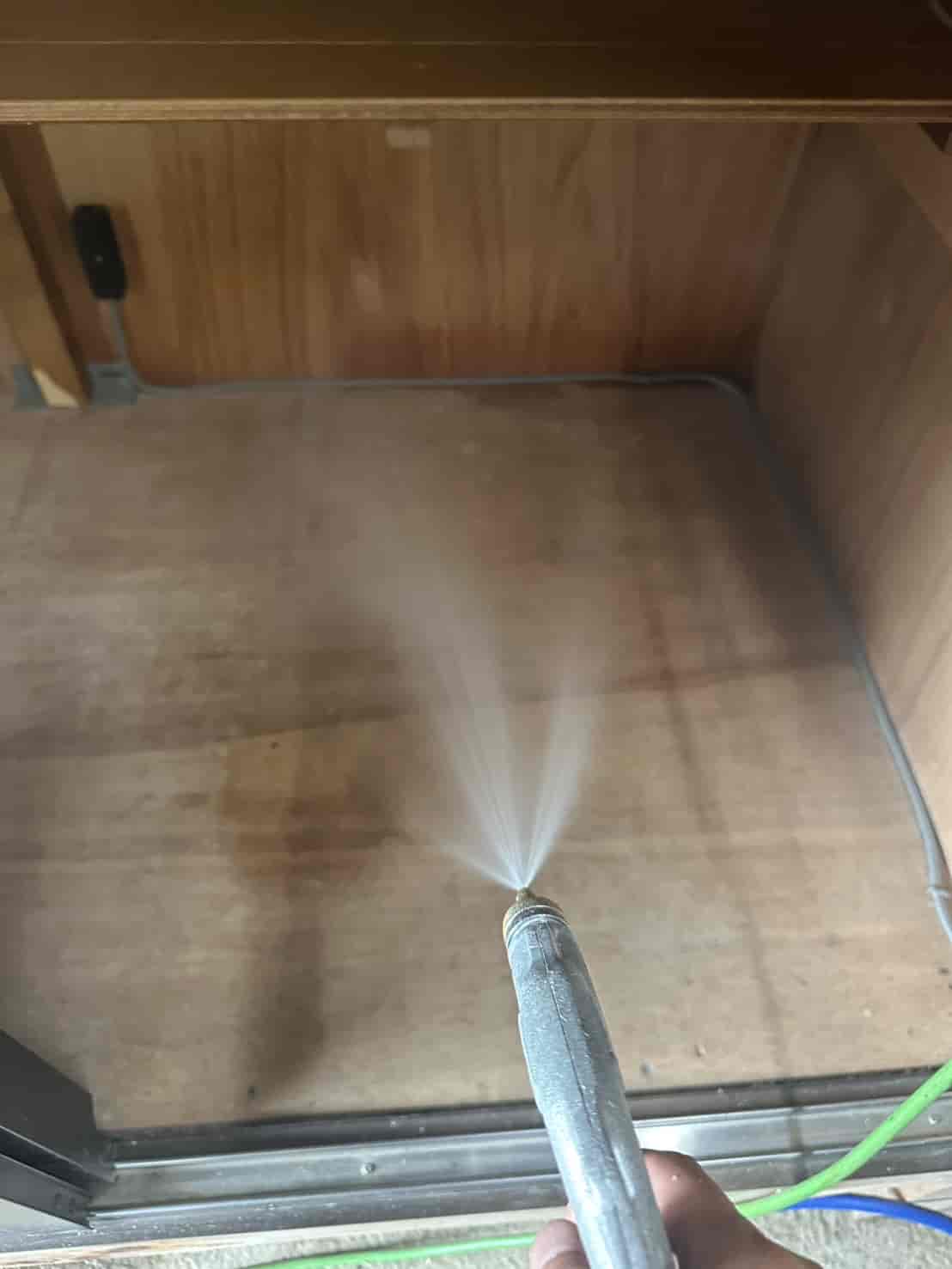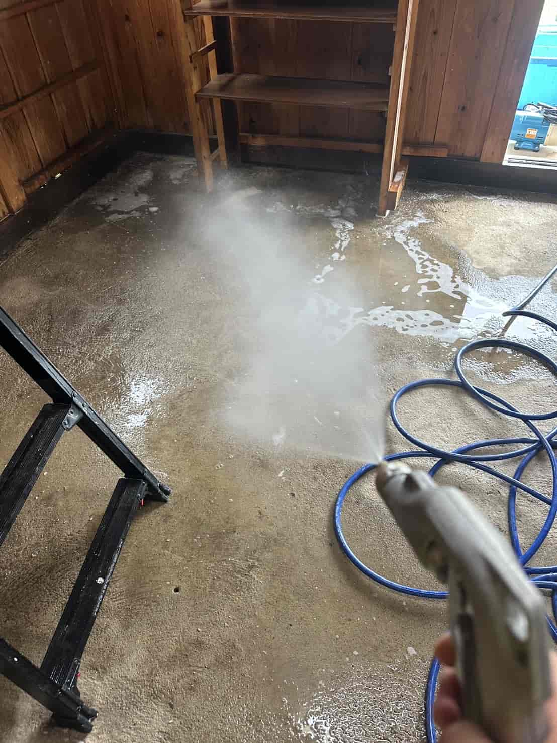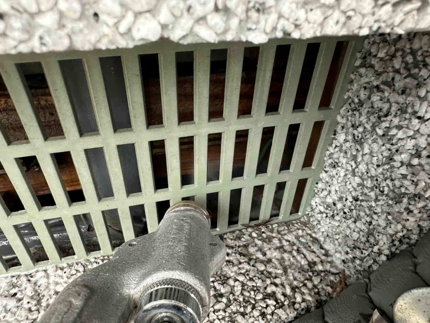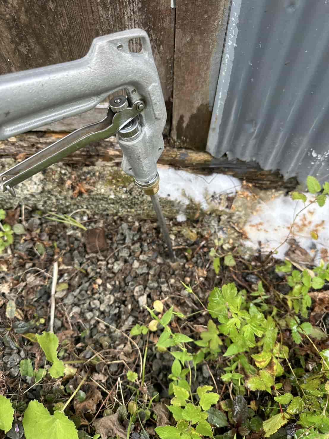 土間仕上げの床面に一定間隔で小さな穴を開け、専用の薬剤を加圧注入しました。これにより、土壌全体に薬剤が行き渡り、シロアリの通り道や巣を遮断することができます。床下がない構造の建物でも有効な方法です。