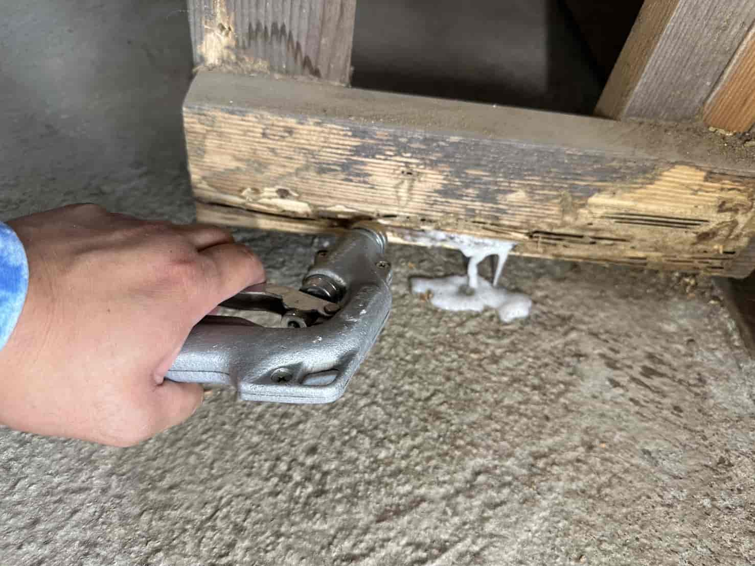 白アリは建物の木材を食べ進めるため、外から見ただけでは被害に気づきにくいのが特徴です。今回のように2階の畳にまで達するケースもあり、気づいたときには被害が相当広がっていることが珍しくありません。特に離れや古い建物では床下がなく、被害の進行を確認しづらいため注意が必要です。白アリの被害は自然に止まることはなく、必ず専門業者による駆除が必要です。