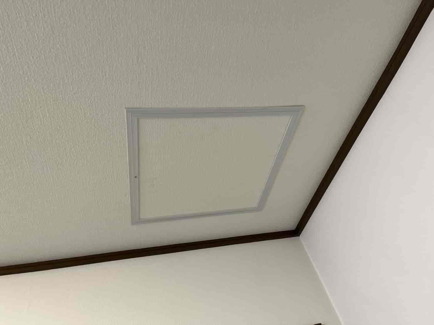 ネズミの活動状況の確認や、今後の駆除・清掃作業を安全かつスムーズに行うため、作業の起点となる点検口を新設します。これにより、天井裏という閉鎖空間へのアクセスが容易になり、効果的な作業が可能になります。