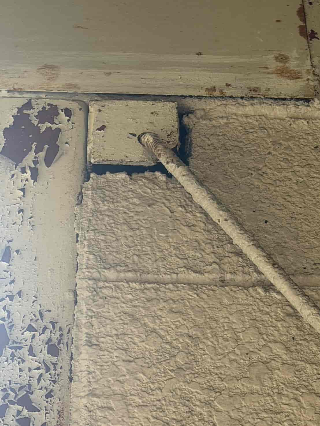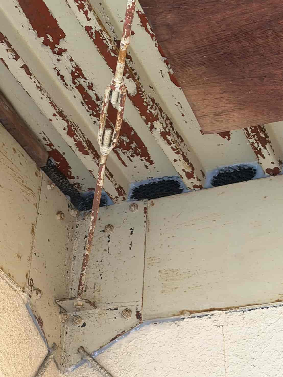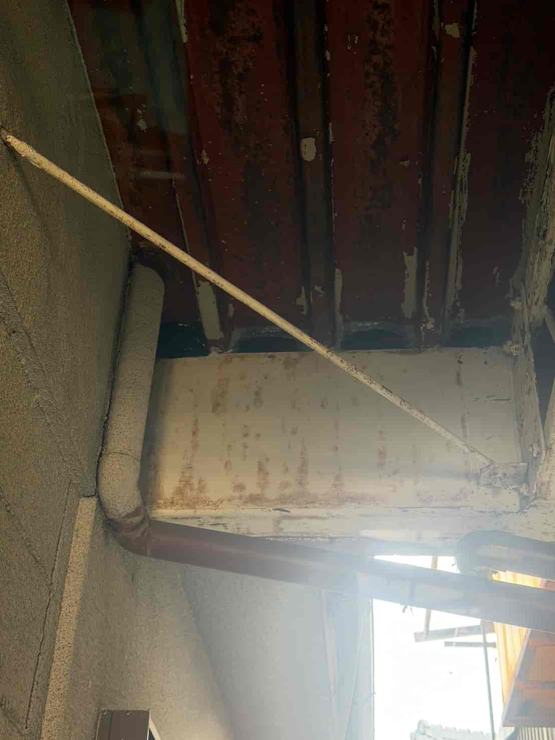 天井裏・床下・外回りを点検したところ、今回のネズミ侵入経路は 鉄骨周りの隙間 であることが判明しました。