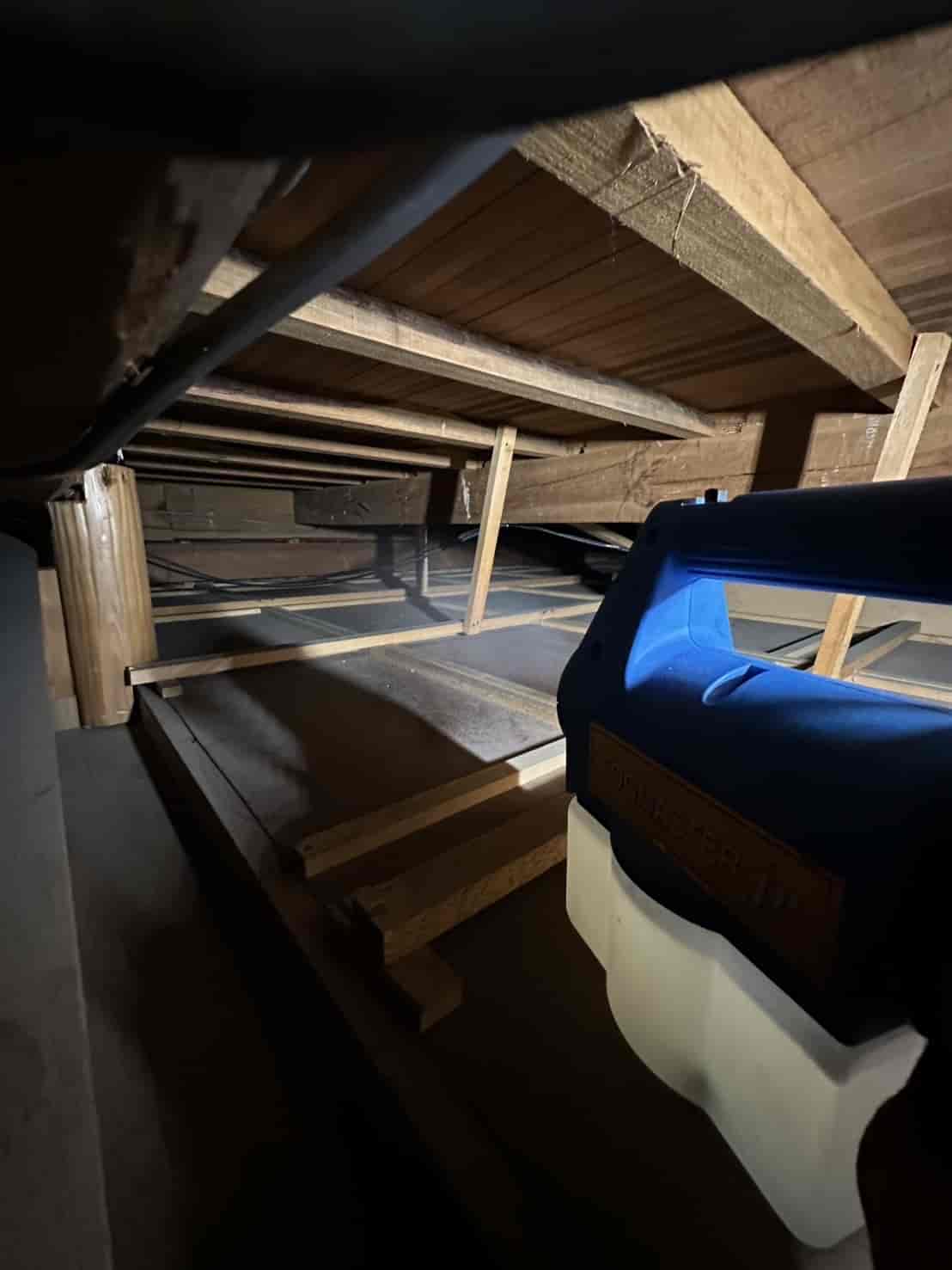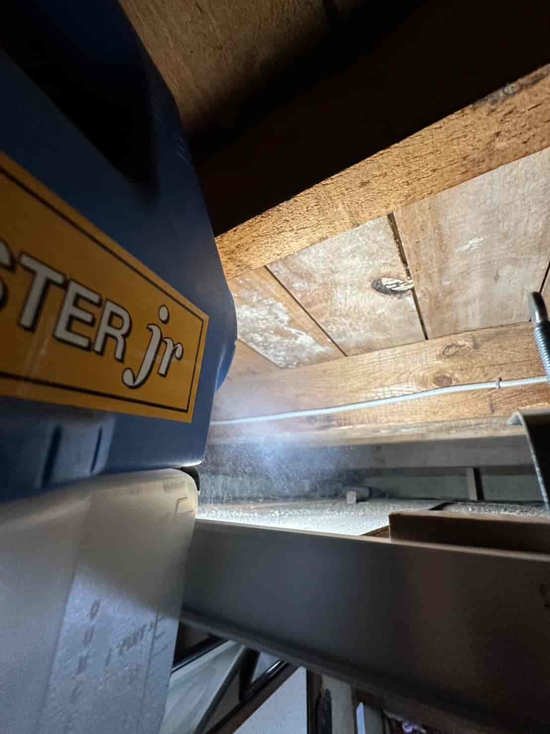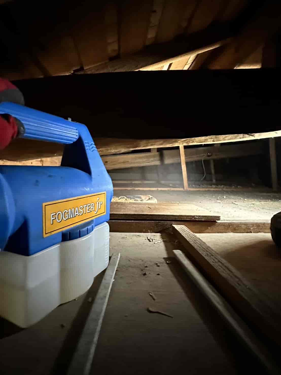 天井裏へ忌避型の専用燻煙スモーク剤を焚き込みました。
