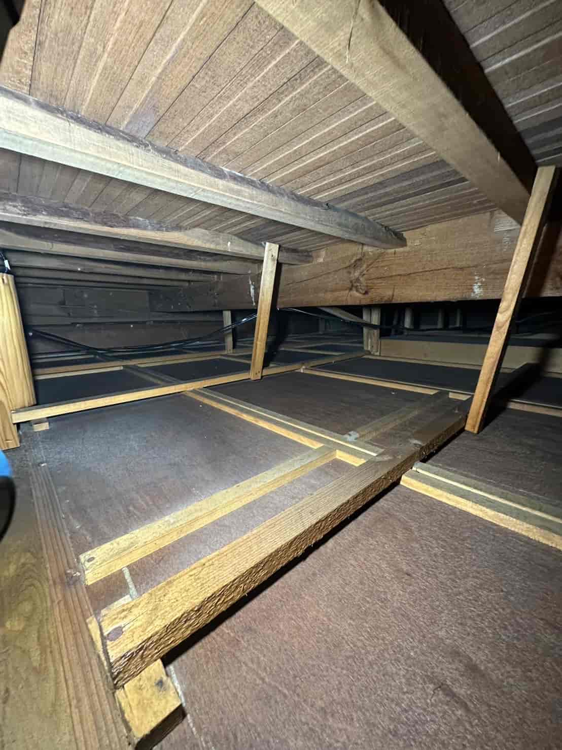 天井裏にはフンの散乱と巣材の痕跡、断熱材の掘り返しが確認され、衛生面でも深刻な状況でした。