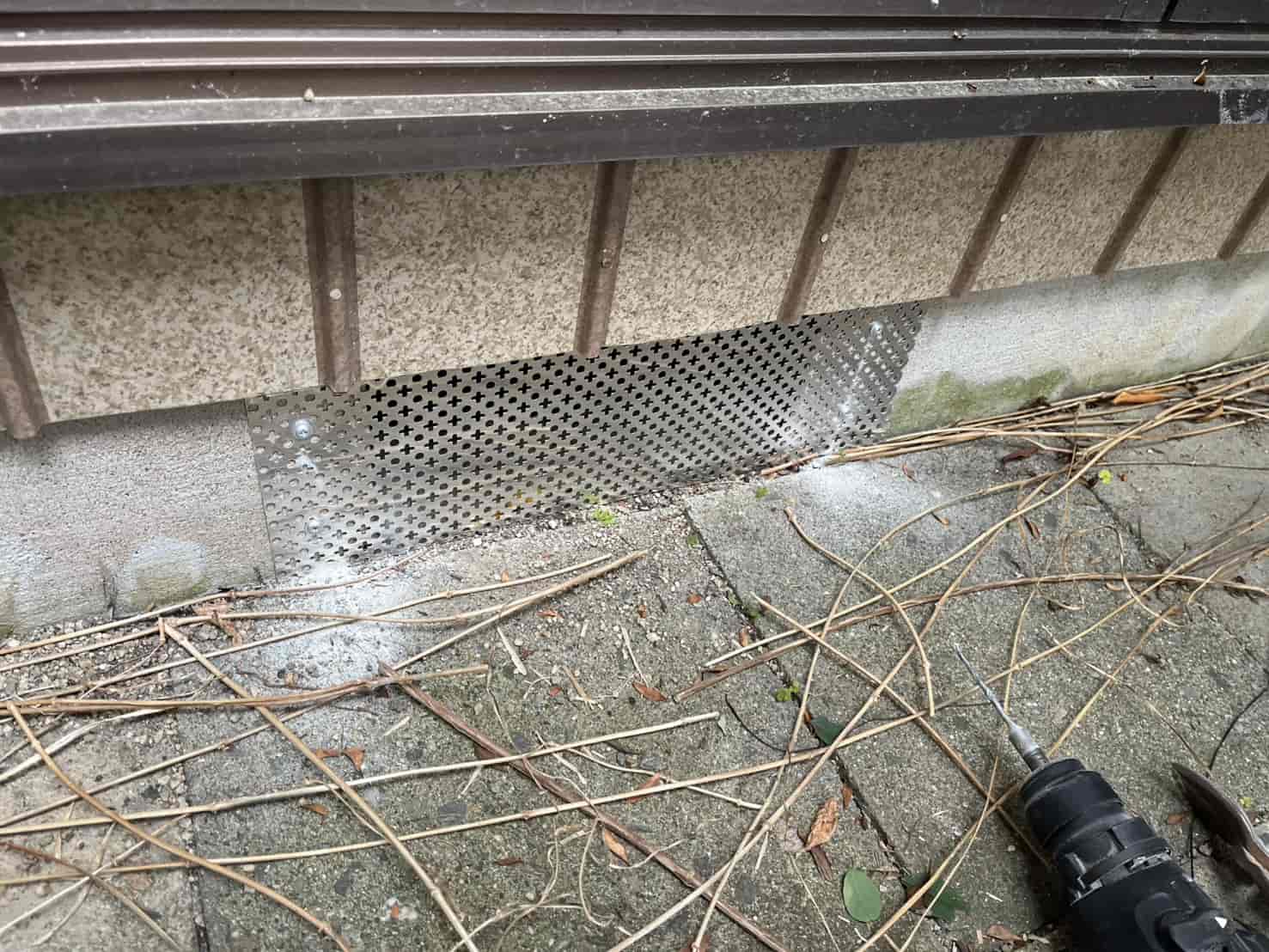 最後にアライグマが侵入していた場所を特定し、侵入口封鎖工事を行いました。