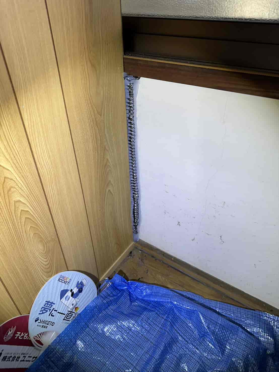 1階天井に点検口を新設。ねずみ対策では天井裏に直接アクセスできるかどうかが非常に重要です。しかし今回は既存点検口が無かったため、1階天井に新しく点検口を設置しました。