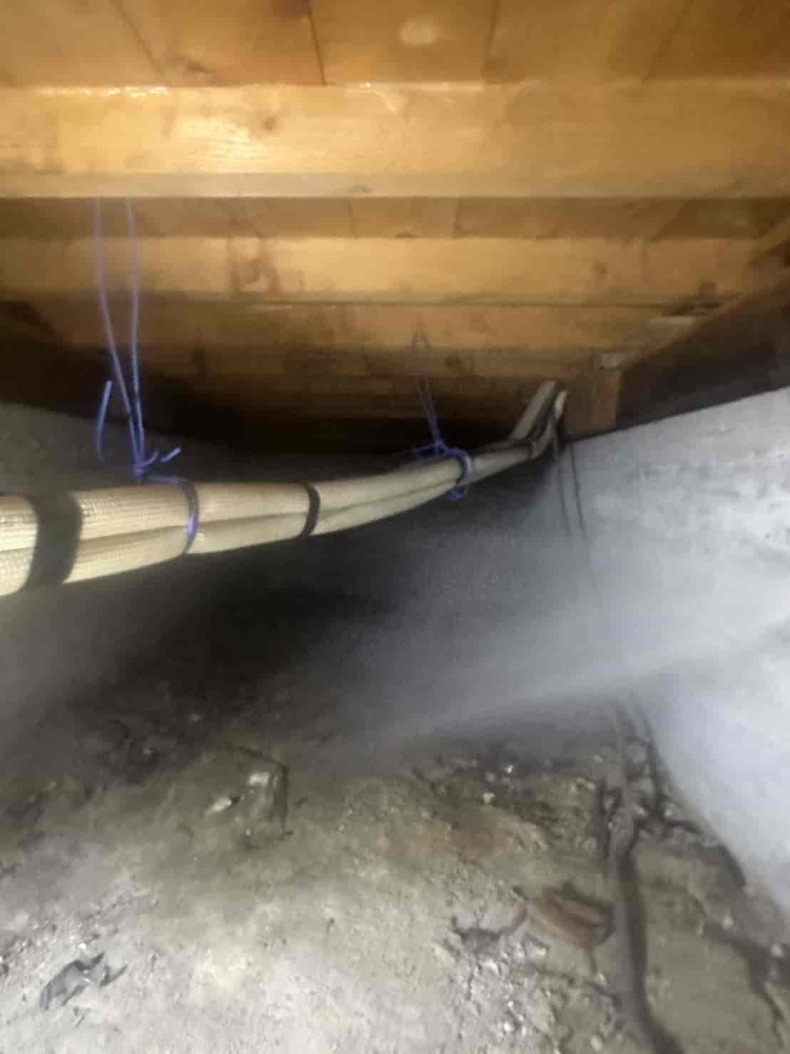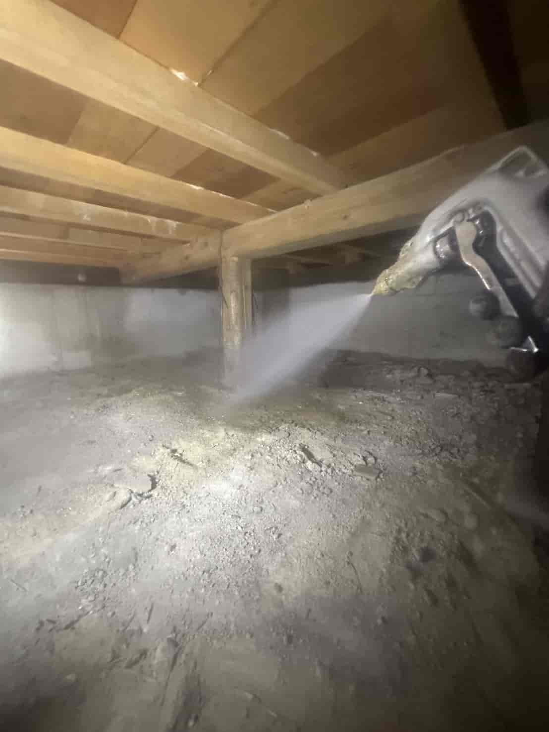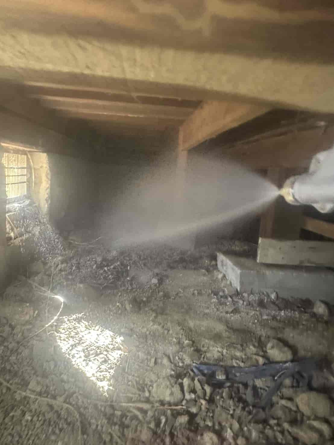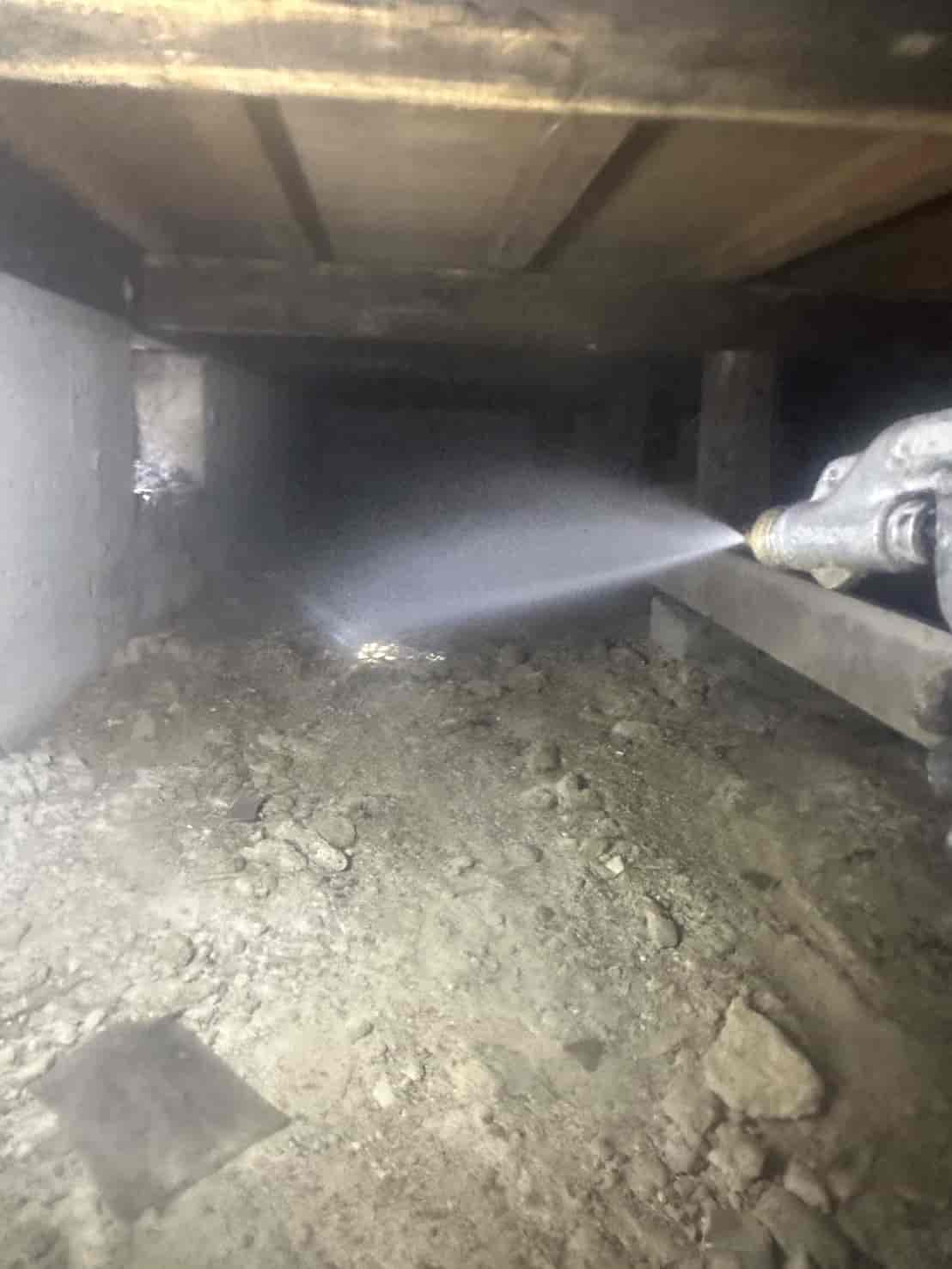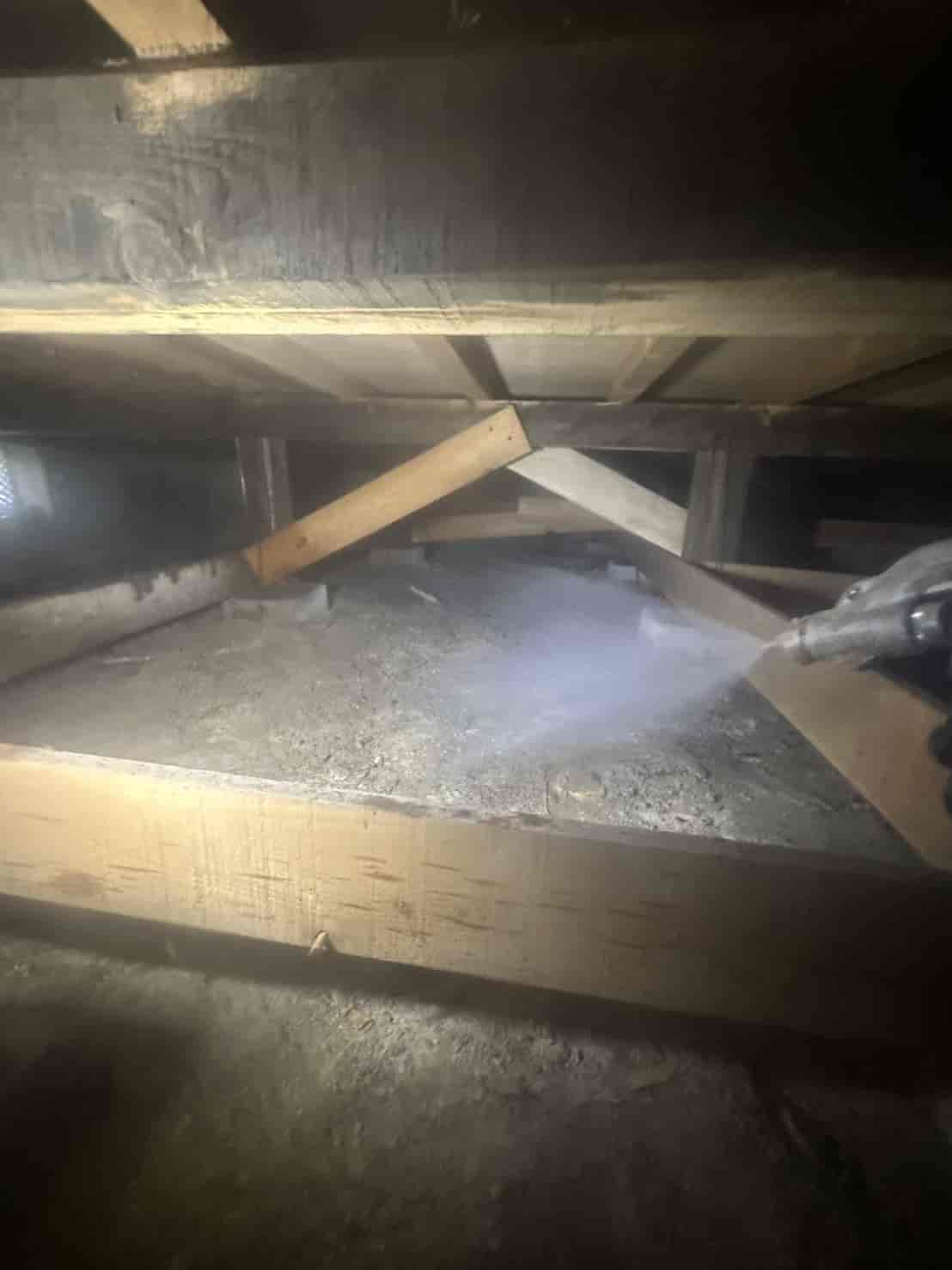 などが発生するため、今回は施工範囲から外しました。その分、床下で処理できる部分に薬剤をしっかり散布し、限られた予算内で効果の出る施工を実施しました。