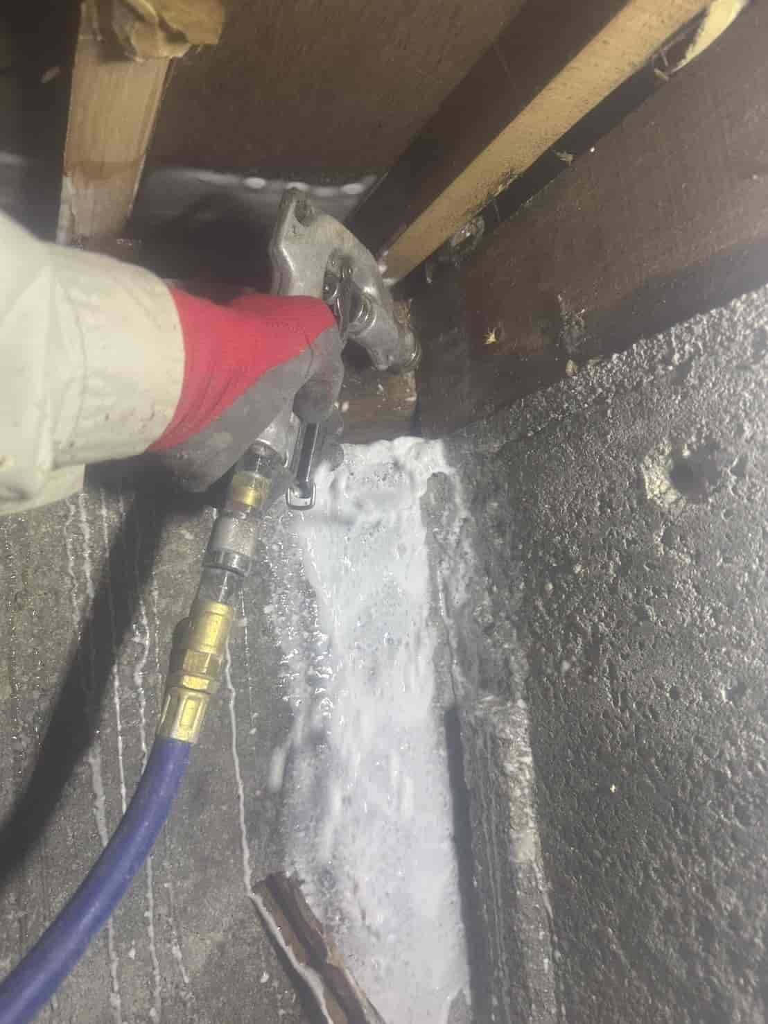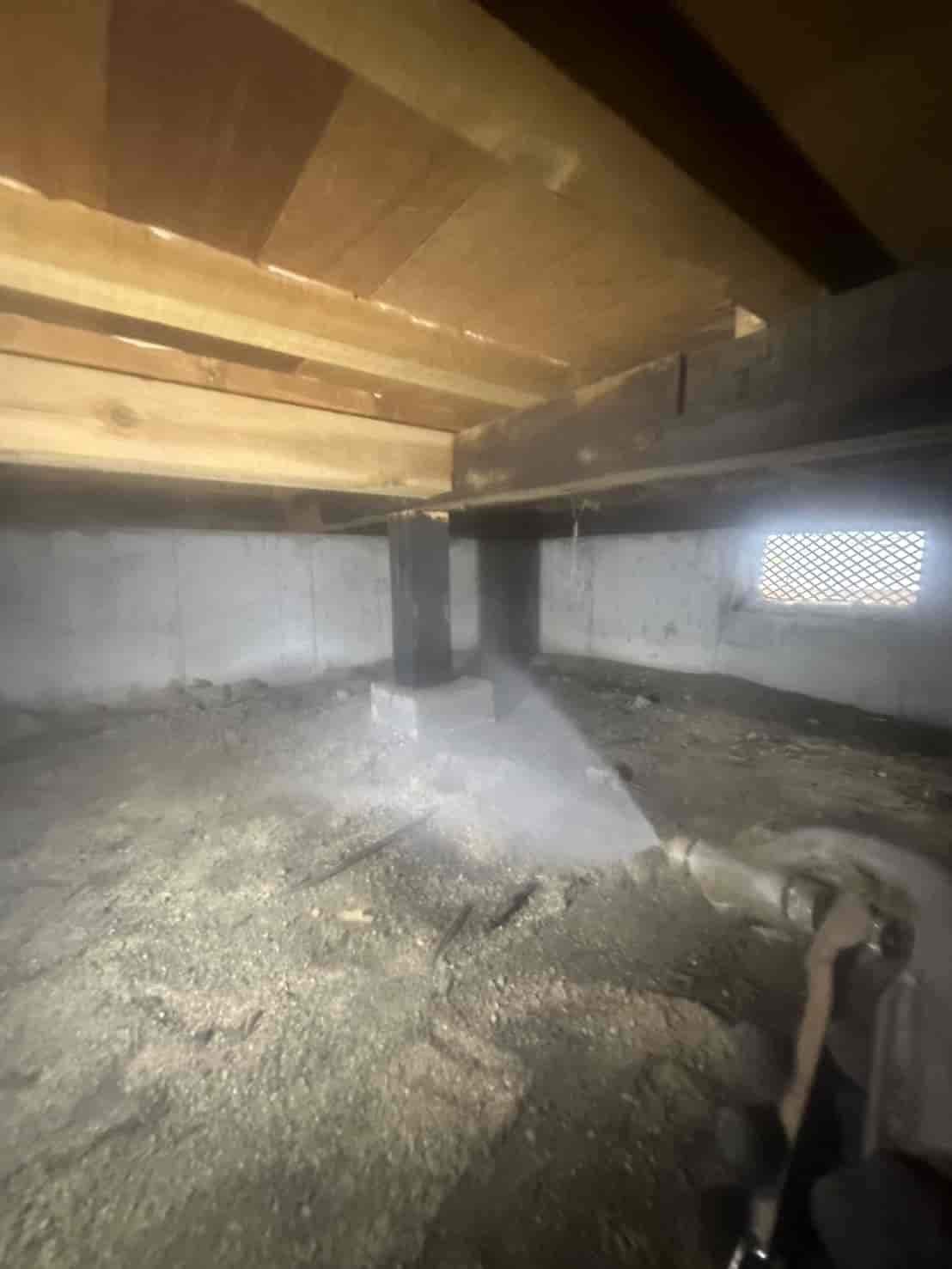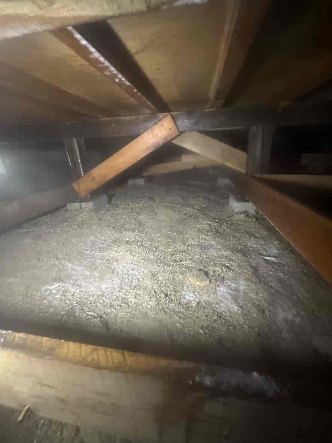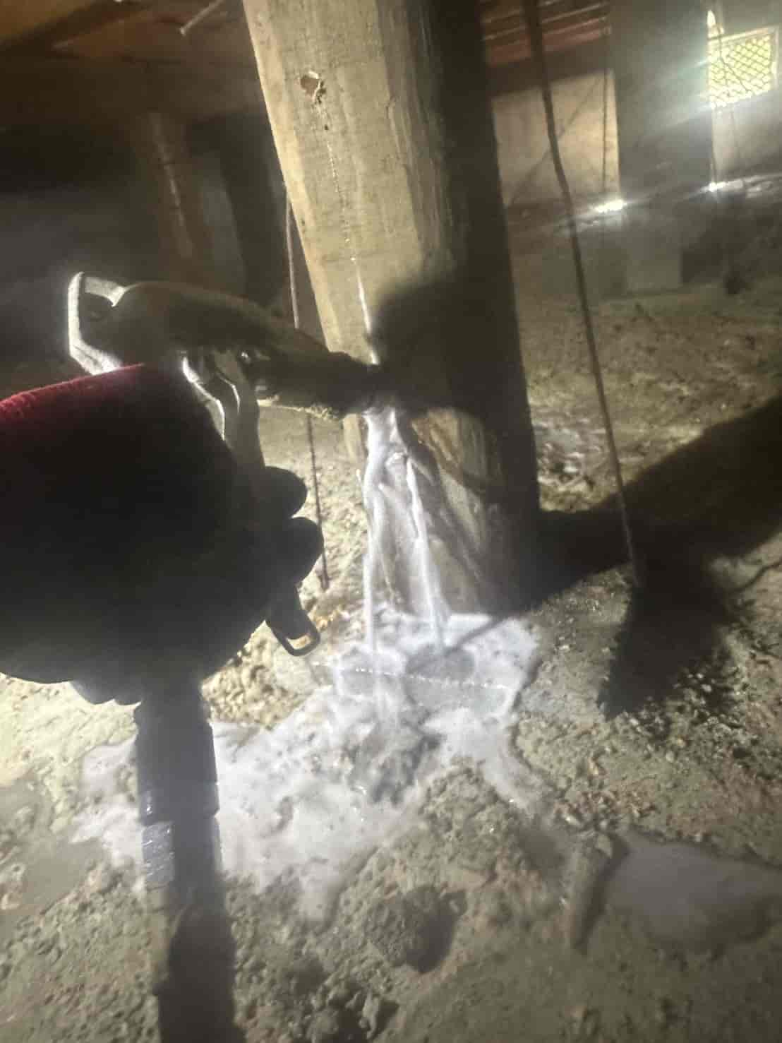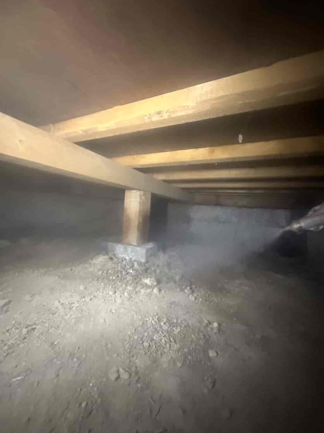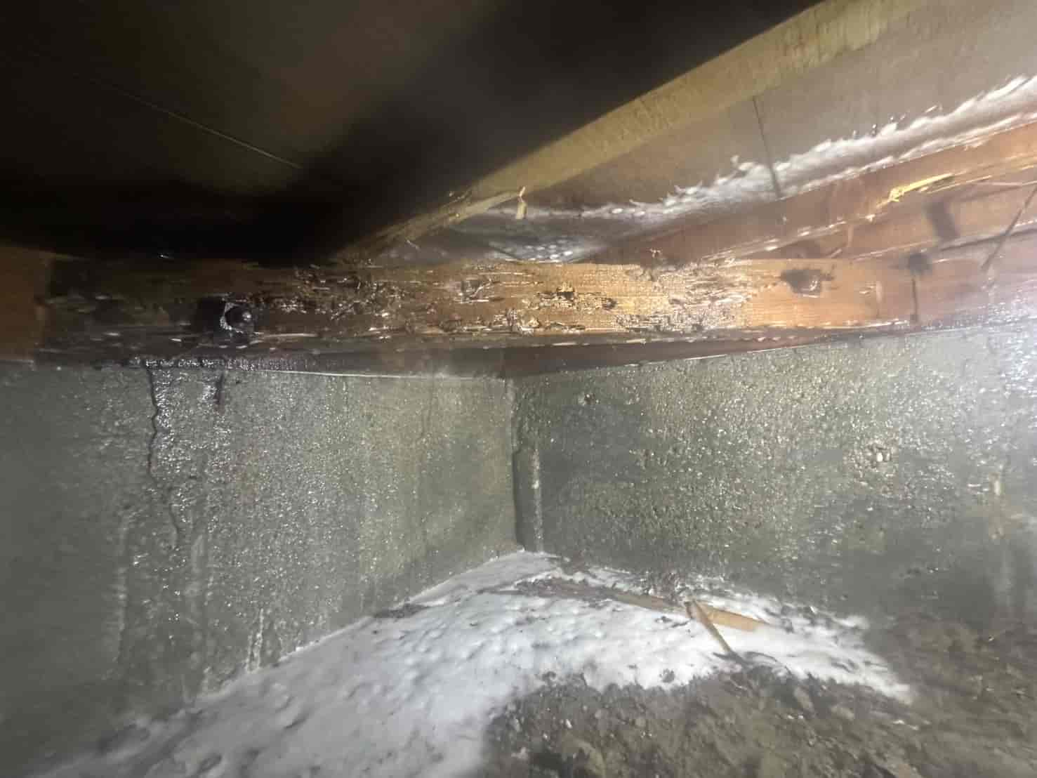 床下全域を満遍なく処理する標準プランとは違い、職人が直接入って作業できる範囲を中心に、薬剤処理を徹底しました。床下に入れる区画は限られていましたが、シロアリは構造材を経由して広がるため、入り込める箇所をしっかり処理するだけでも効果はあります。