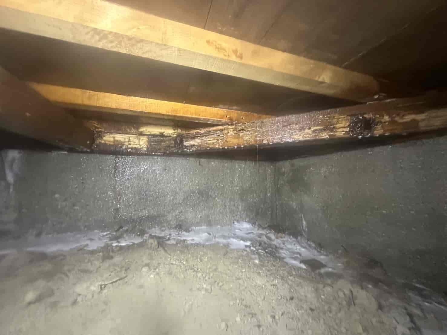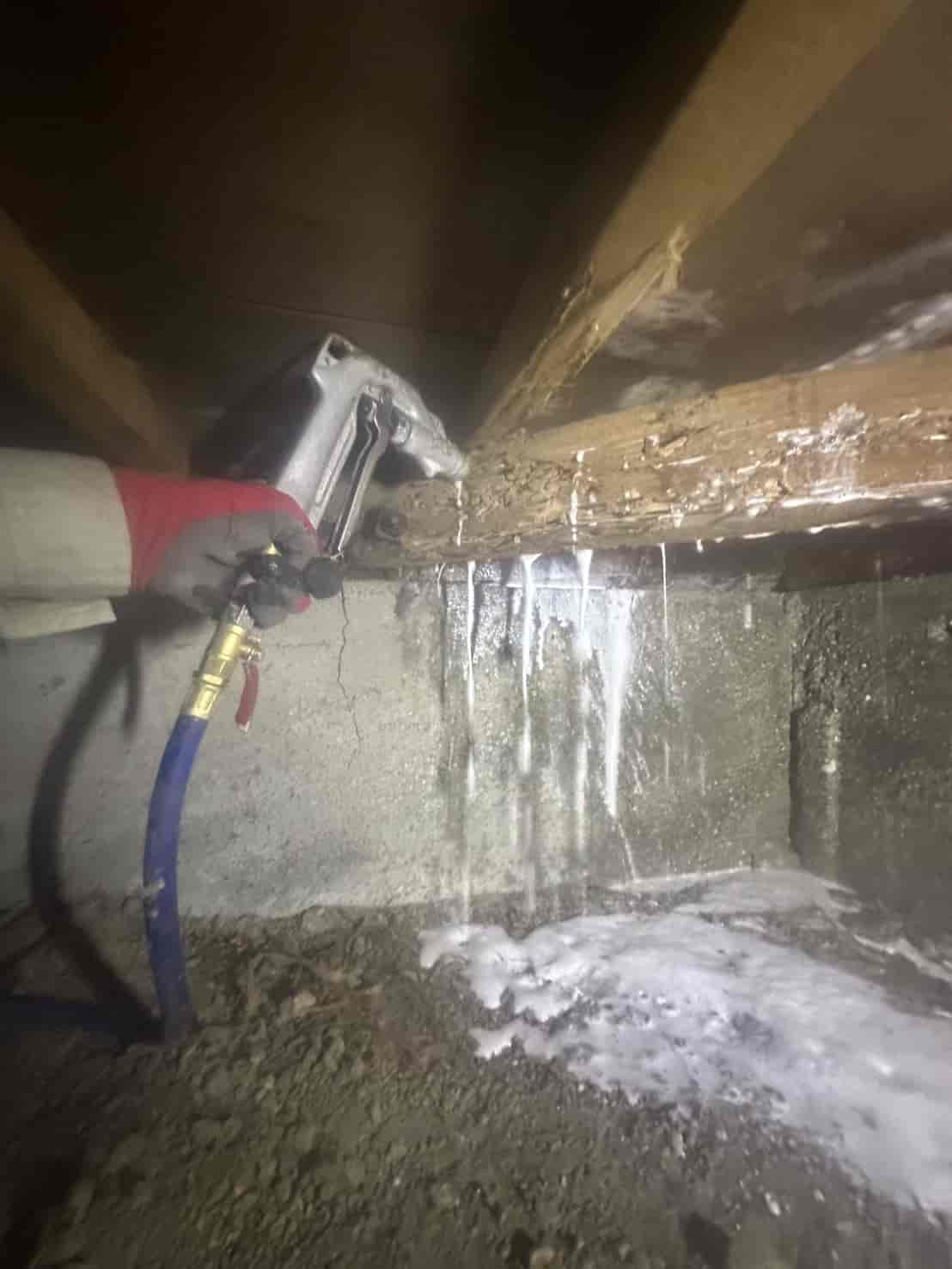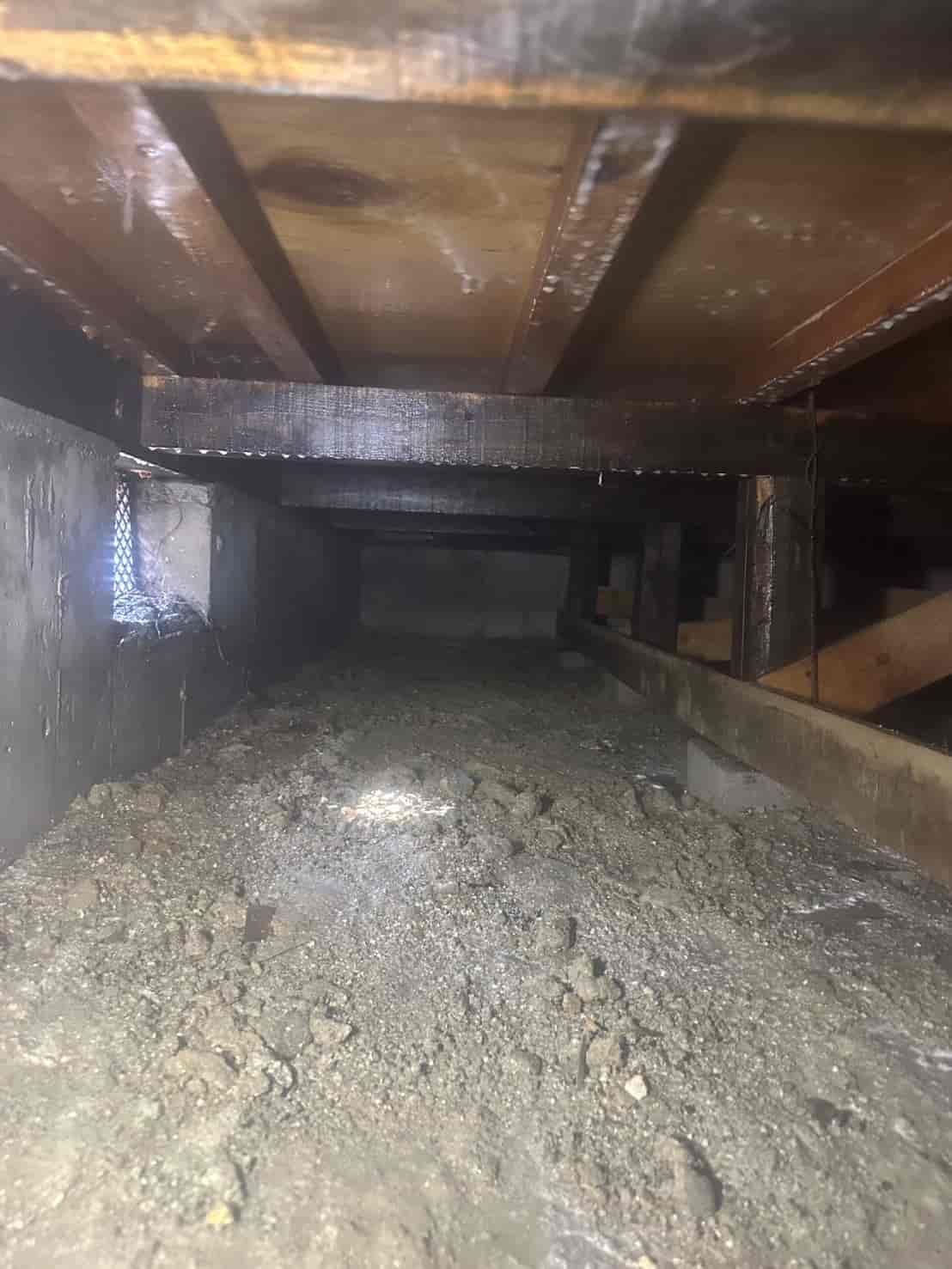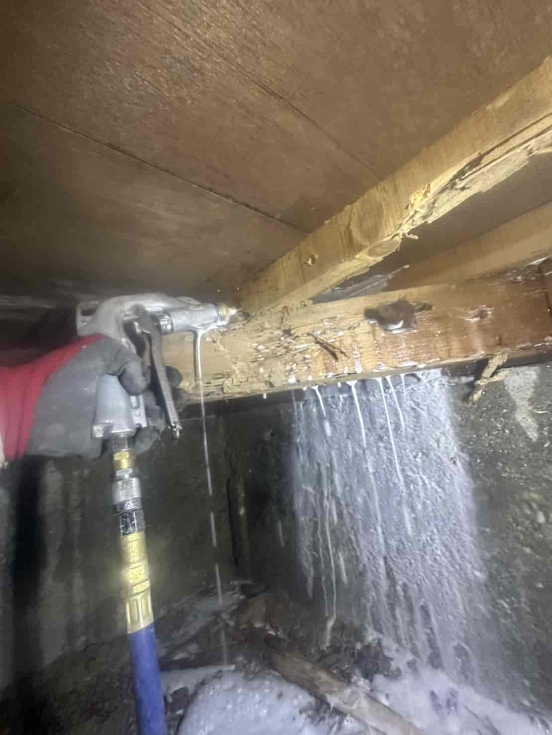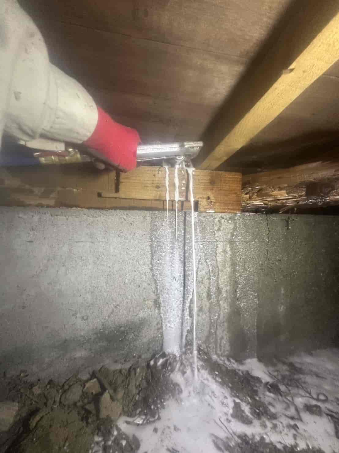 床下全域を満遍なく処理する標準プランとは違い、職人が直接入って作業できる範囲を中心に、薬剤処理を徹底しました。床下に入れる区画は限られていましたが、シロアリは構造材を経由して広がるため、入り込める箇所をしっかり処理するだけでも効果はあります。