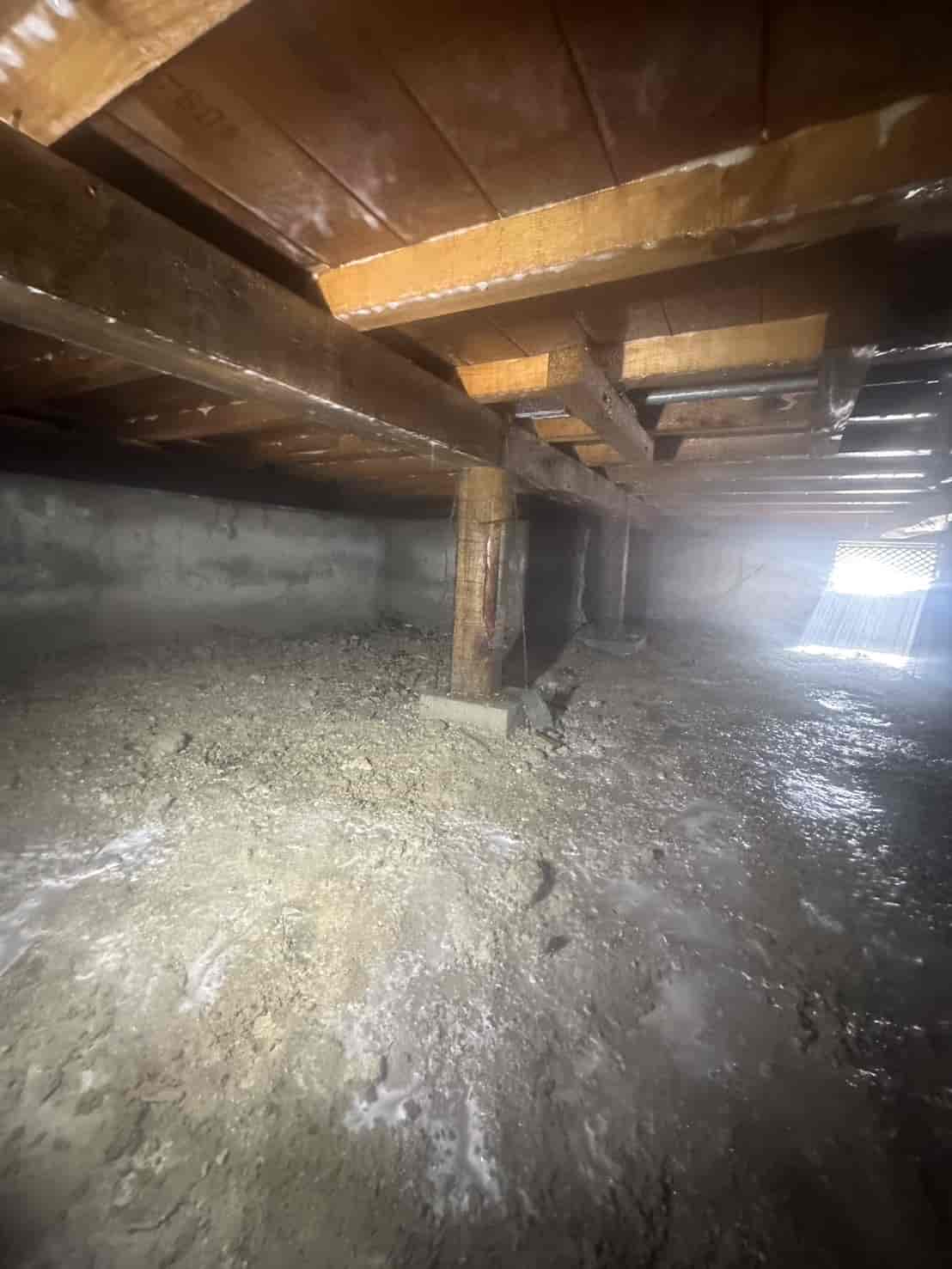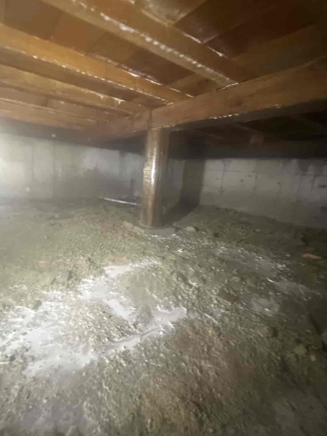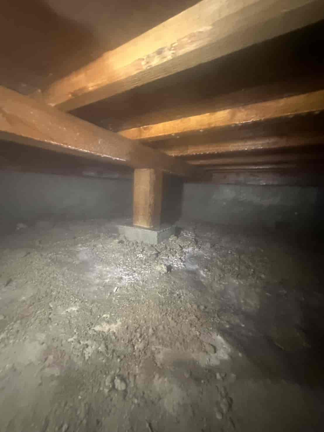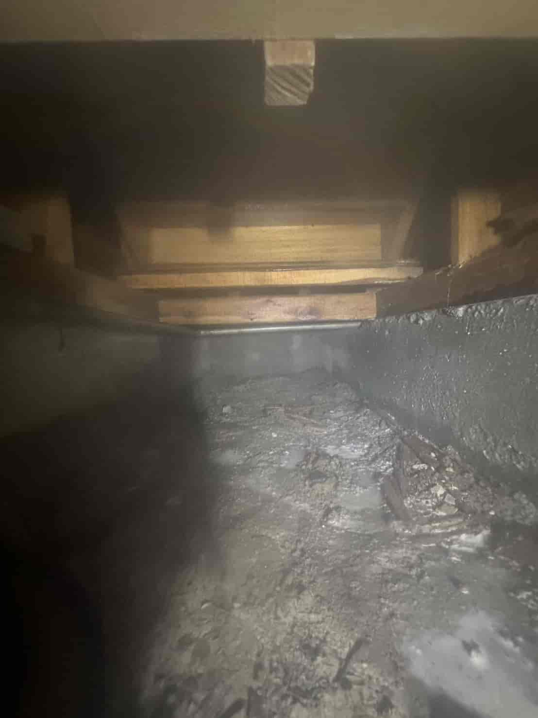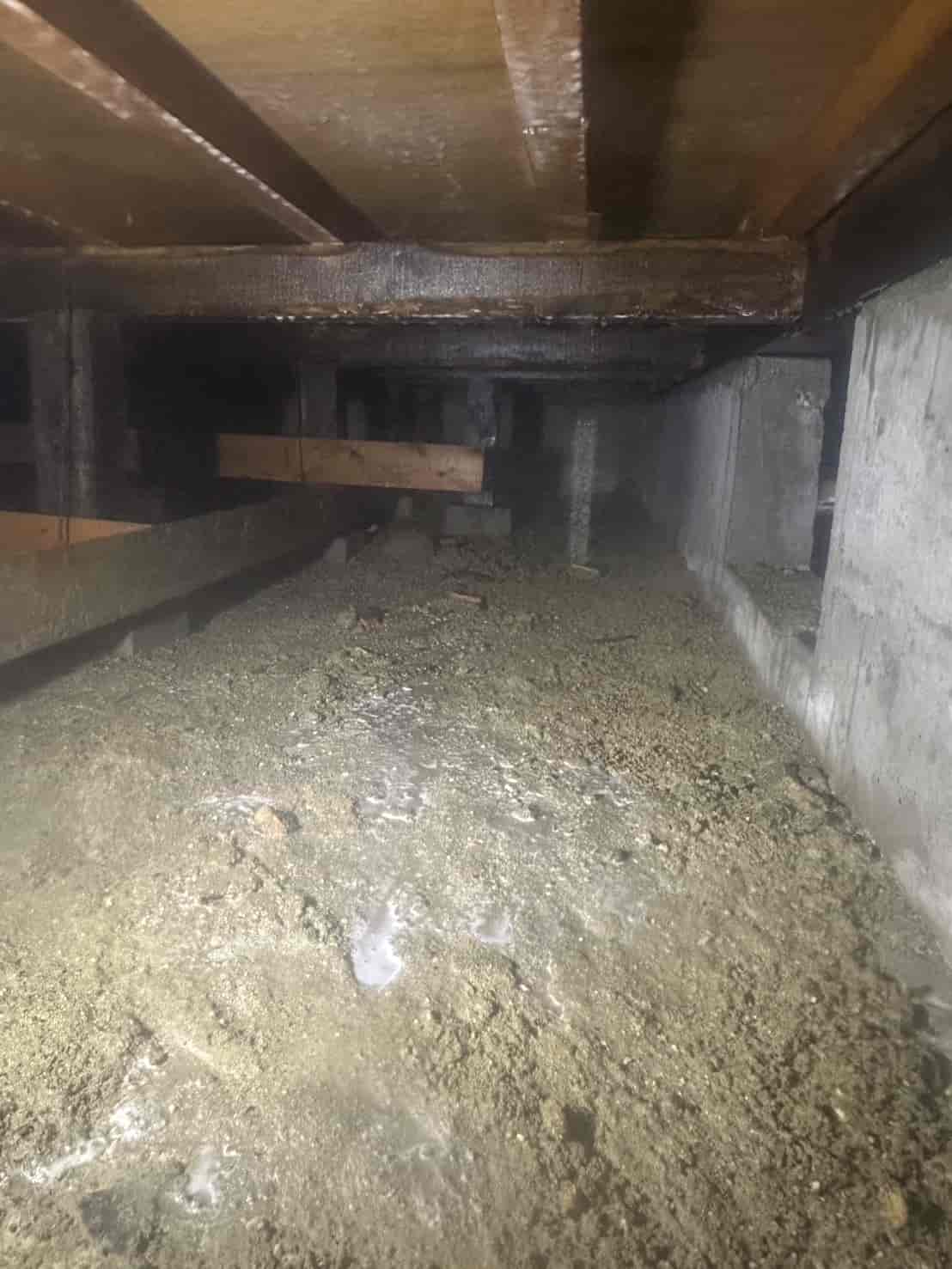 床下全域を満遍なく処理する標準プランとは違い、職人が直接入って作業できる範囲を中心に、薬剤処理を徹底しました。床下に入れる区画は限られていましたが、シロアリは構造材を経由して広がるため、入り込める箇所をしっかり処理するだけでも効果はあります。