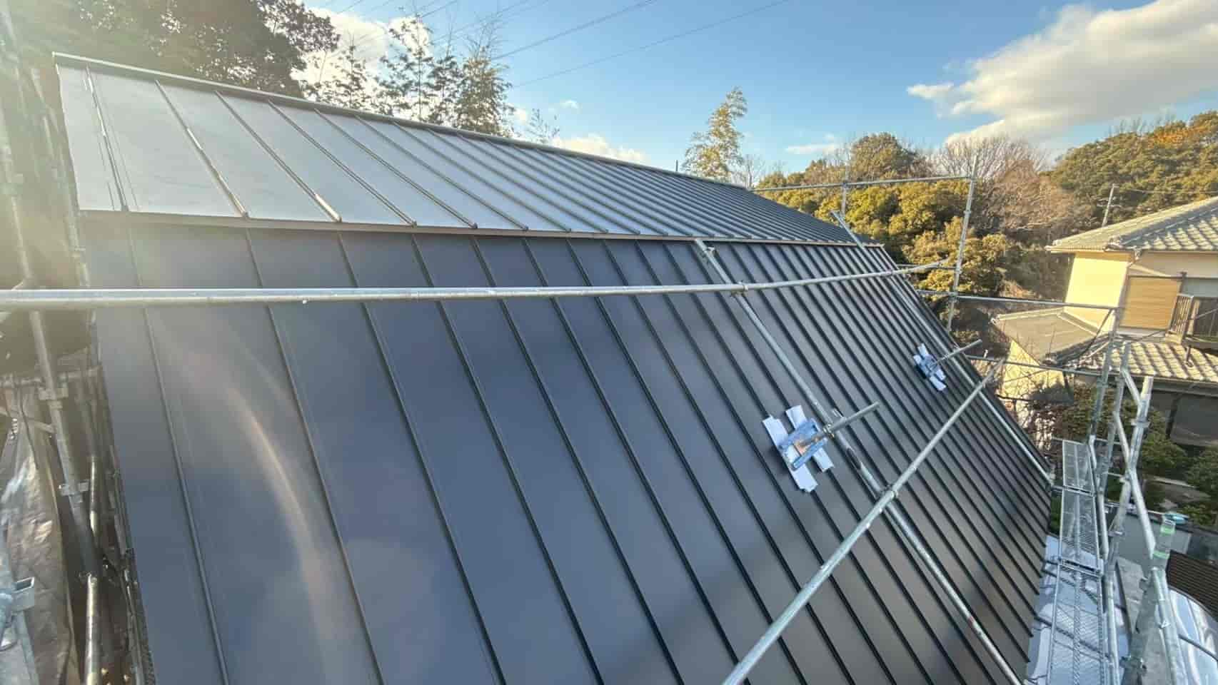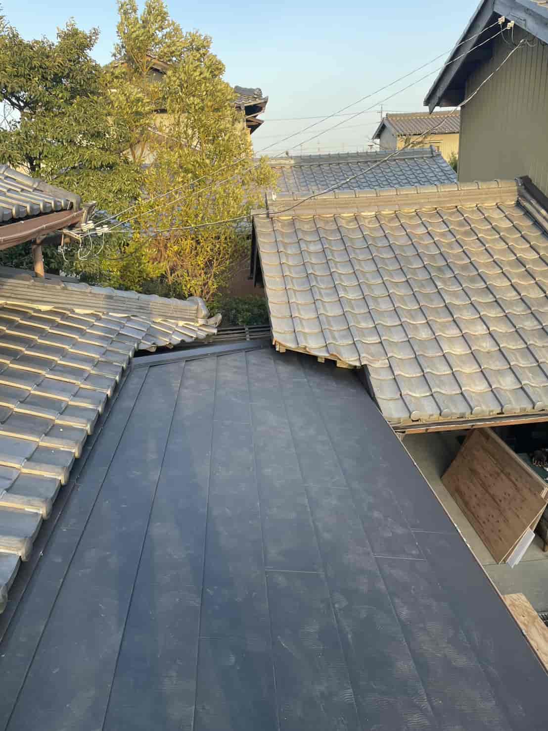 腰折れ屋根のように雨水が集中しやすい形状の場合、瓦屋根のように継ぎ目が多い材料では、どうしても経年劣化によるリスクが高くなります。そのため、今回のように継ぎ目が少なく、防水性に優れた立平屋根へ変更することで、今後の雨漏りリスクを大幅に低減することが可能となります。
