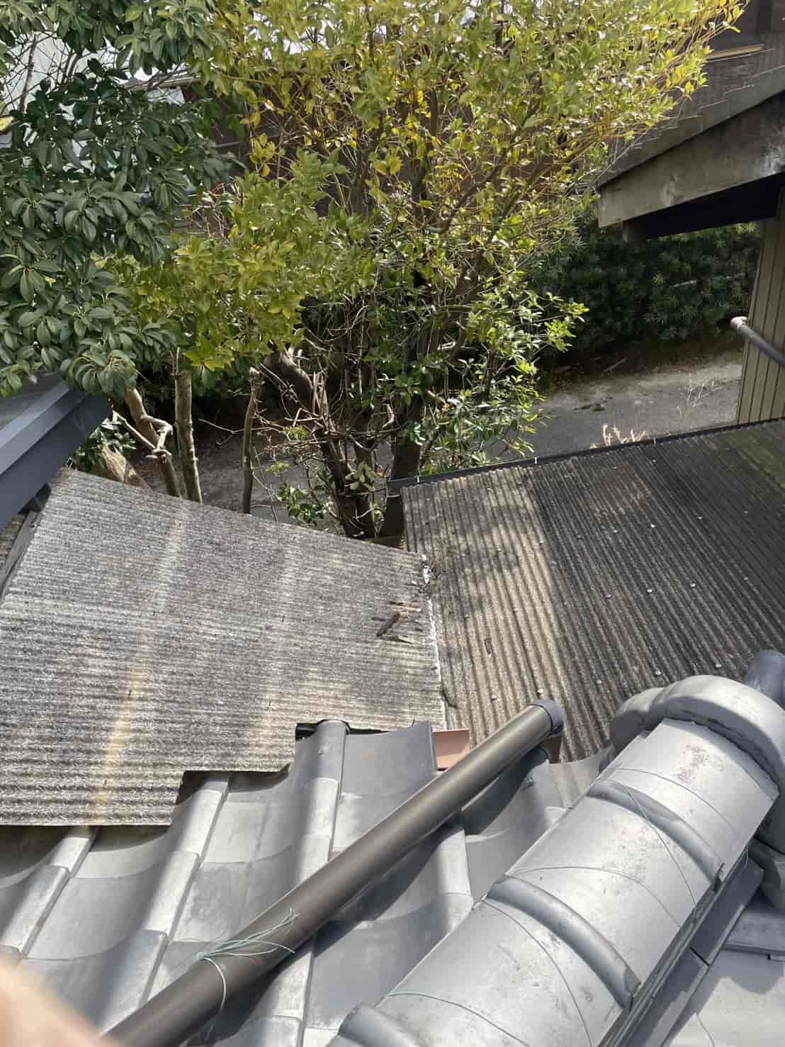 今回の住宅は、いわゆる「腰折れ屋根」と呼ばれる形状で、屋根の途中で角度が変わる構造となっており、雨水が集中しやすいポイントが存在します。このような形状では、通常の屋根よりも接合部や負荷のかかる箇所に劣化や破損が起こりやすく、今回もまさにその典型的なケースでした。