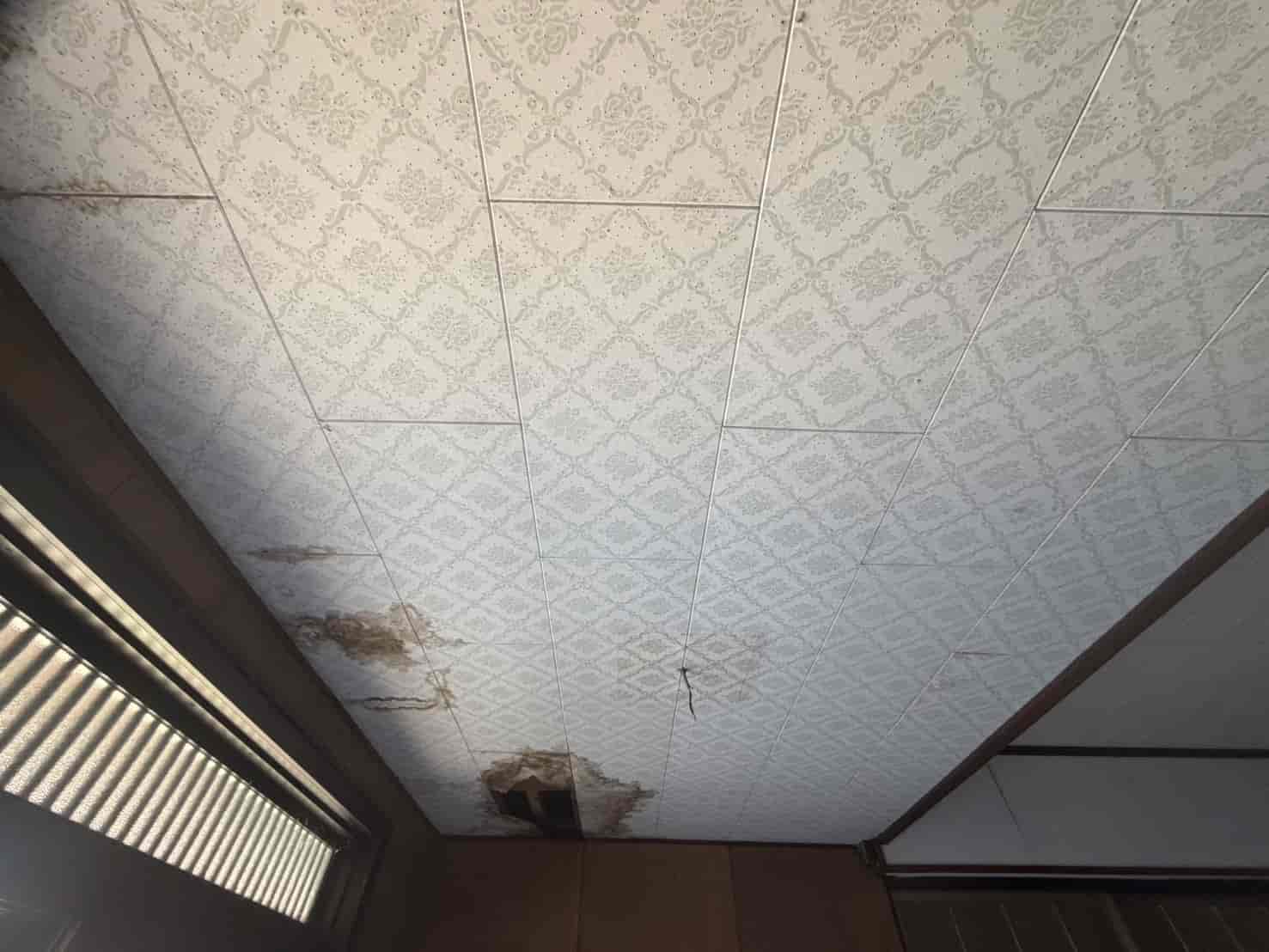 大阪府寝屋川市にて、「天井にシミが出てきた」「雨の日にポタポタ音がする」とのご相談をいただき、現地調査を実施しました。外観上は大きな破損が見られない状態でしたが、詳細に確認を行った結果、屋根の腰折れ部分に施工されていたM型セメント瓦の割れが原因となり、雨漏りが発生していることが判明しました。