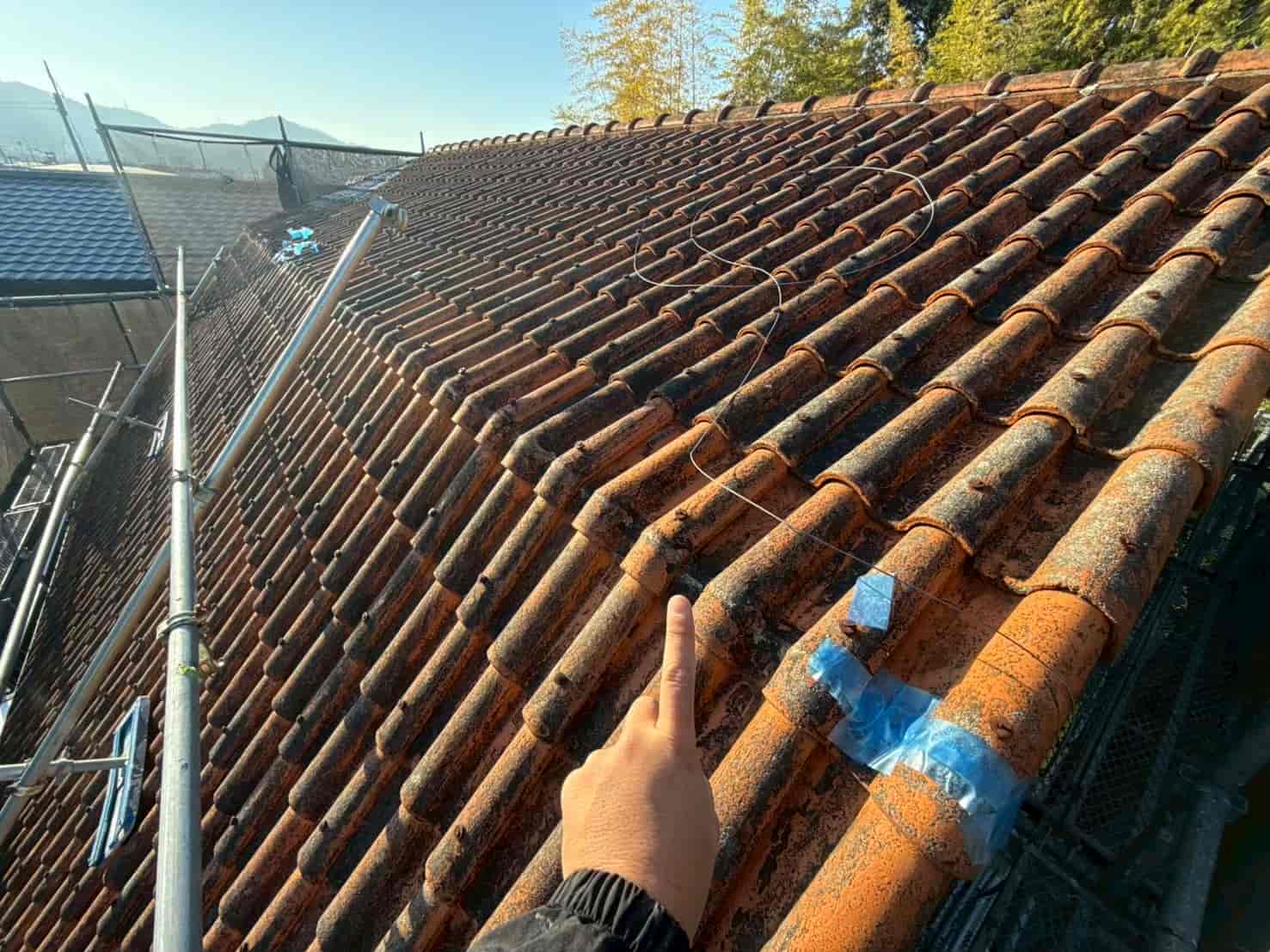 特に腰折れ部分は、屋根の角度が変わることで雨水が流れ込みやすく、風の影響も受けやすいため、他の部分に比べて劣化が早く進行する傾向があります。今回の現場でも、割れた瓦の隙間から雨水が侵入し、そのまま下地へと浸透していました。