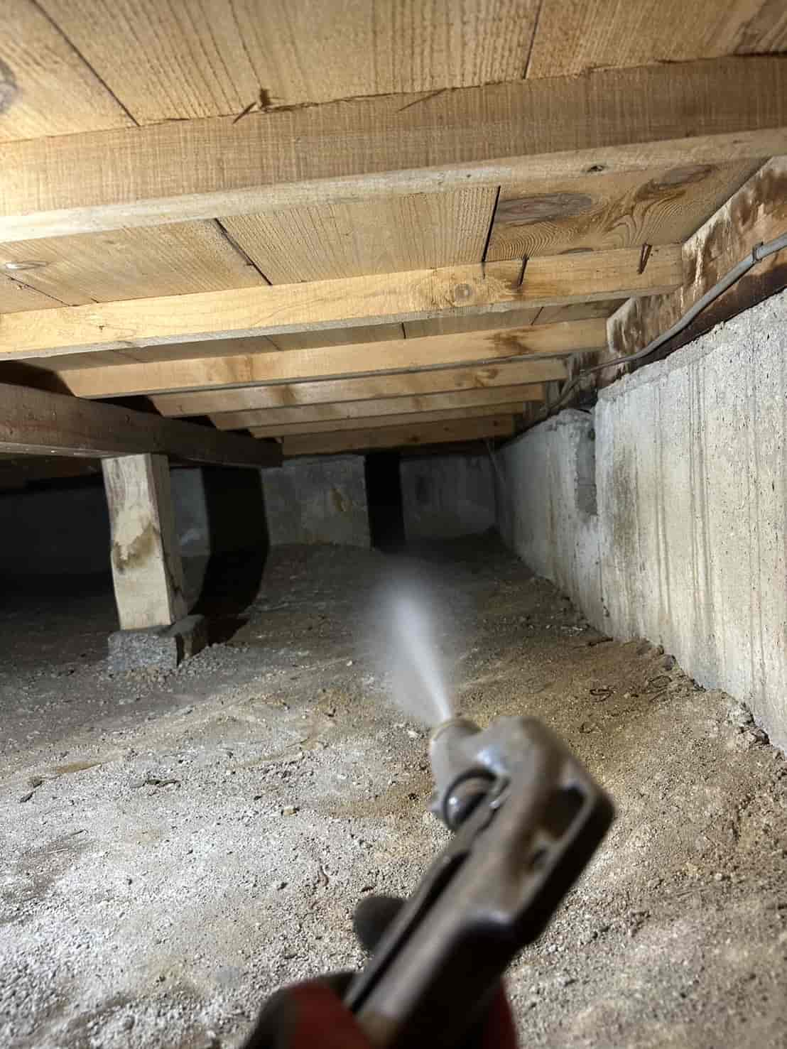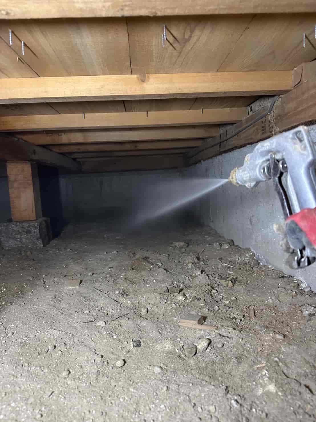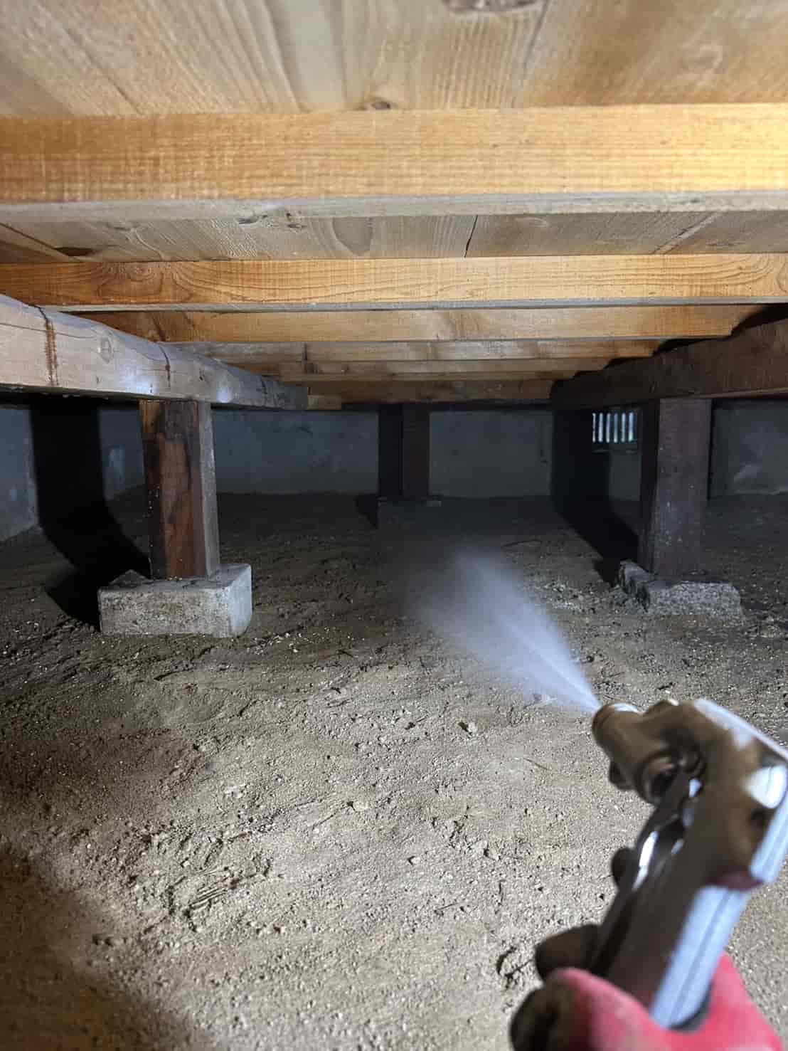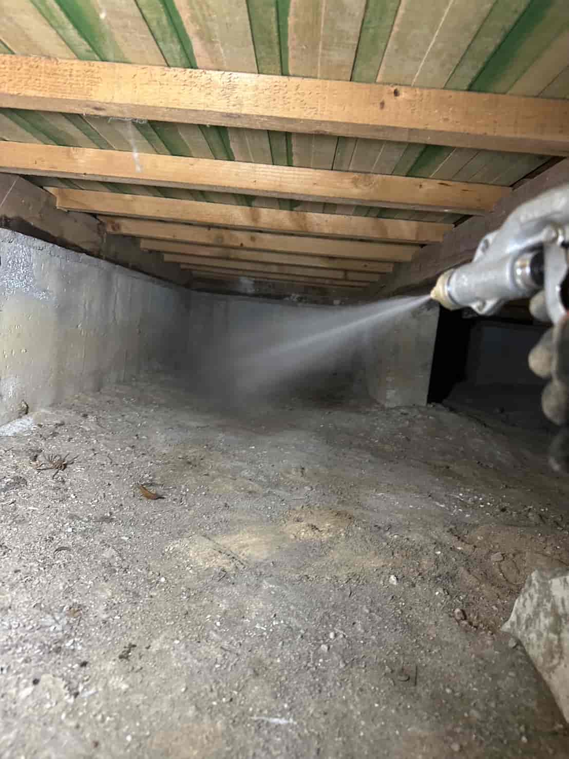 施工内容としては、床下全面への薬剤散布処理を中心に行いました。基礎部分や木部の接触箇所には薬剤を重点的に散布し、白アリが侵入しやすい経路を遮断しました。さらに、リフォームによって床下の構造が一部露出している状態を活かし、普段では処理が難しい部分にも丁寧に薬剤を行き渡らせることができました。