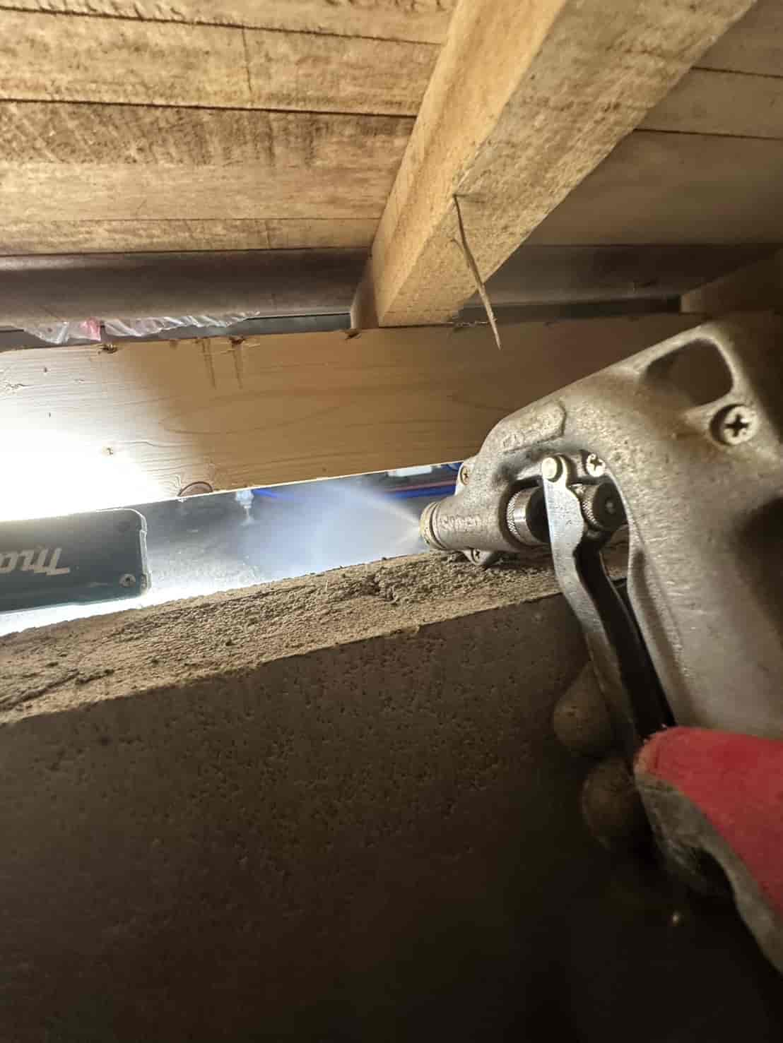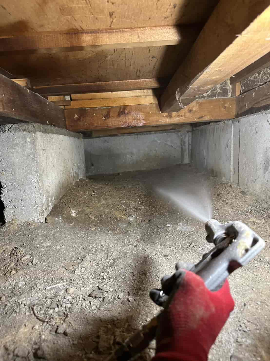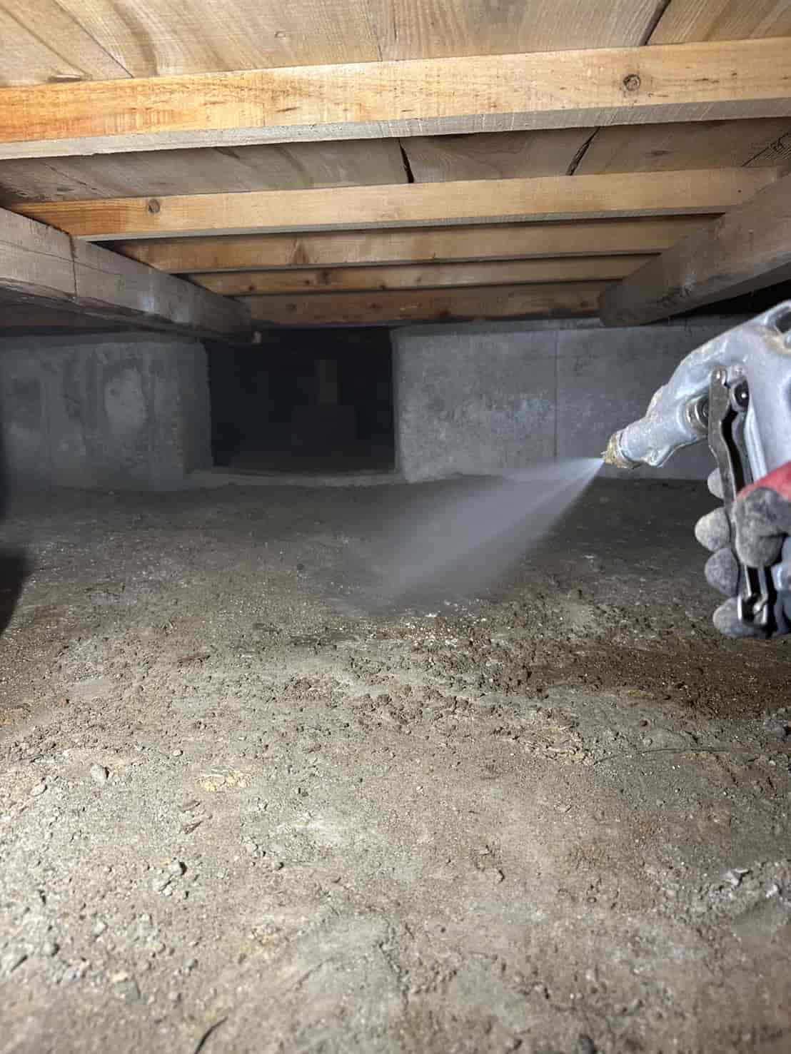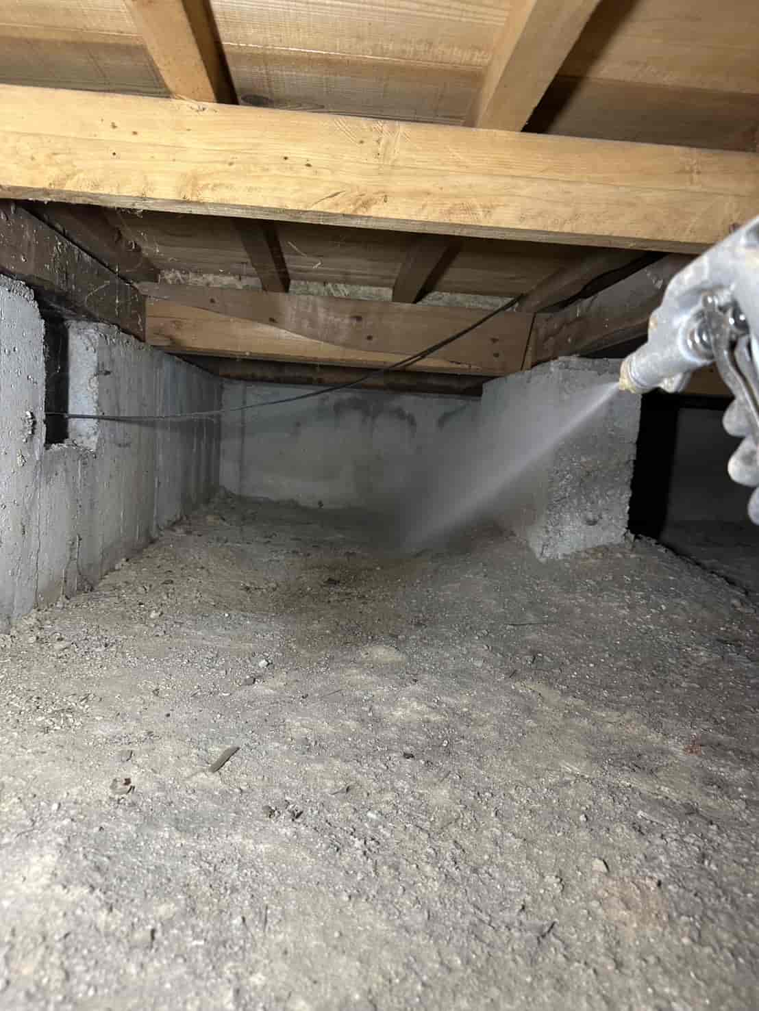 施工内容としては、床下全面への薬剤散布処理を中心に行いました。基礎部分や木部の接触箇所には薬剤を重点的に散布し、白アリが侵入しやすい経路を遮断しました。さらに、リフォームによって床下の構造が一部露出している状態を活かし、普段では処理が難しい部分にも丁寧に薬剤を行き渡らせることができました。