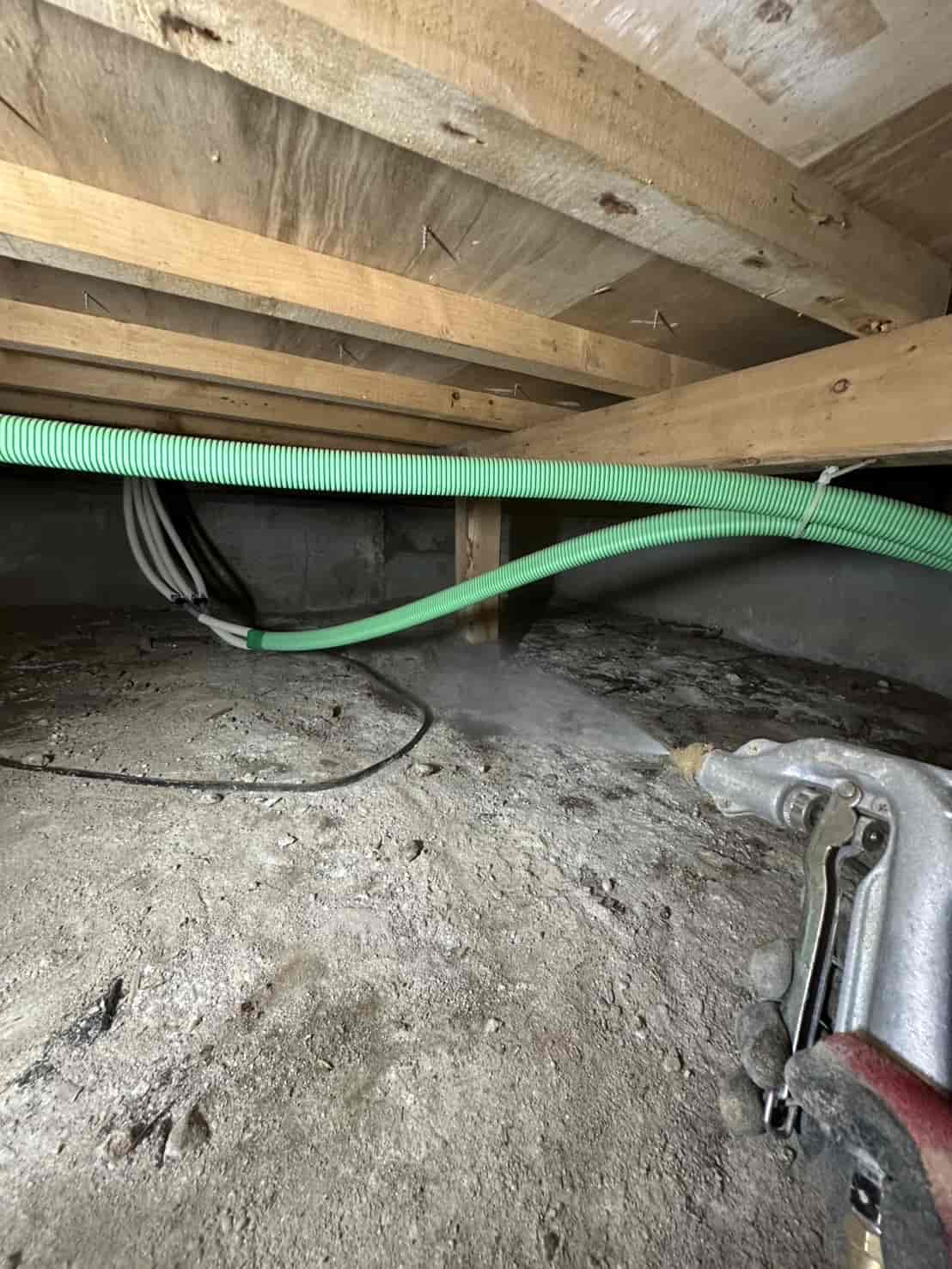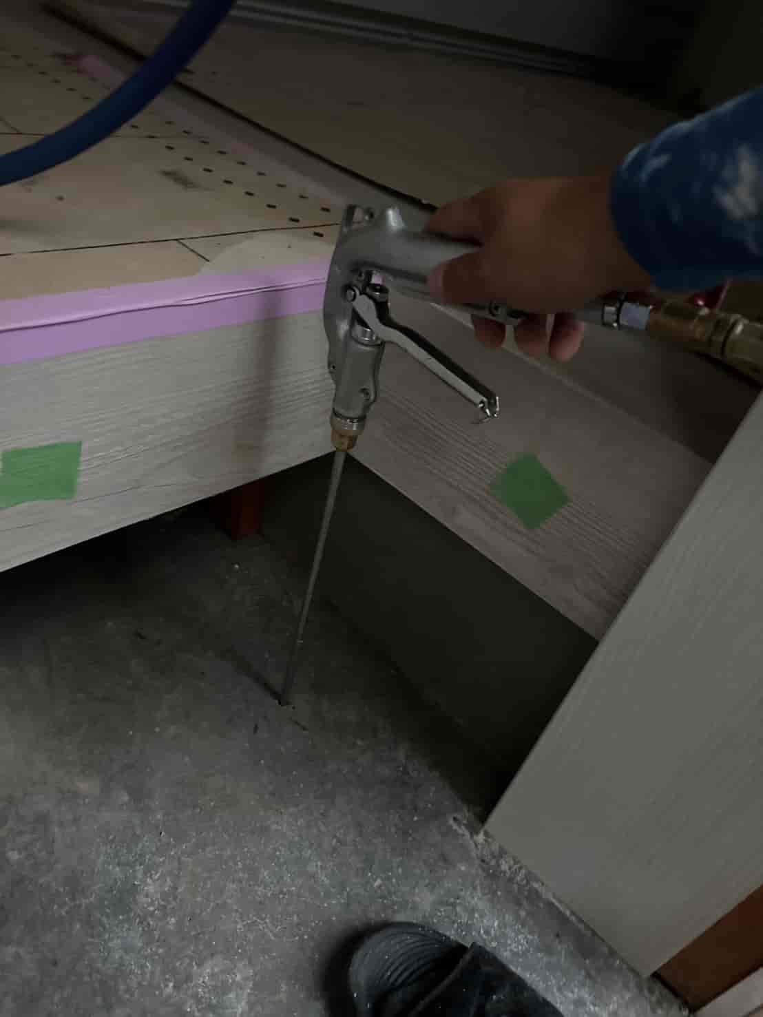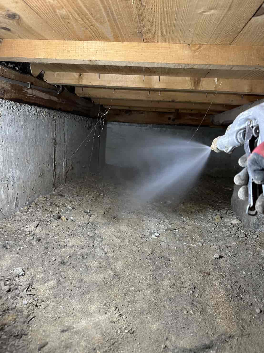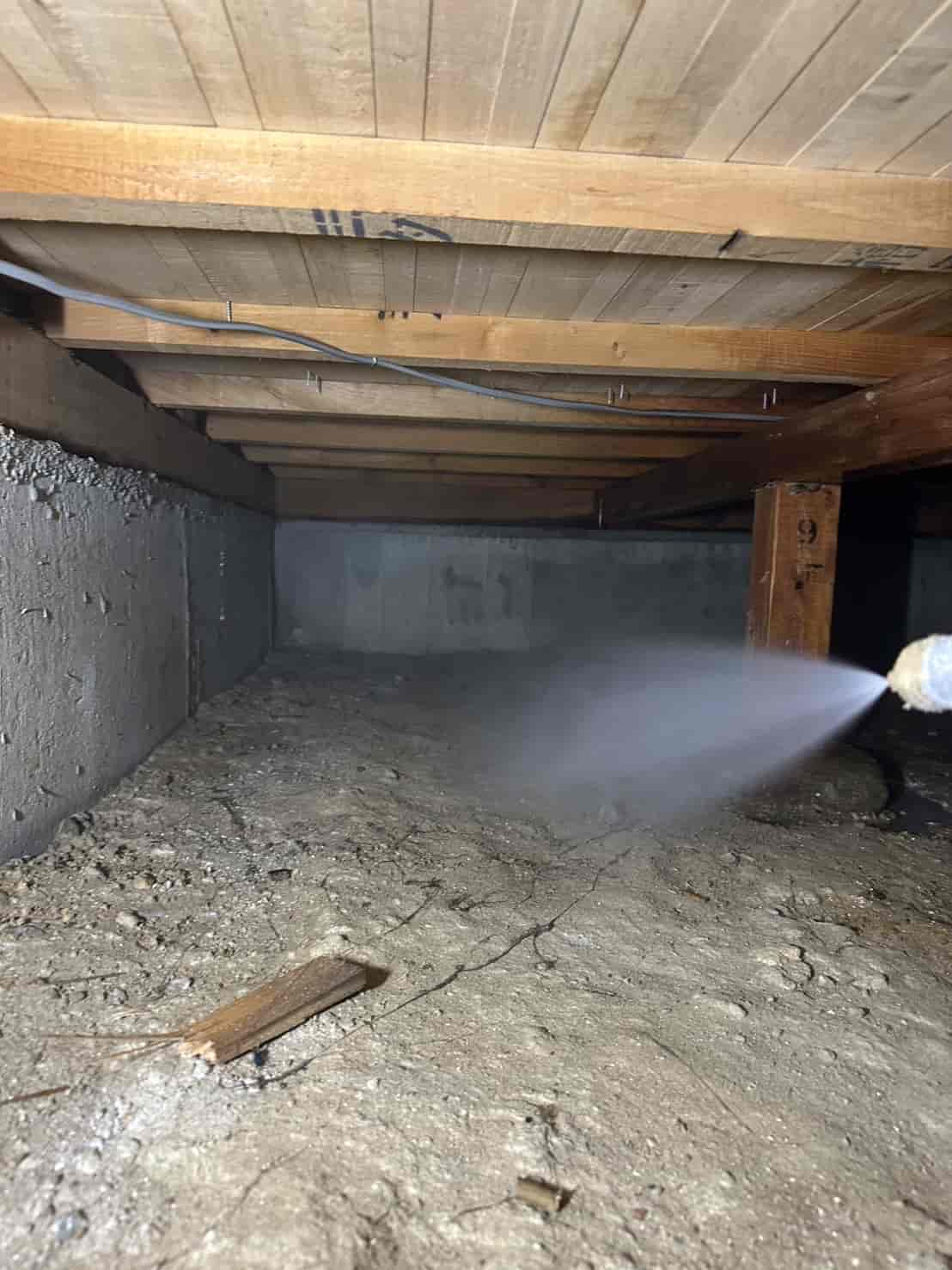 施工内容としては、床下全面への薬剤散布処理を中心に行いました。基礎部分や木部の接触箇所には薬剤を重点的に散布し、白アリが侵入しやすい経路を遮断しました。さらに、リフォームによって床下の構造が一部露出している状態を活かし、普段では処理が難しい部分にも丁寧に薬剤を行き渡らせることができました。