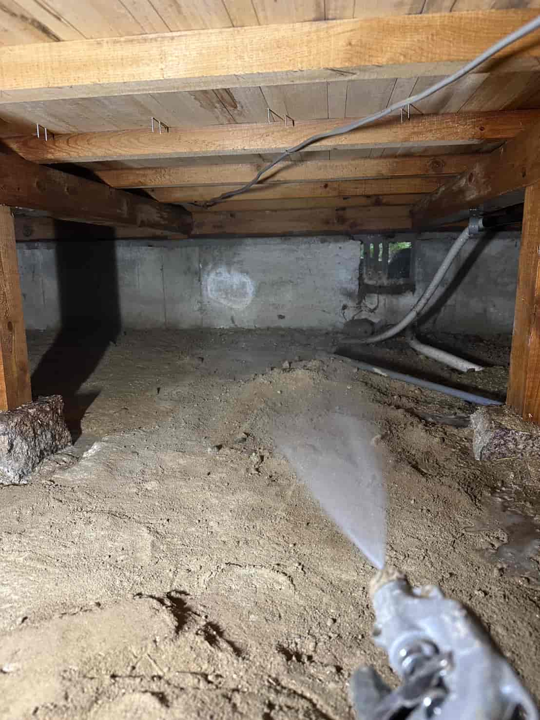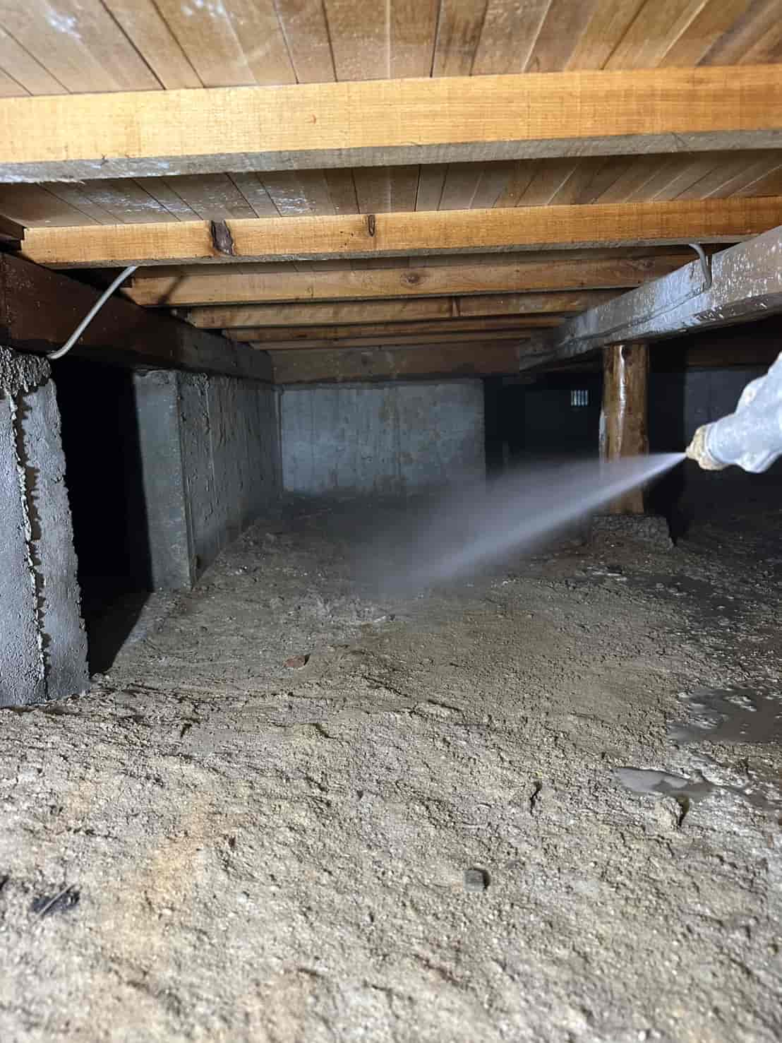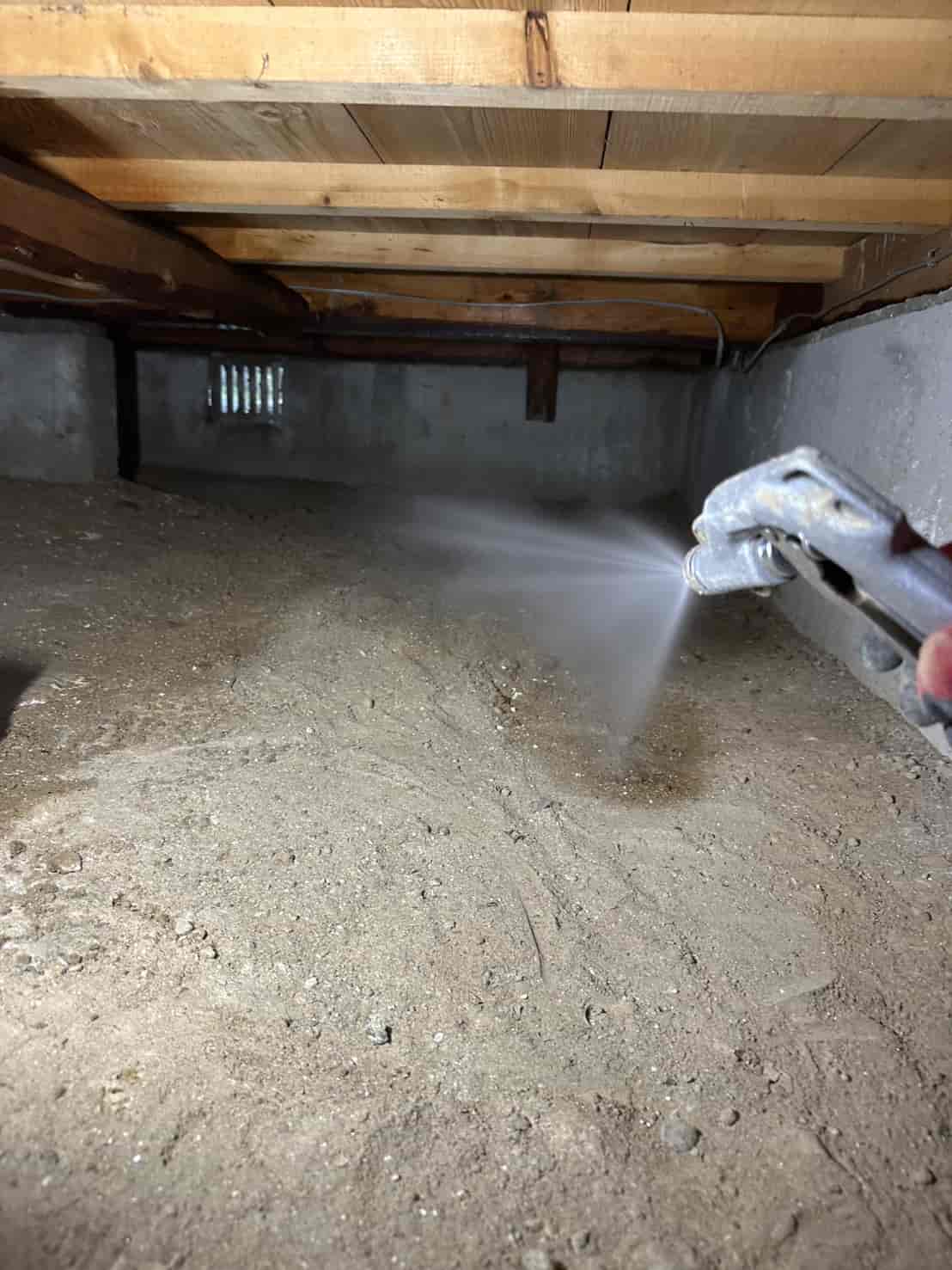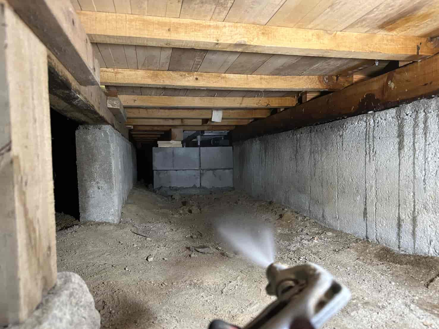 施工内容としては、床下全面への薬剤散布処理を中心に行いました。基礎部分や木部の接触箇所には薬剤を重点的に散布し、白アリが侵入しやすい経路を遮断しました。さらに、リフォームによって床下の構造が一部露出している状態を活かし、普段では処理が難しい部分にも丁寧に薬剤を行き渡らせることができました。