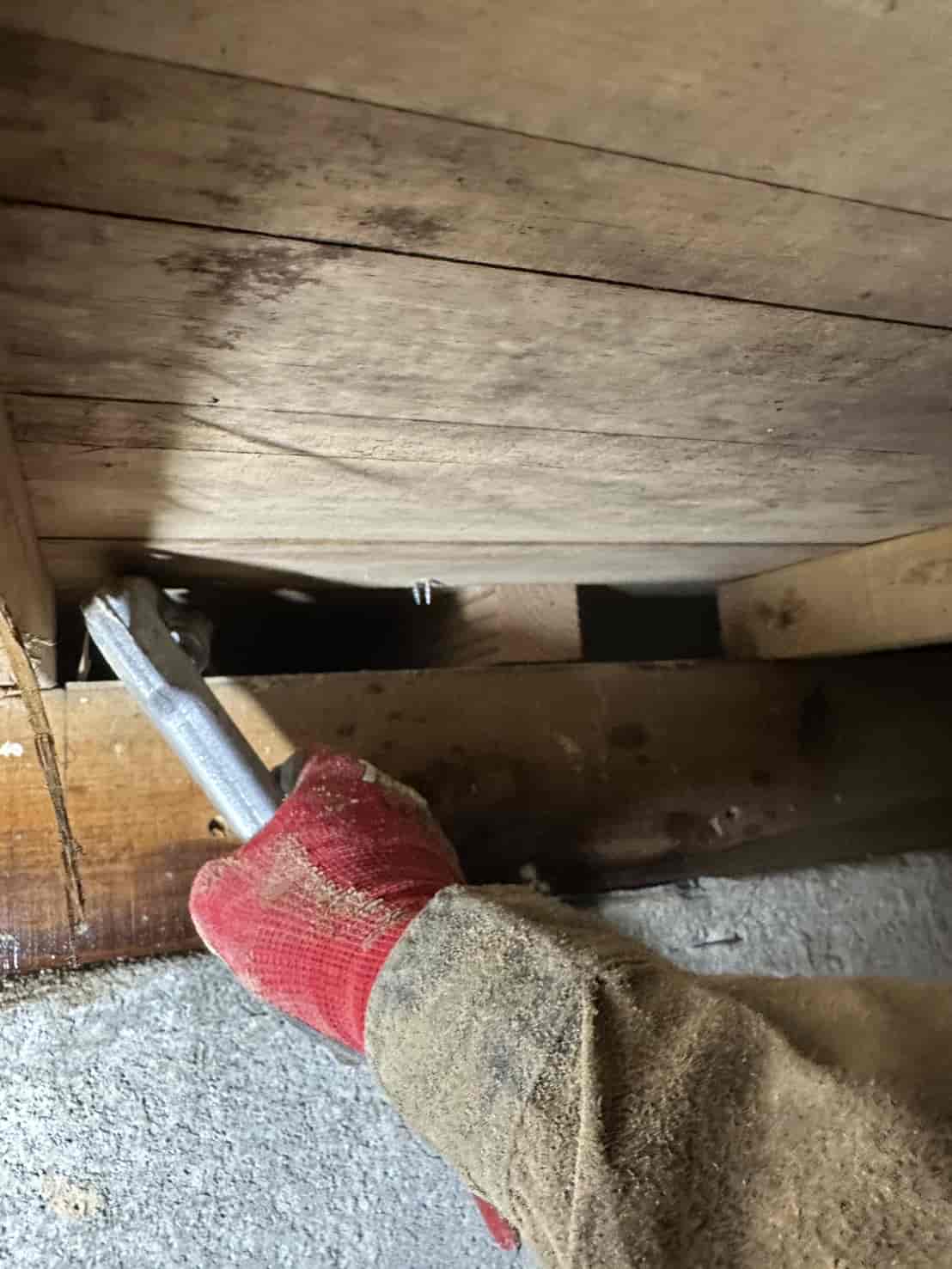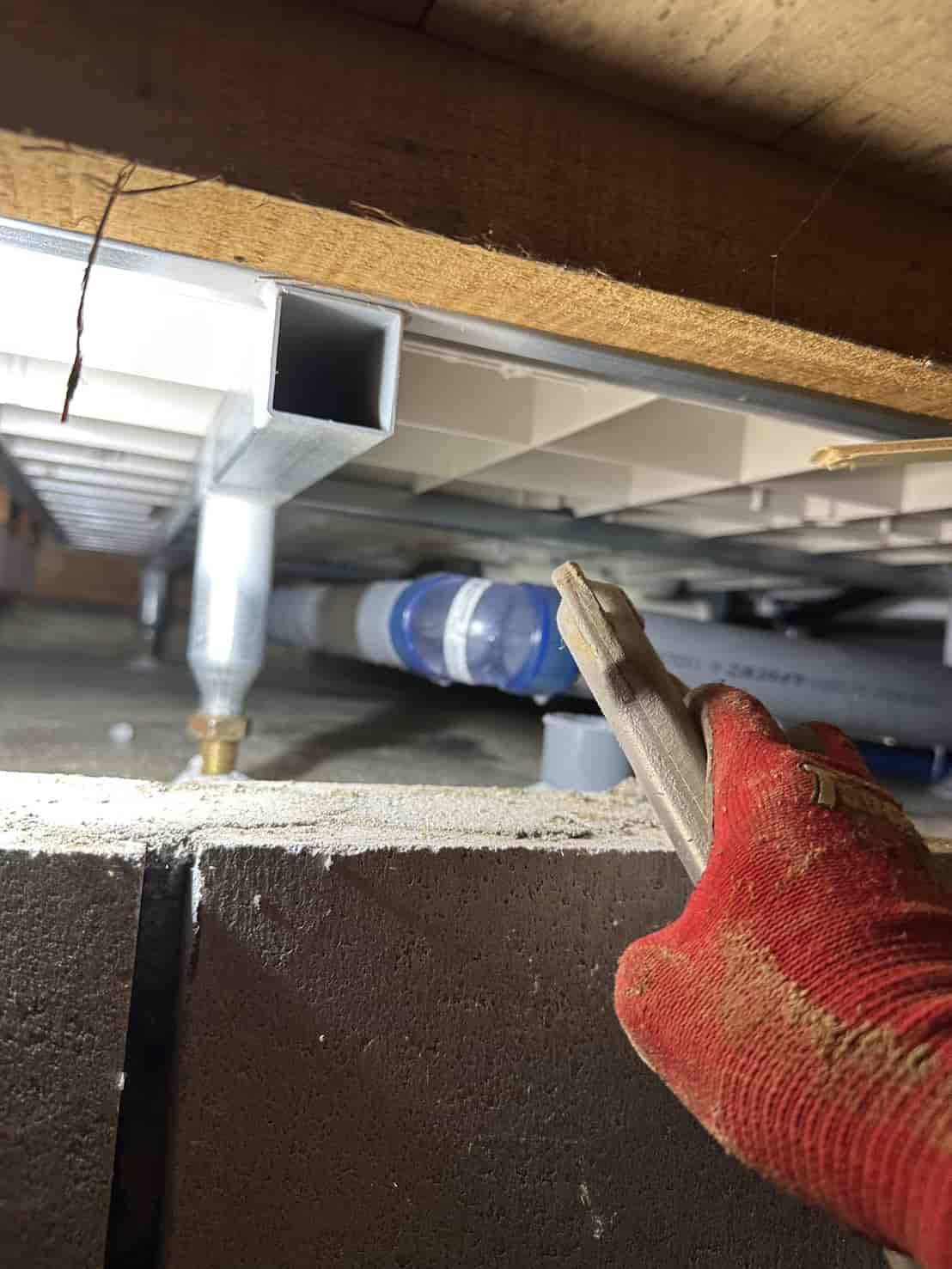 リフォーム中ということで、室内の一部はすでに床を剥がした状態になっており、床下の状況を直接確認することができました。幸いにも現時点では白アリの被害は確認されませんでしたが、堺市東区は湿気がこもりやすい地域性もあり、将来的に発生する可能性は十分にあります。そのため、予防施工を行うことで長期的な安心を確保することをおすすめしました。