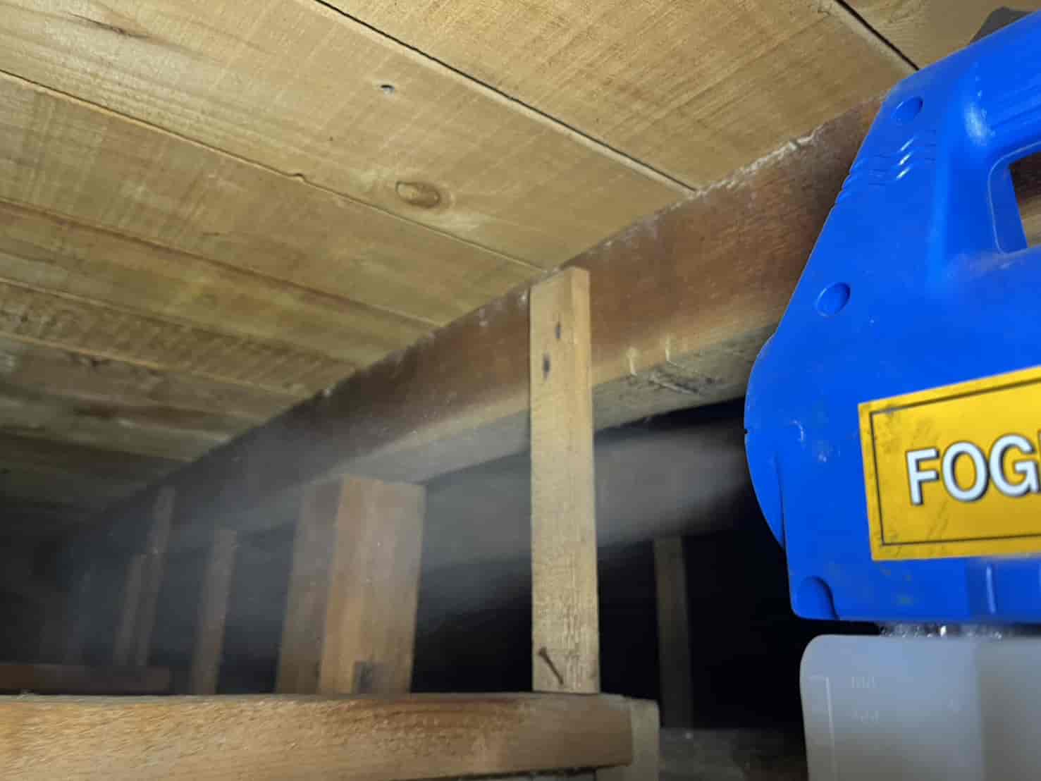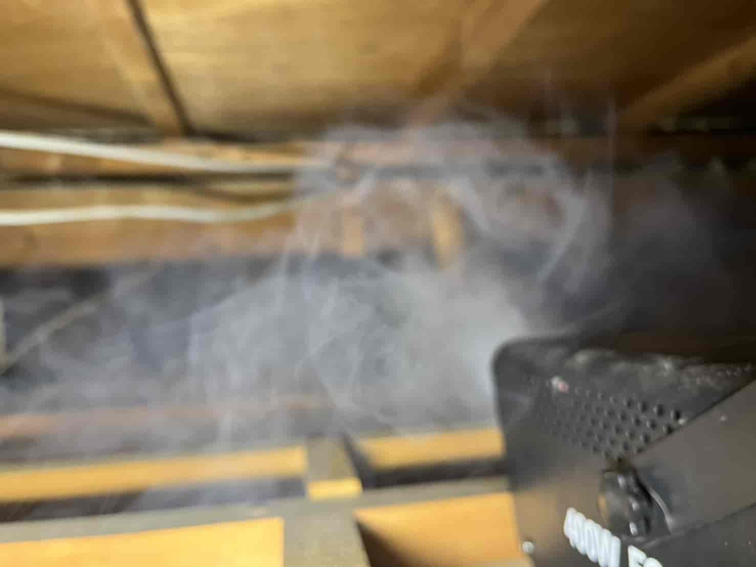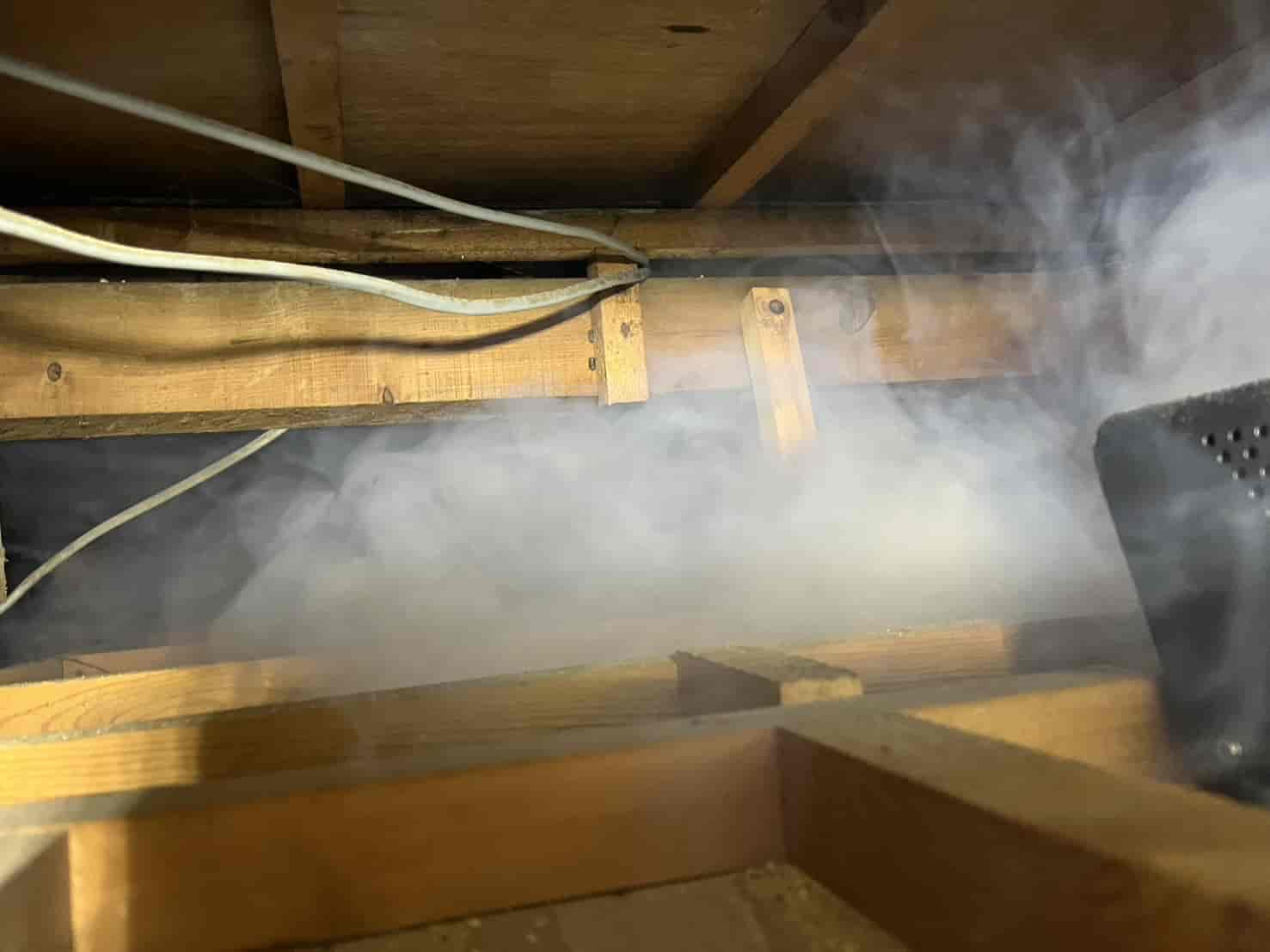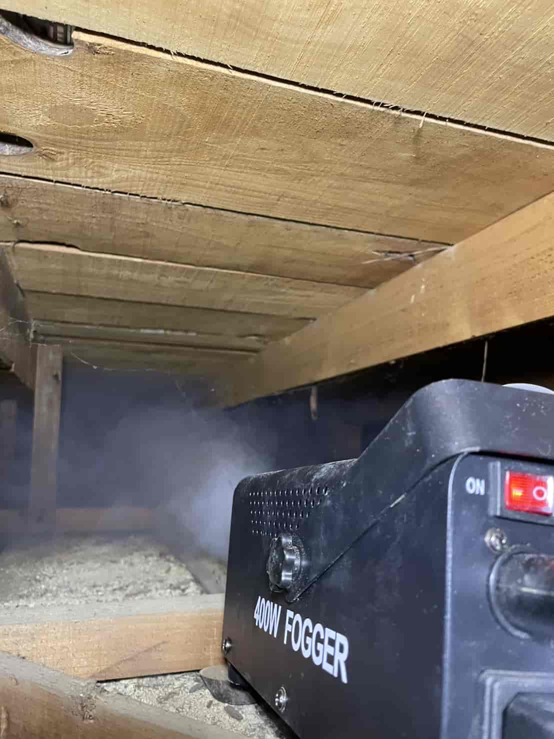 その後、天井裏全体に燻煙処理(追い出し処理)を行い、害獣が住みついている場所から外へ追い出しました。