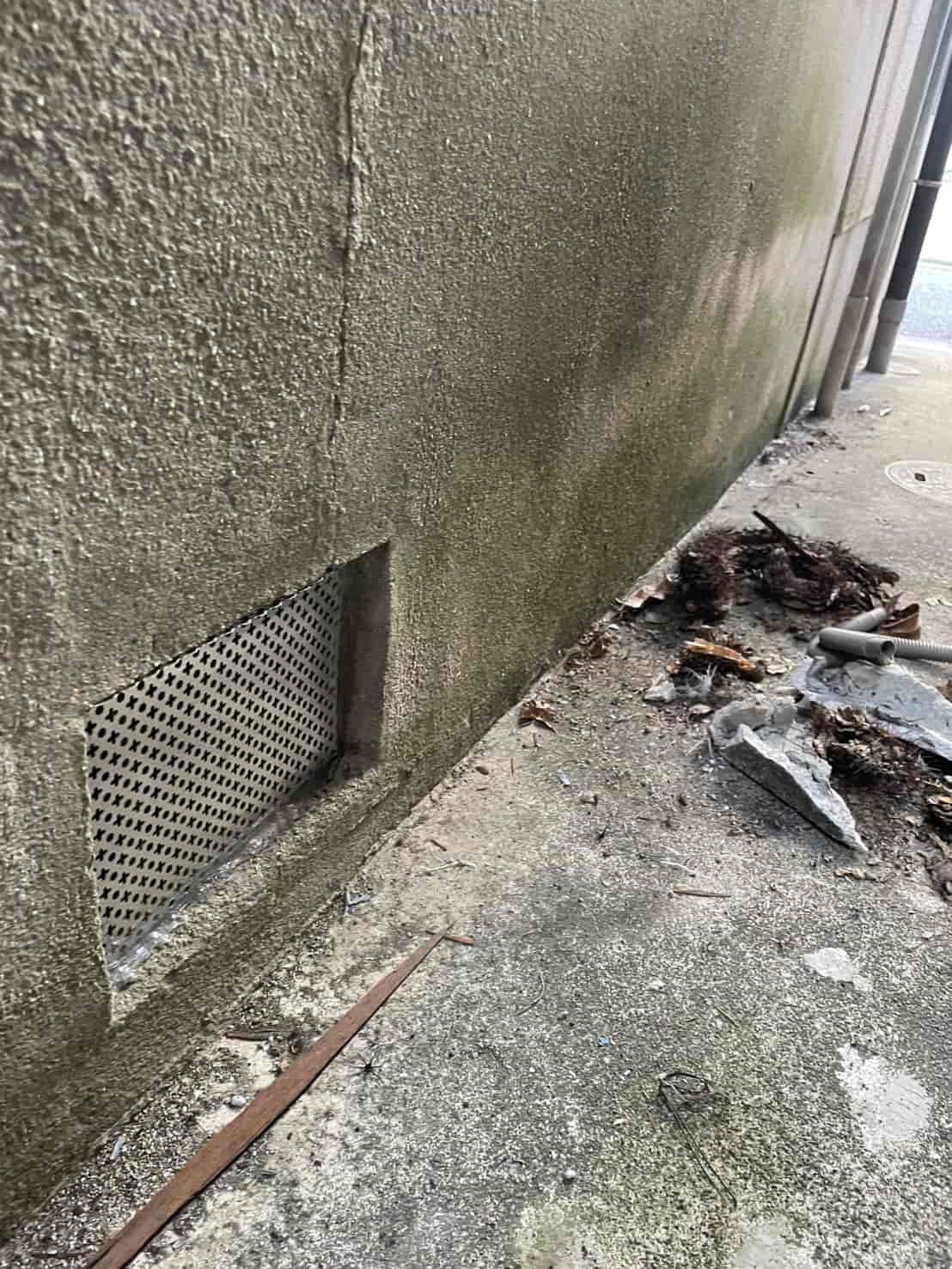 では、天井裏や屋根裏の構造が繋がっている場合もあり、害獣が隣の住宅へ移動しやすい環境になっていることがあります。今回の現場でも、空き家の屋根や外壁部分に侵入口があり、そこから害獣が侵入していました。