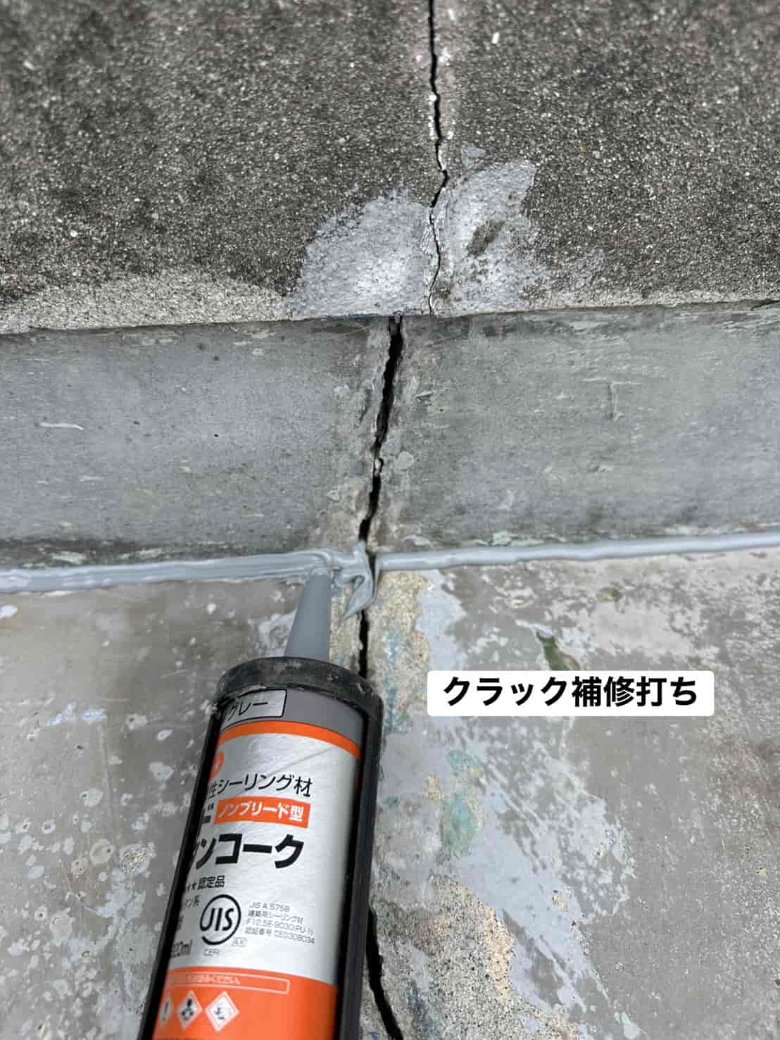既存のクラック(ひび割れ)部分には、ウレタンコークをしっかり充填し、