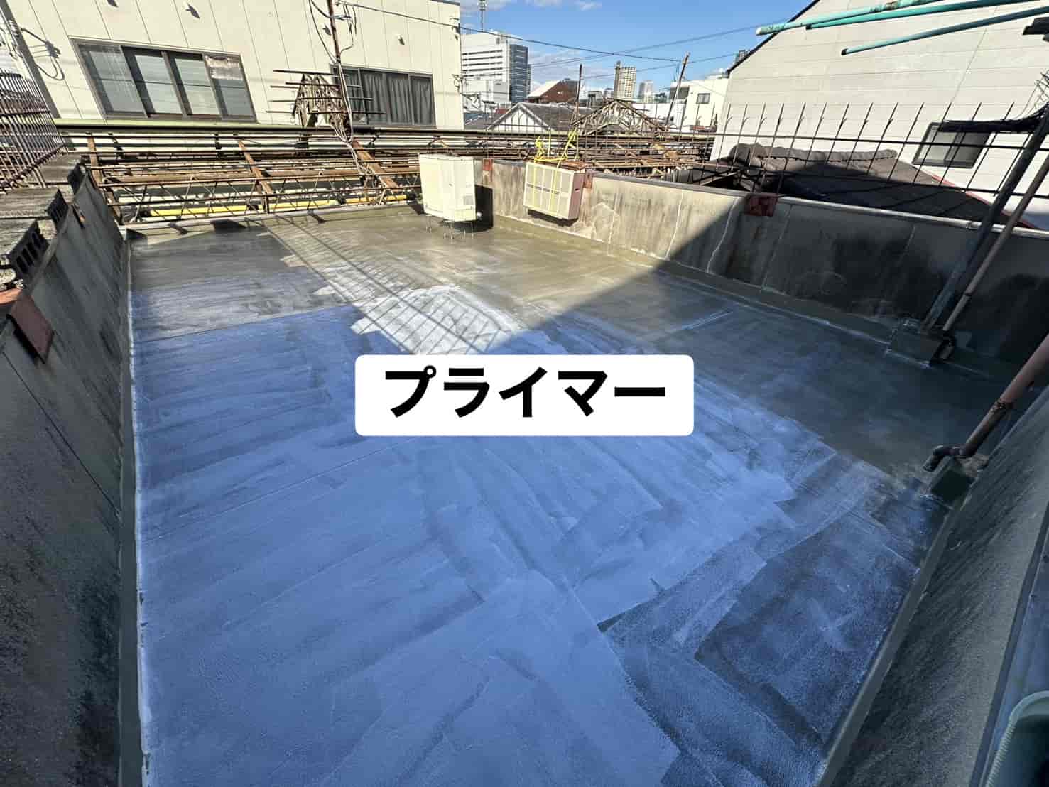 次に、ウレタン防水材の密着を最大化するプライマーを全面に丁寧に塗布しました。