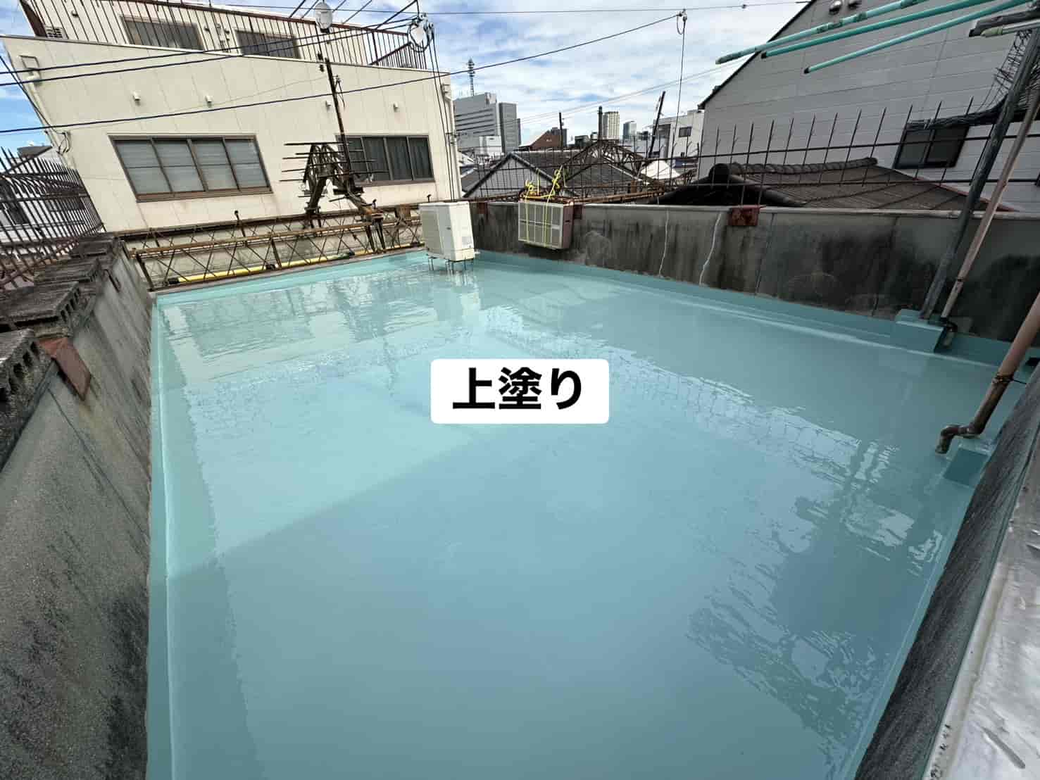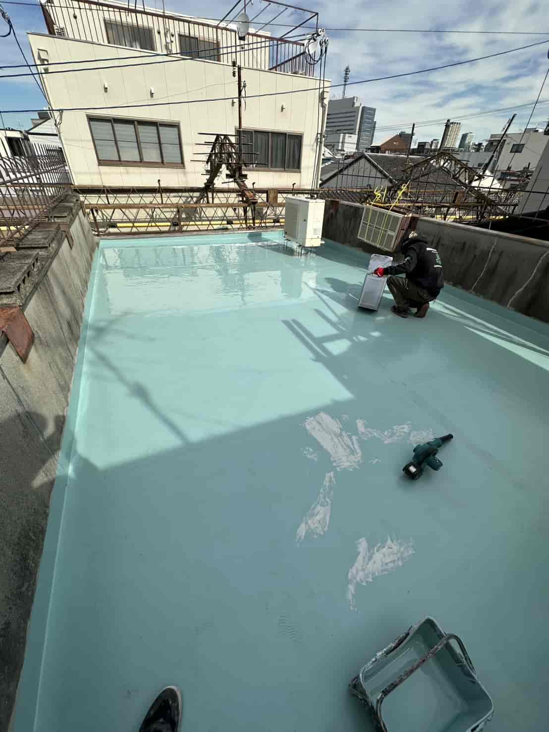 最後にトップコートを塗布し、紫外線・摩耗から防水層を保護。