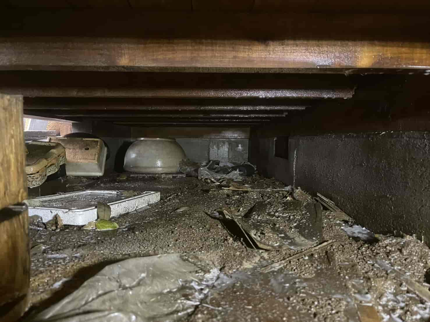 【対応】室内に落ちていた砂状の蟻土を確認し、現地調査を実施。床下点検にて基礎から木部へ伸びる蟻道と内部被害を確認しました。壁内部および床下の被害箇所へ穿孔し、専用薬剤を加圧注入。木部内部や蟻道全体へ薬剤を行き渡らせ、コロニー全体の駆除を実施しました。施工後は穿孔部の補修・清掃を行い、再侵入防止処理と今後の予防管理についてご説明いたしました。