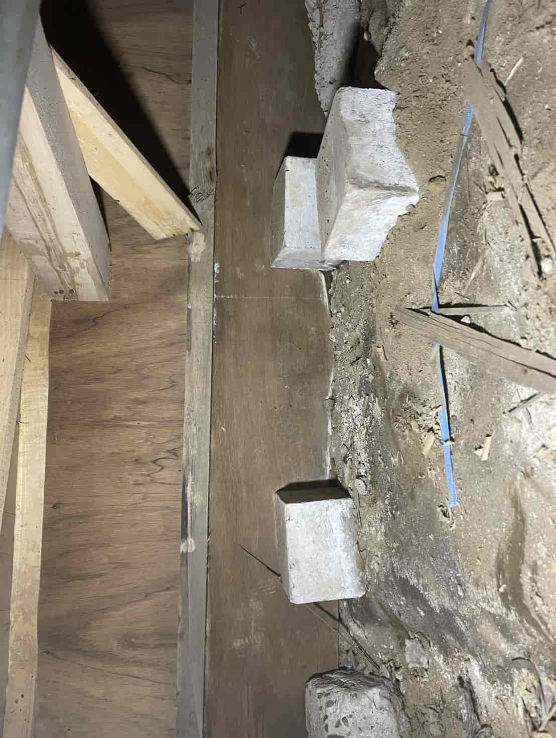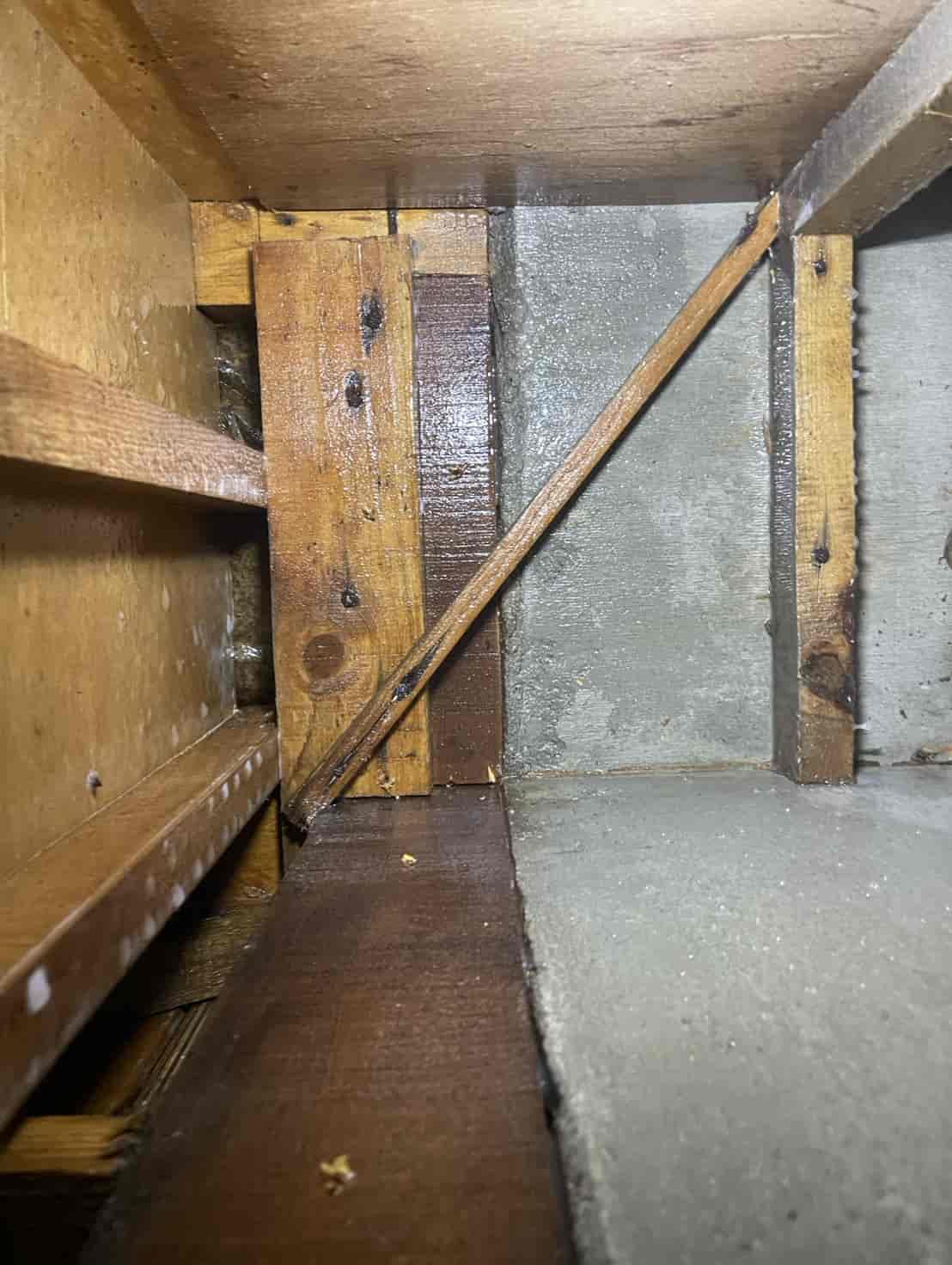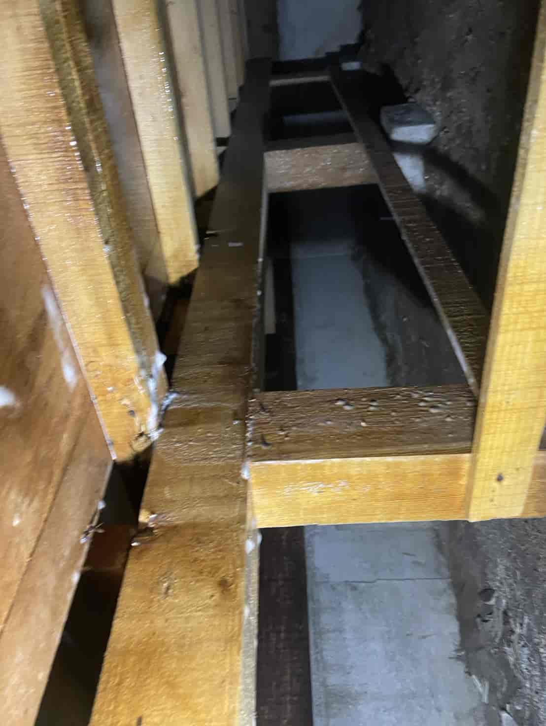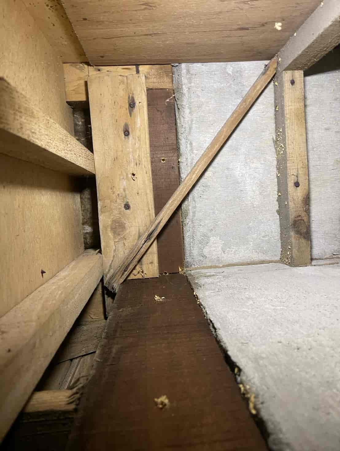 【対応】ご相談を受け、まず押し入れ内部を確認したところ、段ボールの崩落と白蟻の生体を確認。被害範囲を特定するため床下調査を行い、土台周辺に複数の蟻道と移動痕跡を発見しました。さらに玄関基礎にも土の付着があり、侵入経路の可能性が高いため、こちらも重点的に点検。被害状況を踏まえ、床下の木部穿孔注入処理、玄関のコンクリート穿孔注入処理の2点を中心に駆除を実施。構造材内部に薬剤を確実に浸透させ、既存の白蟻の駆除と再侵入防止を行いました。施工後は押し入れ内部を清掃し、木部表面への薬剤散布も実施。湿気対策や段ボール保管の注意点など、今後の予防方法についてもご案内しています。