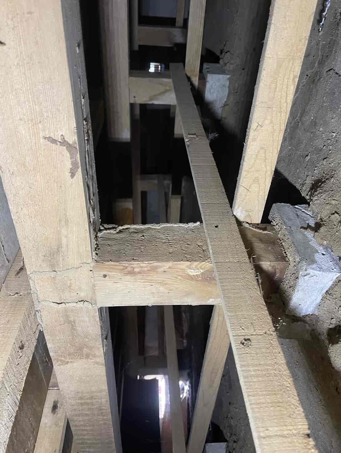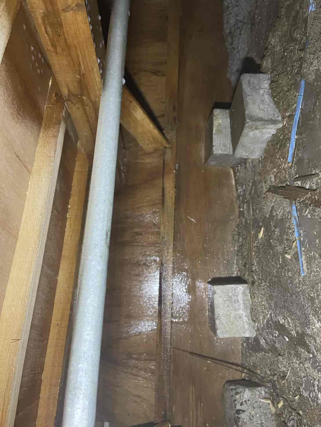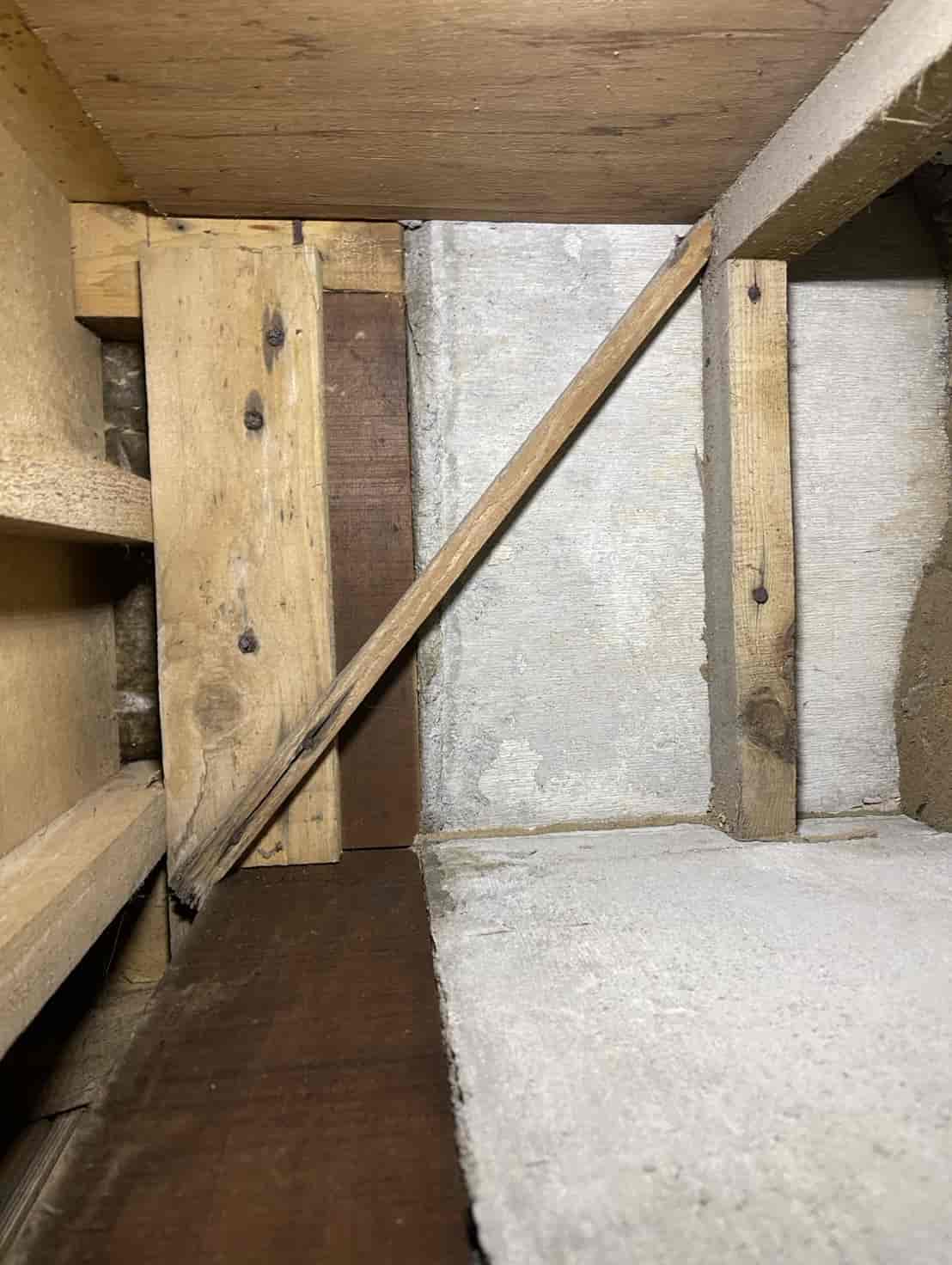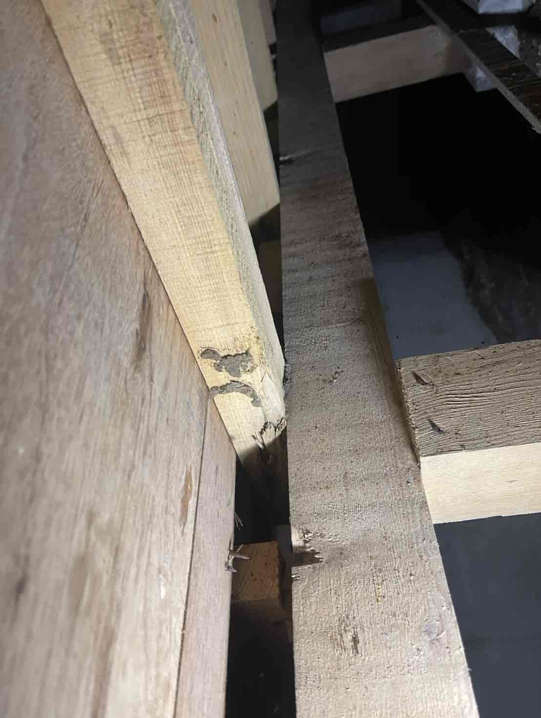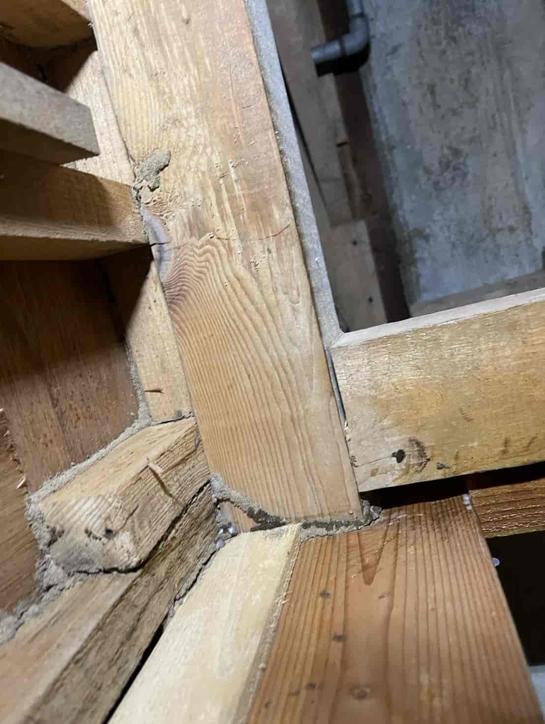 【対応】ご相談を受け、まず押し入れ内部を確認したところ、段ボールの崩落と白蟻の生体を確認。被害範囲を特定するため床下調査を行い、土台周辺に複数の蟻道と移動痕跡を発見しました。さらに玄関基礎にも土の付着があり、侵入経路の可能性が高いため、こちらも重点的に点検。被害状況を踏まえ、床下の木部穿孔注入処理、玄関のコンクリート穿孔注入処理の2点を中心に駆除を実施。構造材内部に薬剤を確実に浸透させ、既存の白蟻の駆除と再侵入防止を行いました。施工後は押し入れ内部を清掃し、木部表面への薬剤散布も実施。湿気対策や段ボール保管の注意点など、今後の予防方法についてもご案内しています。