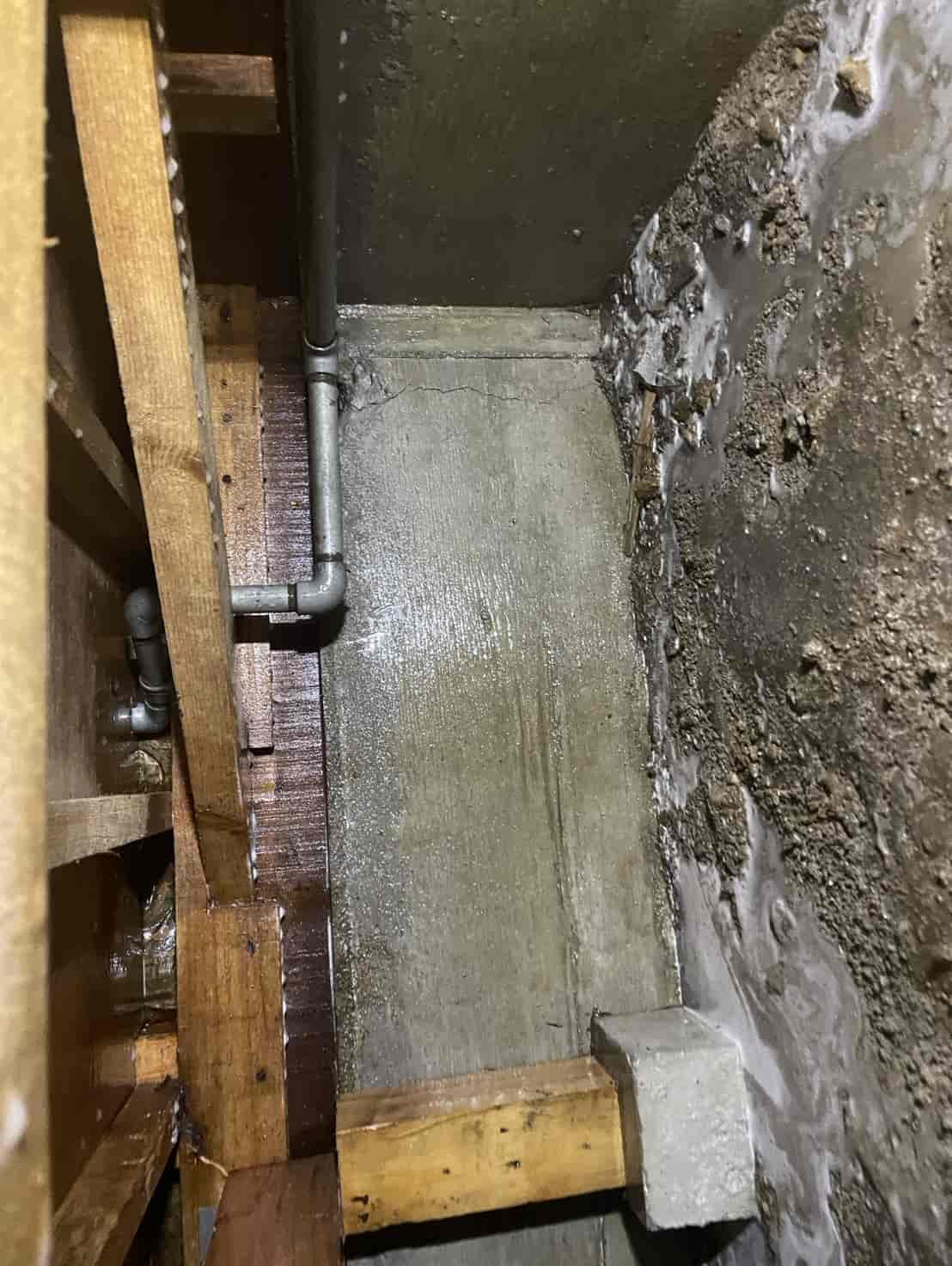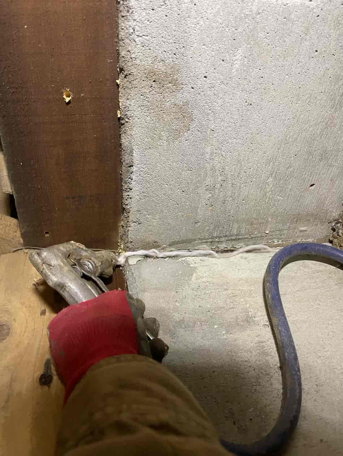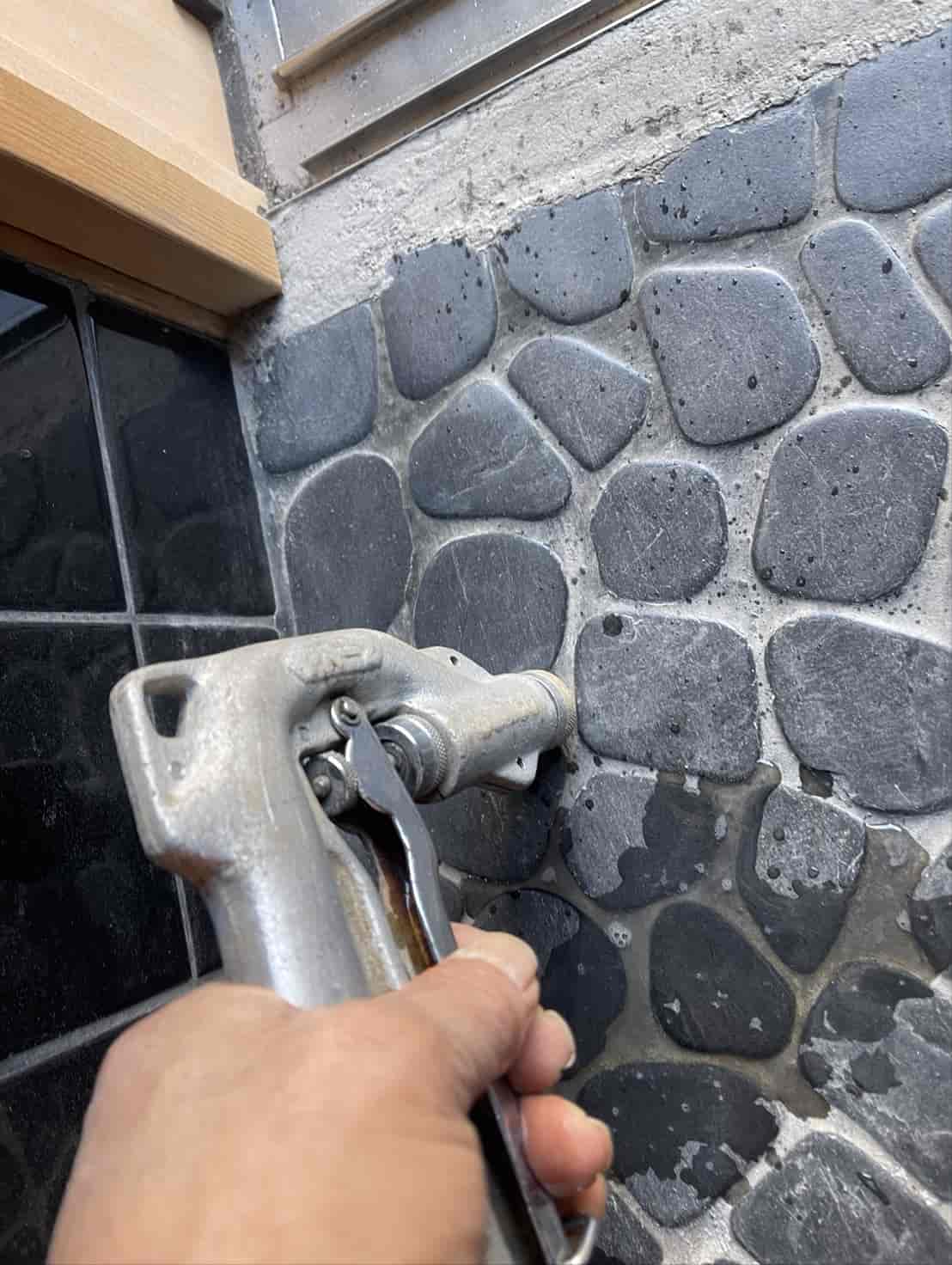 玄関は外部と接する部分であり、基礎の立ち上がりから白蟻が侵入しやすいポイントの一つです。点検の際に基礎コンクリートに土の付着があり、外部からの蟻道形成の可能性が高かったため、玄関土間に数箇所の小さな穿孔を行いました。穿孔した穴から基礎内部へ薬剤を圧入し、コンクリート下に広がる白蟻の通り道を断ち切ります。薬剤が土壌にバリア層を形成し、今後白蟻が同じ経路から侵入できないよう防御層を構築します。処理後はモルタルで穴を丁寧に補修し、見た目にも問題がないように仕上げています。