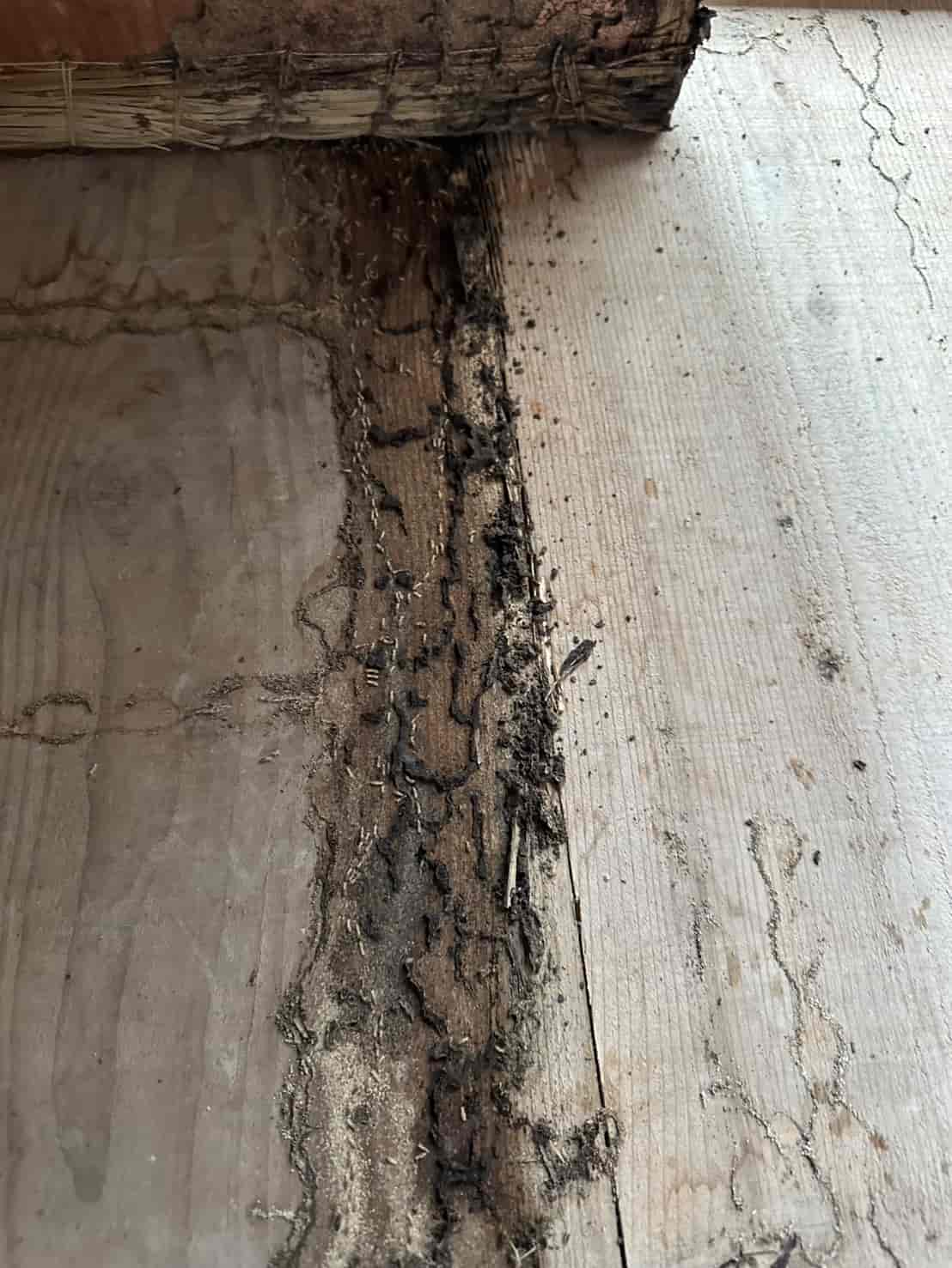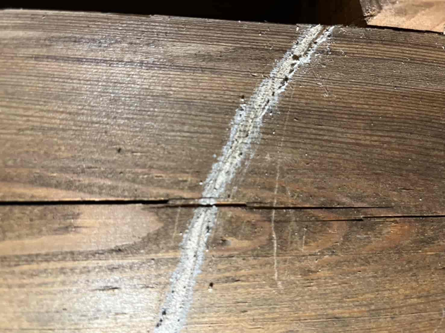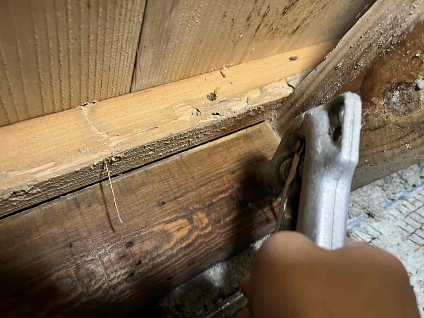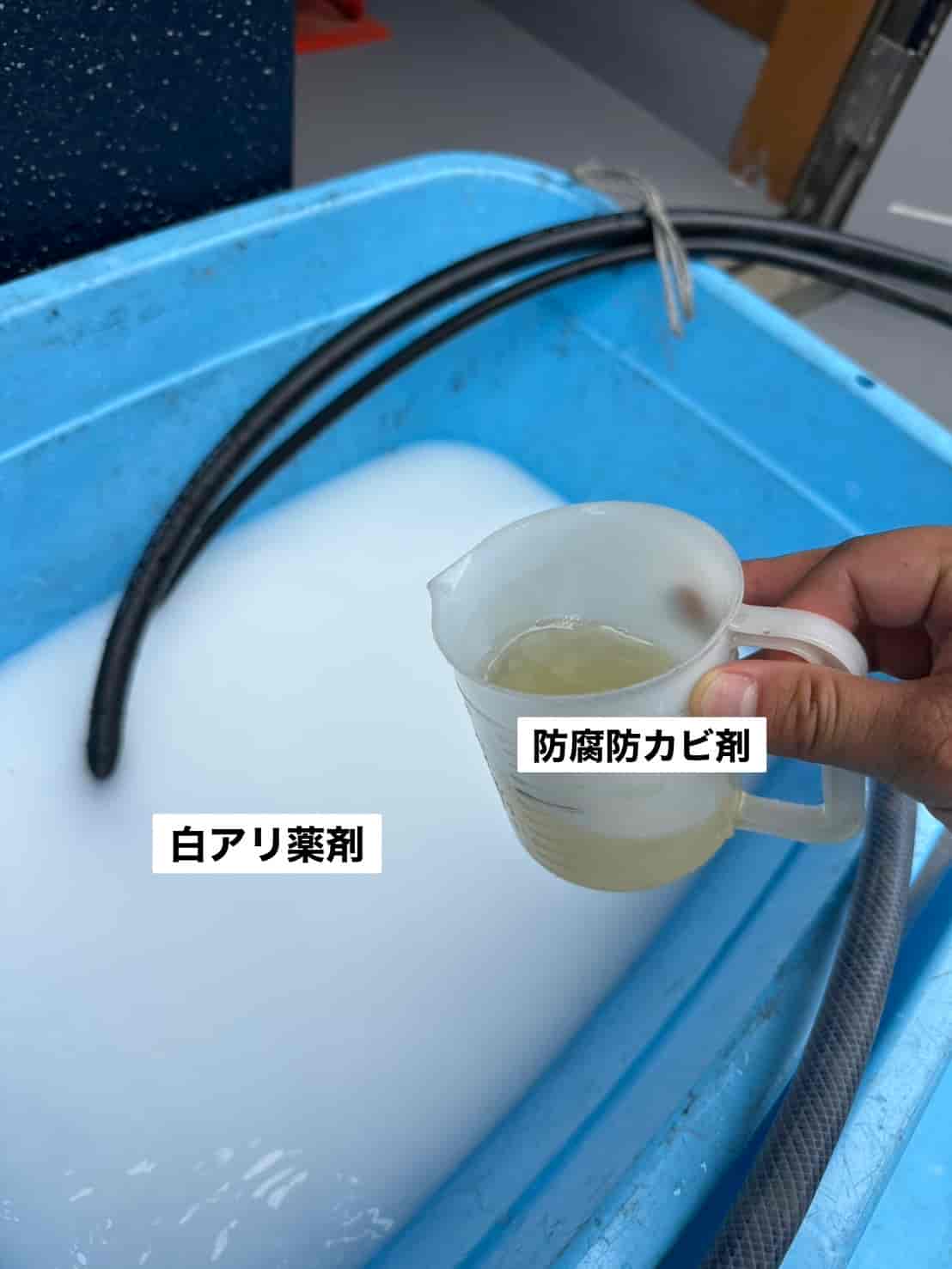 次に、白アリの蟻道が確認された木部に対して木部穿孔注入(もくぶせんこうちゅうにゅう)を行いました。
