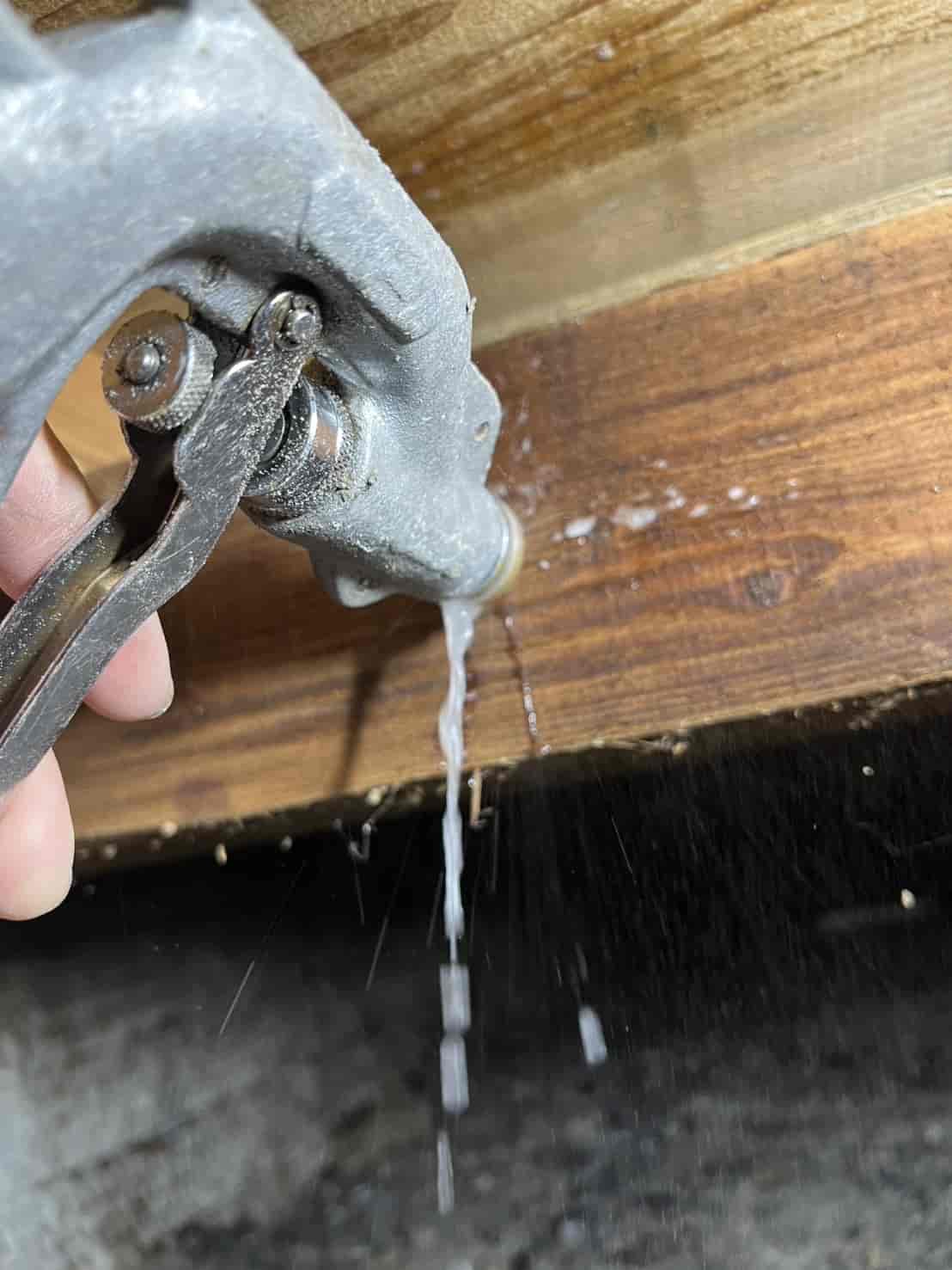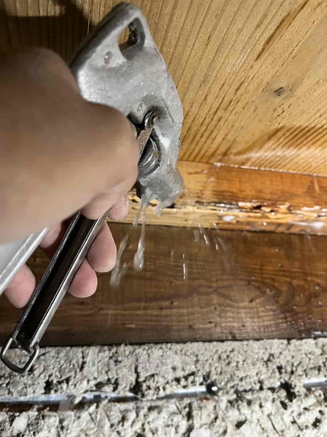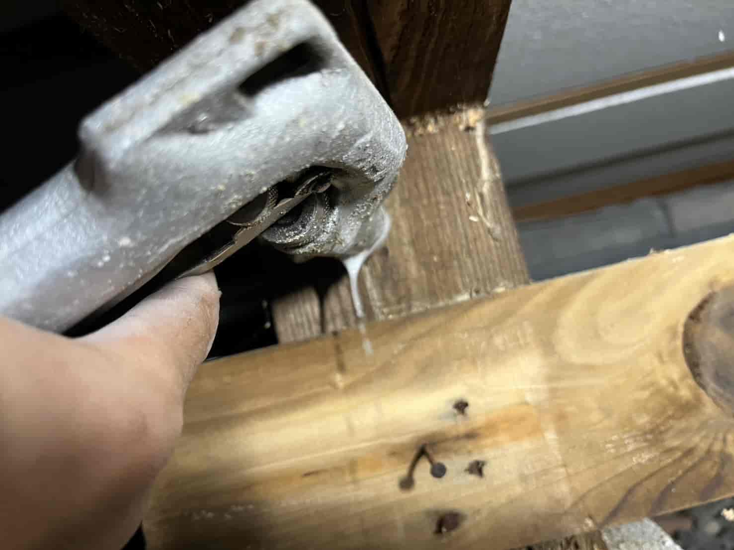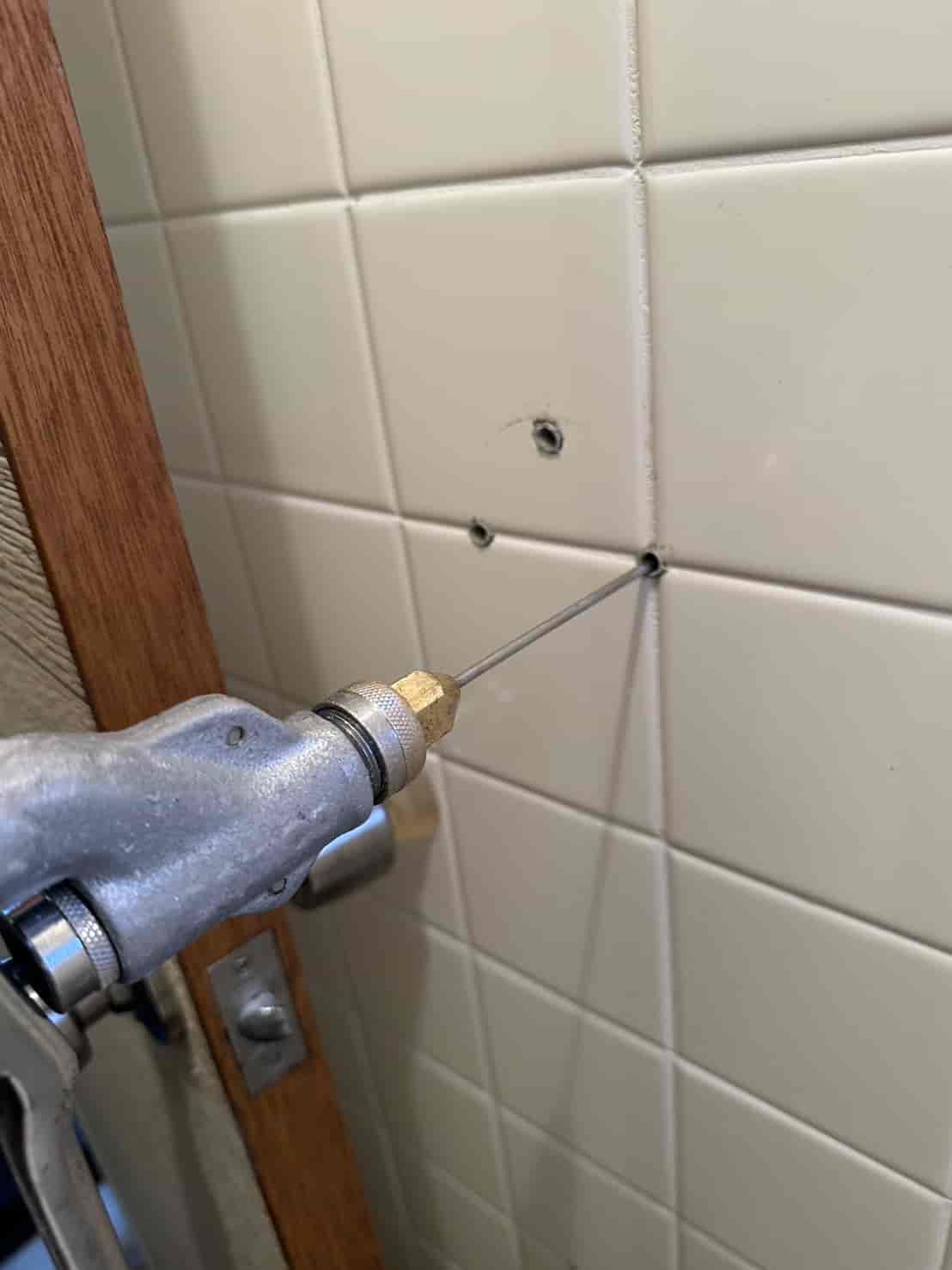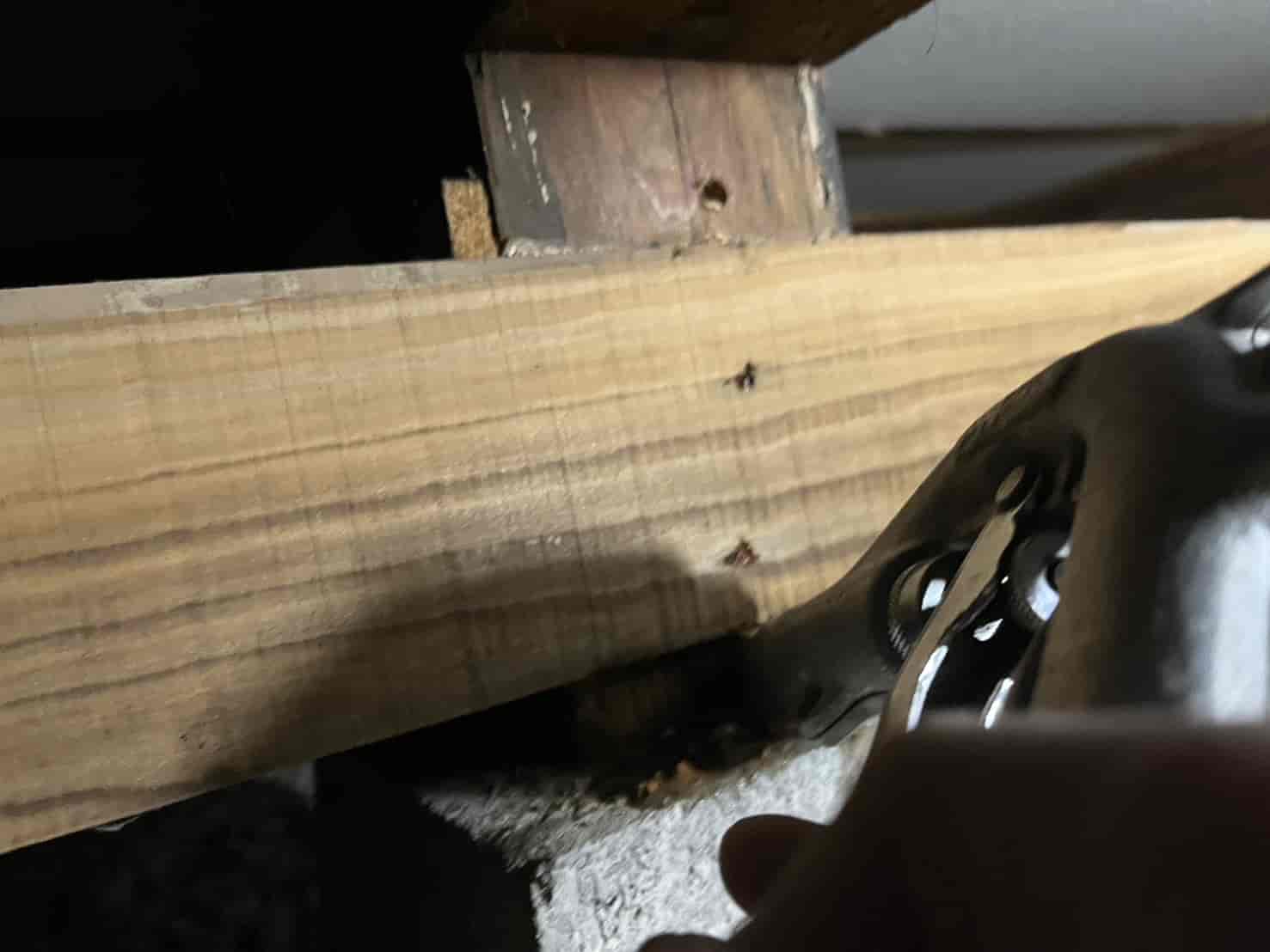 次に、白アリの蟻道が確認された木部に対して木部穿孔注入(もくぶせんこうちゅうにゅう)を行いました。