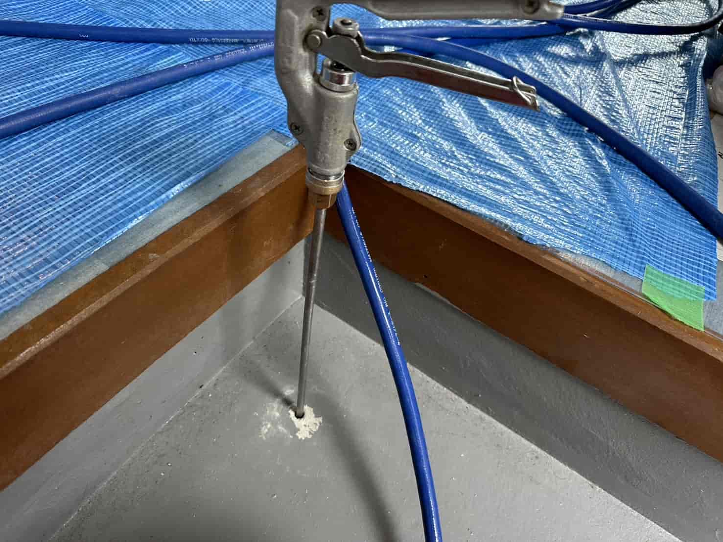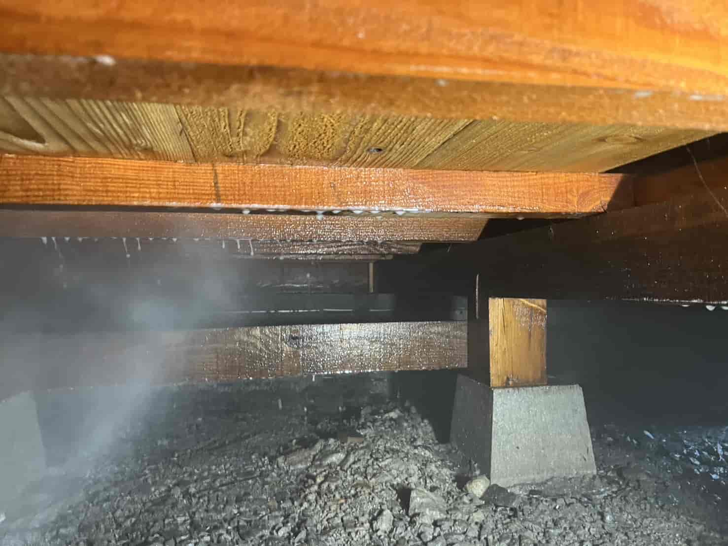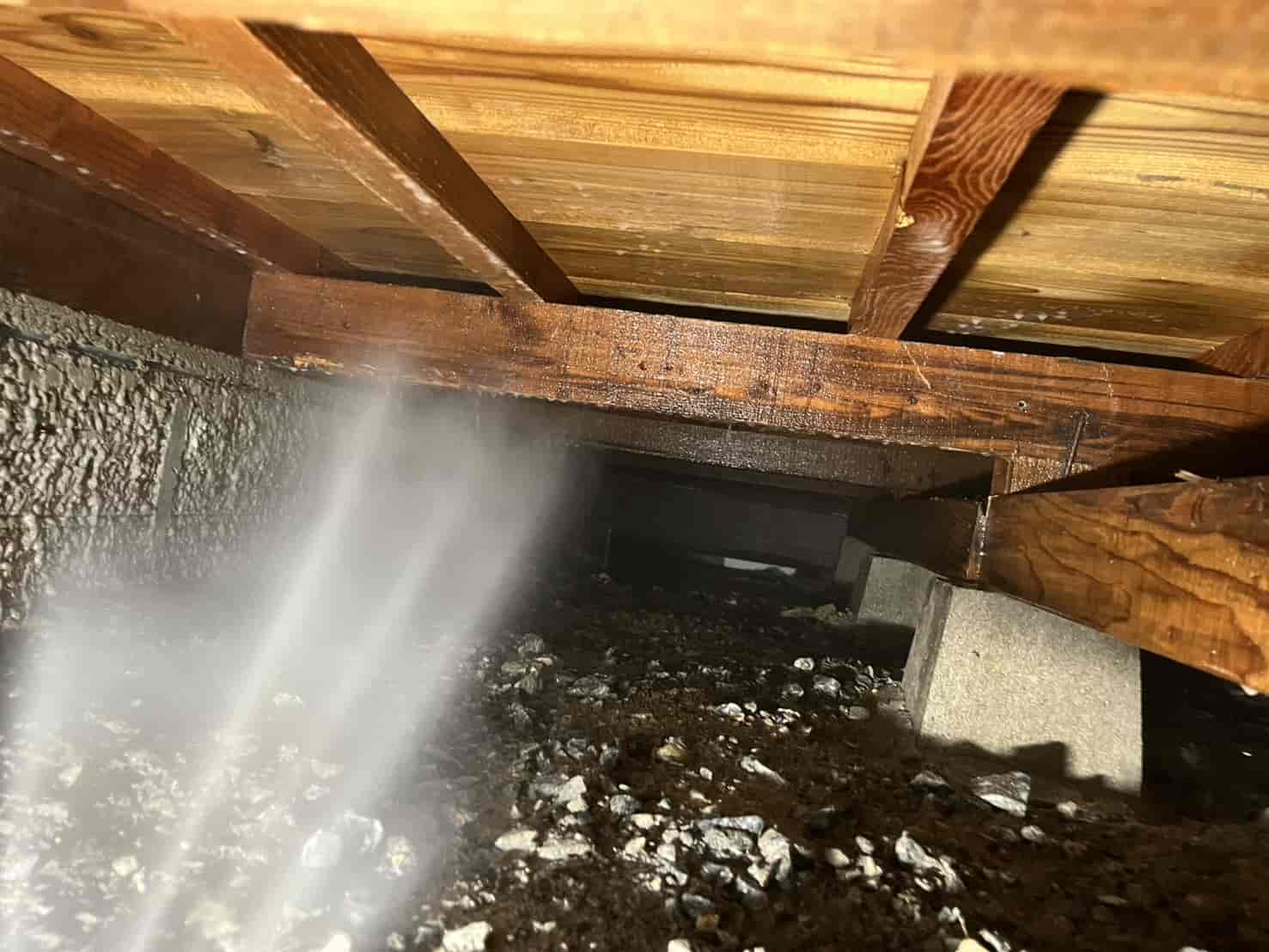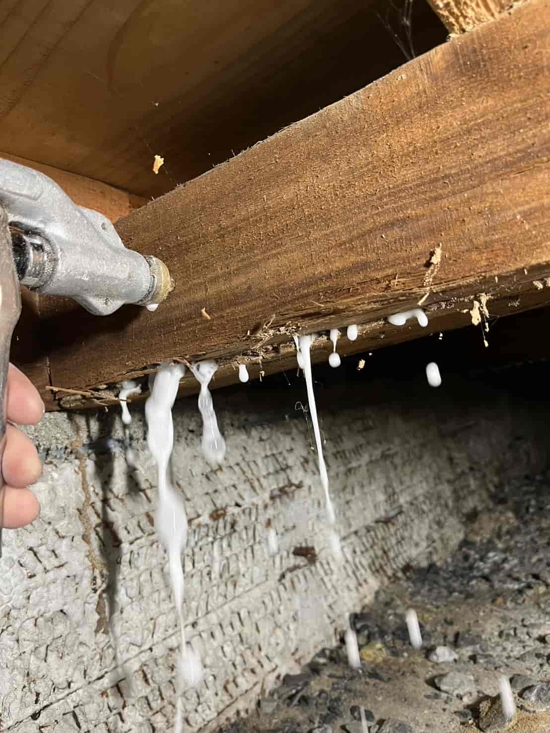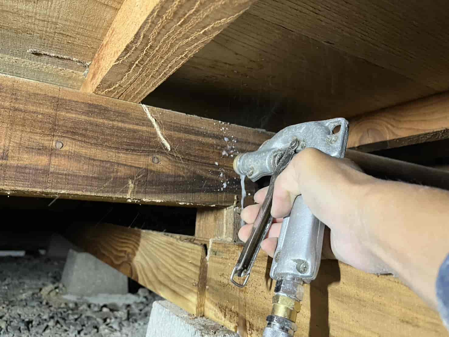 これは、床下の土壌表面や木部の接合部など、シロアリが通りやすい場所に薬剤を広く噴霧する工程です。床下に薬剤のバリアをつくり、残効性のある防蟻層を形成することで、現在活動しているシロアリだけでなく、将来新たに侵入してくる白アリを長期間寄せ付けない効果を発揮します。施工後も薬剤の効果が持続するため、建物全体を白アリから守ることができます。