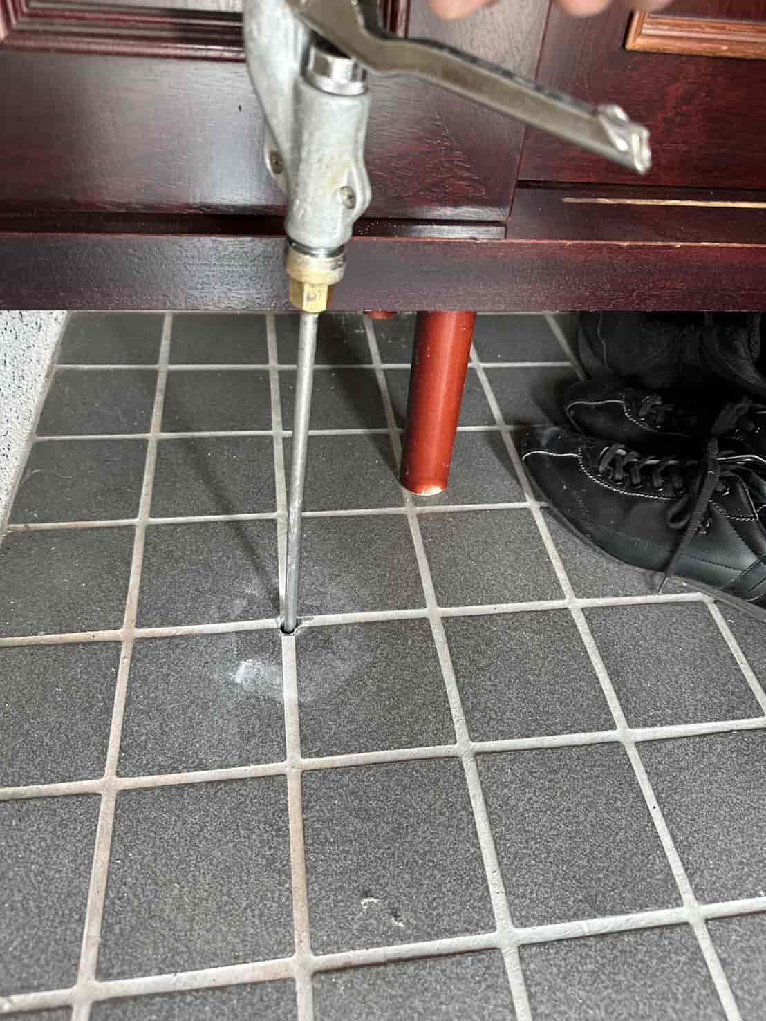 ハツリとは、コンクリートを専用工具で部分的に削り取って開口部を作る作業です。無闇に壊すのではなく、建物の強度に支障をきたさない範囲で慎重に削り、床下の奥まで薬剤を届けられるルートを確保します。この工程を経ることで、床下の閉じた空間にもアクセスできるようになり、白アリ駆除を確実に行う準備が整いました。