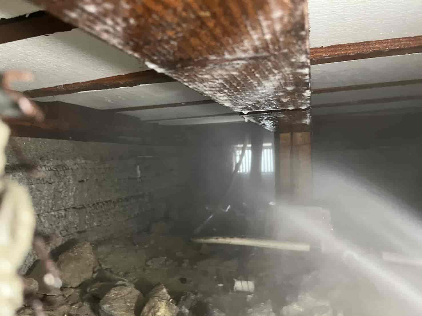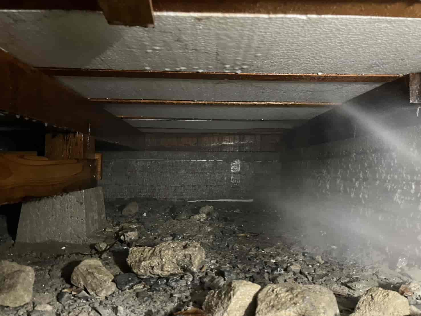 木部の処理を終えた後は、床下全体に防蟻薬剤を全体散布しました。