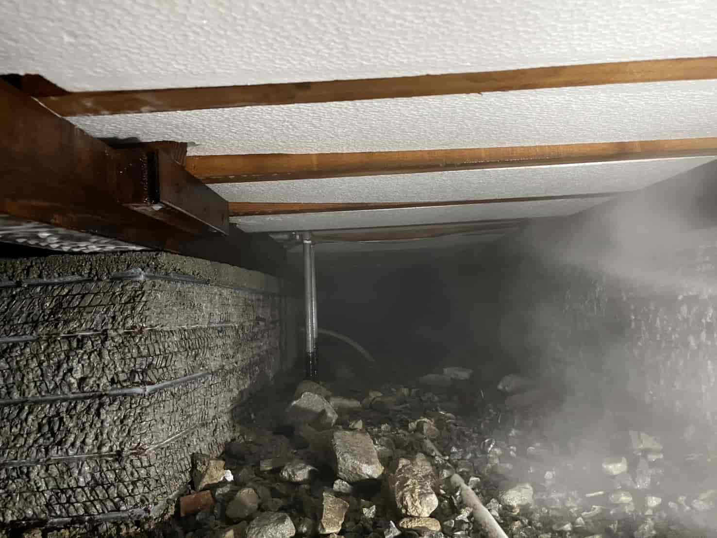 お客様から「白アリ被害が心配なので一度見てほしい」とのご依頼を受け、まずは現地調査を実施しました。現場は一見すると普通の戸建住宅ですが、床下に入って確認すると建物の基礎がコンクリートで複雑に区切られており、床下から全体を一度に調査することが非常に困難な造りになっていました。シロアリの被害状況を正確に把握するには、床下全体を点検して蟻道(シロアリが作る土のトンネル)や食害箇所を見つける必要があります。しかしこの住宅では、基礎が連続しておらずいくつもの独立した空間が存在していたため、従来の床下点検方法だけでは白アリの侵入経路や被害範囲をすべて確認することができませんでした。