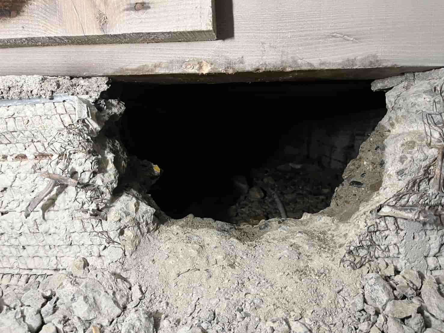 そのため、確実に薬剤を行き渡らせるにはコンクリート基礎のハツリ作業を行う必要がありました。