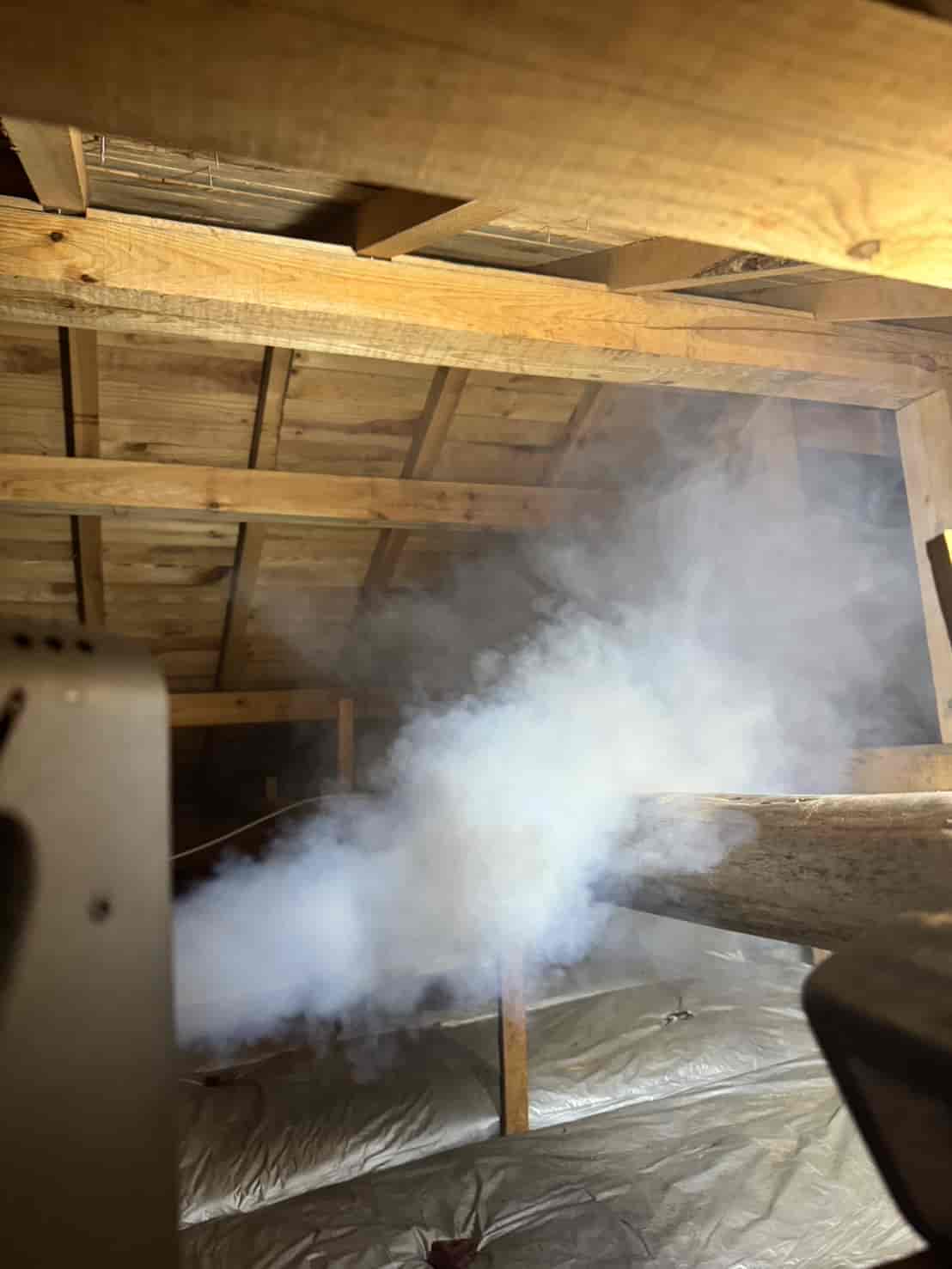 また、追い出し後の屋根裏には消毒剤と消臭剤を散布し、