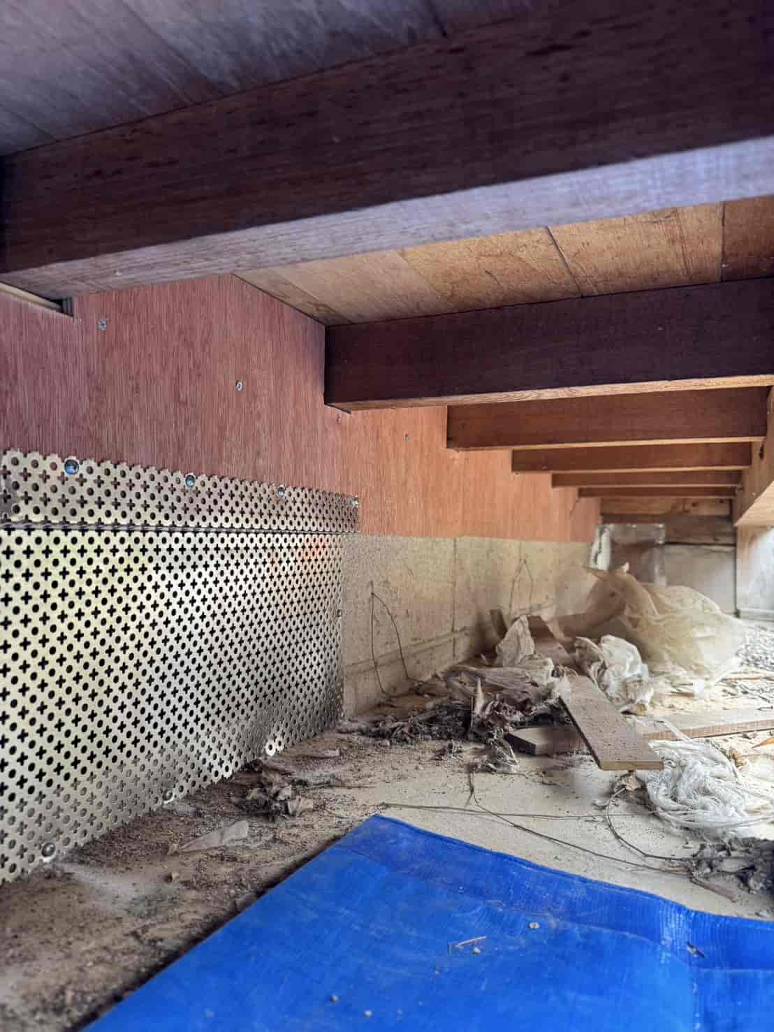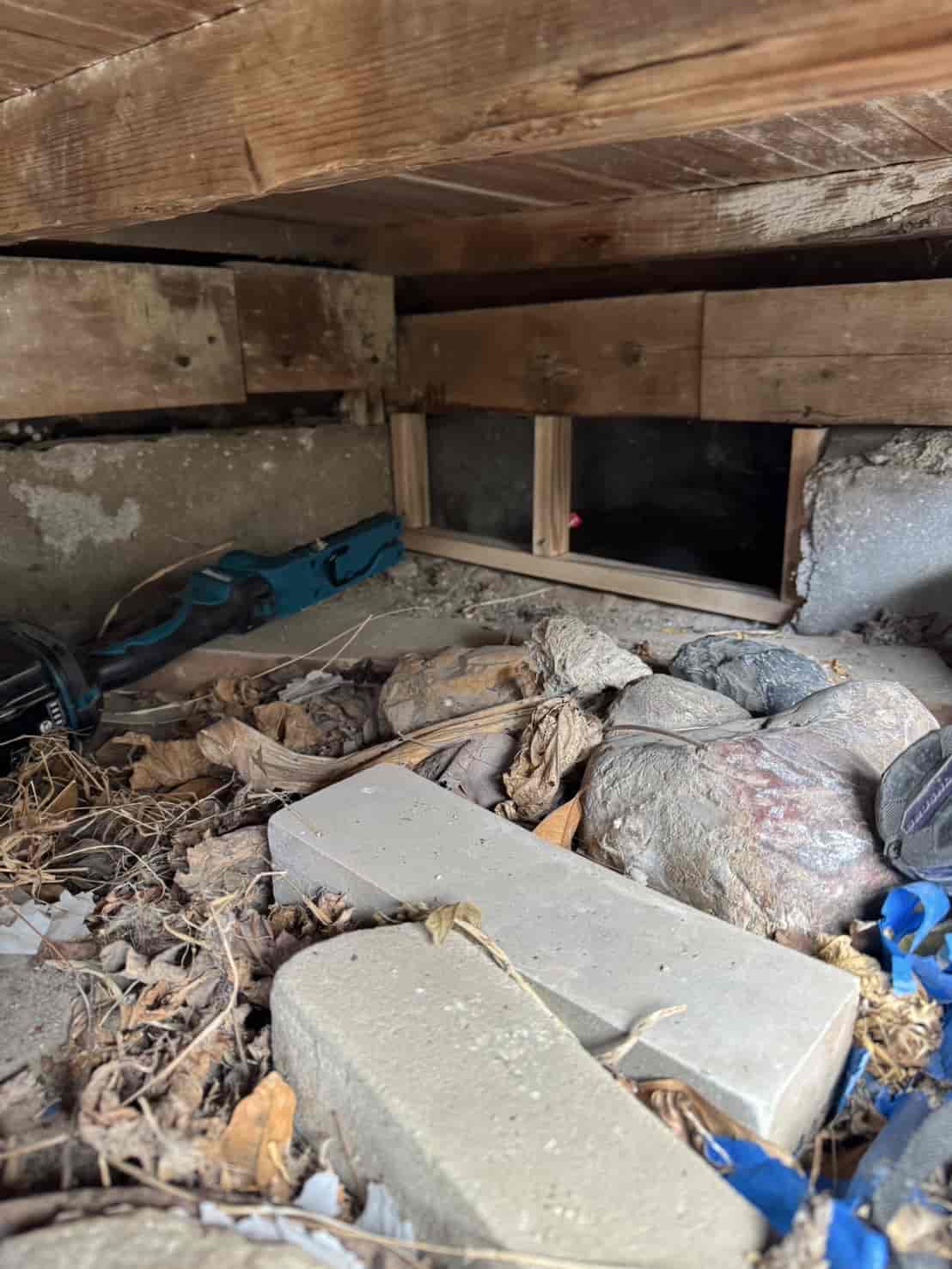 【対応】寒くなってから、屋根裏から足音が聞こえてくるとの依頼を受け調査をしたところ、あちこちに侵入経路があった為、追い出し作業と侵入口を塞ぐ工事を行いました。
