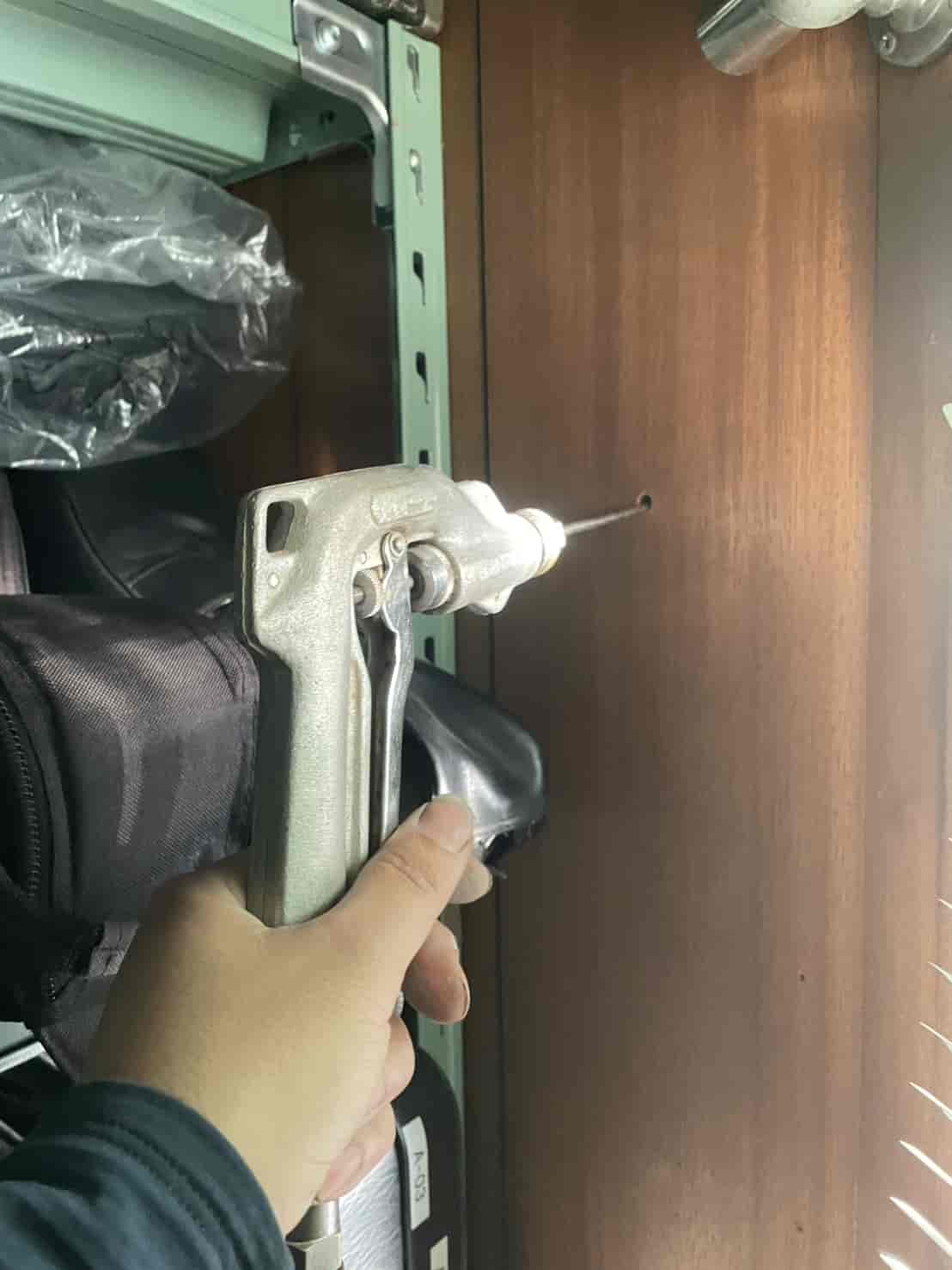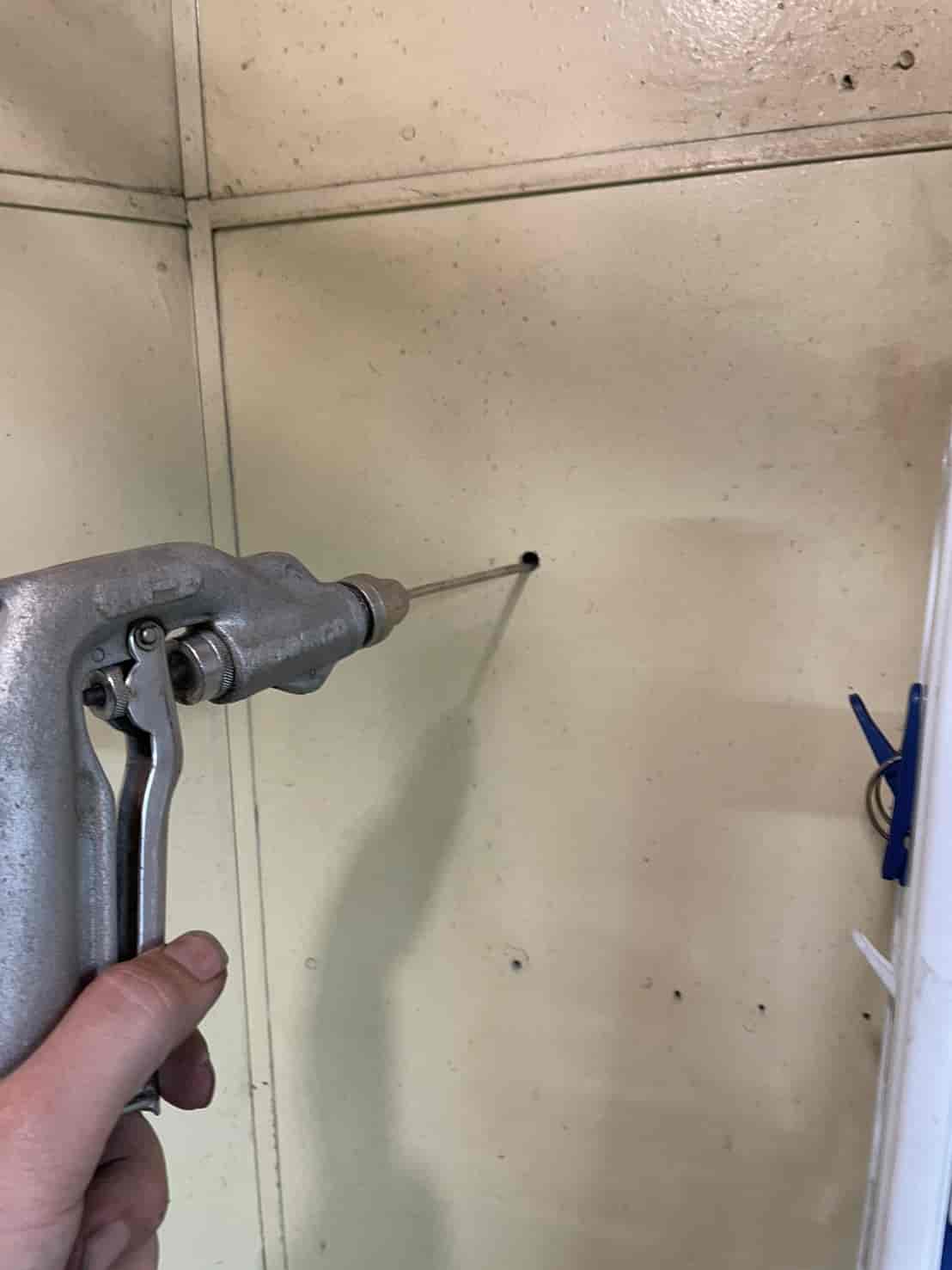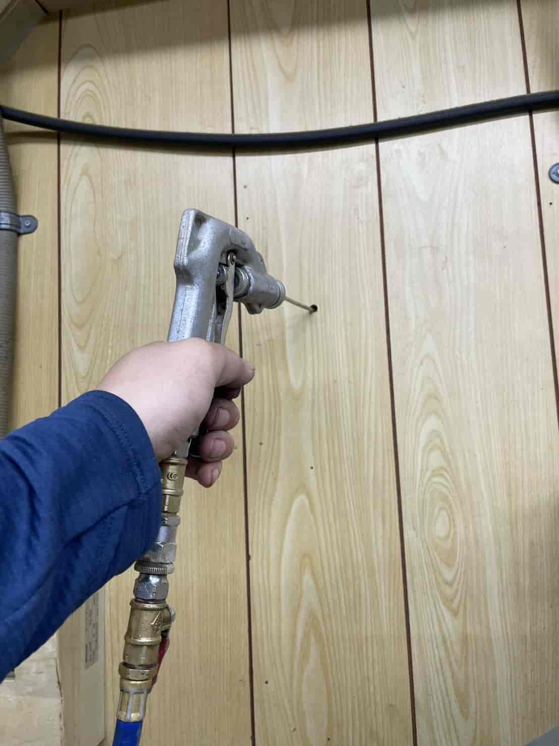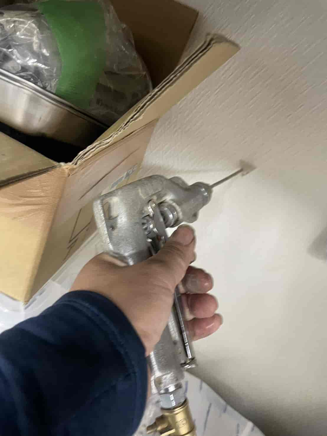 床下に進入できない建物でも、プロの現場では**「壁面への薬剤注入処理」**が非常に有効です。この方法では、面に小さな穴を数カ所あける。内部の空間や木部へ薬剤を直接注入する。その後、穴を補修して原状に近い状態に戻す