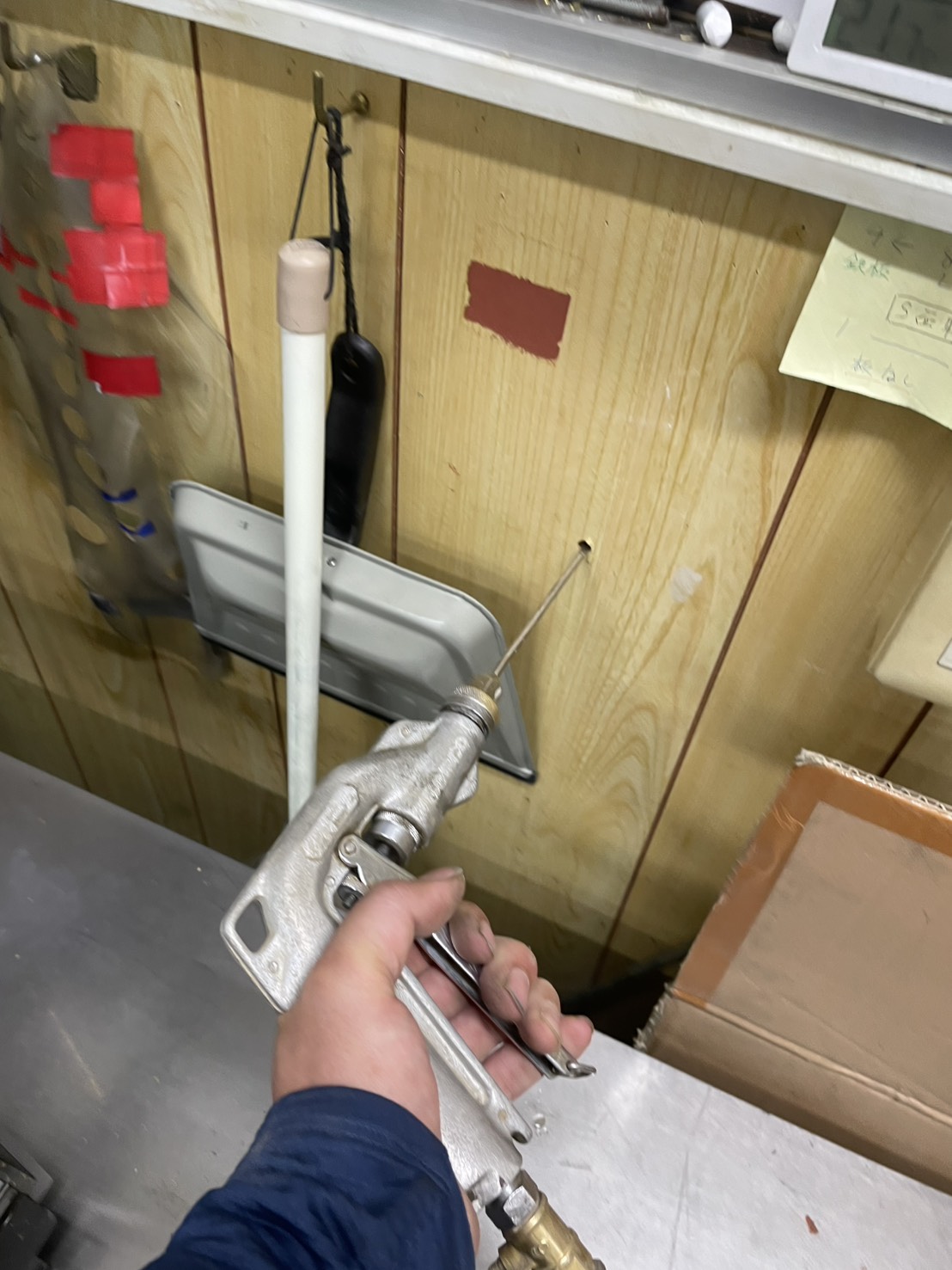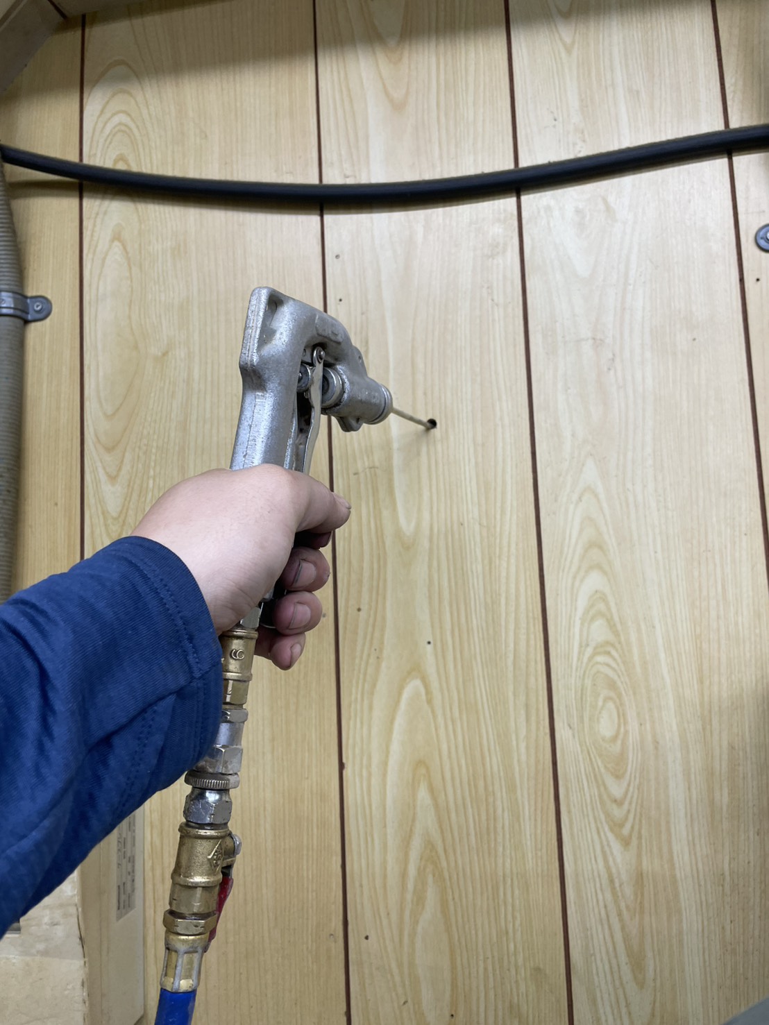 現地調査で確認したところ、建物は元々一軒家だったものを企業用に改装したタイプ。床下点検口がなく、床下空間自体も塞がれている構造でした。このような建物は、床下への侵入口がない、断熱材や下地材で完全に密閉されている、水回りのリフォームで配管が覆われている、などの理由で従来の床下散布が不可能です。しかし、シロアリは建物の形状に関係なく侵入します。むしろ、こうした“見えない構造”ほど内部の被害は深刻化しやすい傾向にあります。今回も、シロアリが隊列をなして壁面から行動しており、どこかで繁殖が進んでいる可能性が高い状態でした。