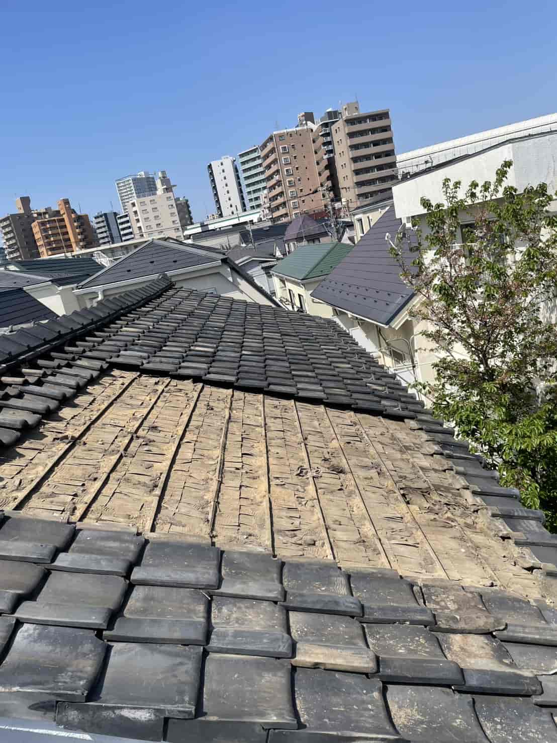 屋根の状態を詳しく確認したところ、経年劣化により瓦の一部が割れており、その隙間から雨水が侵入していることが判明しました。