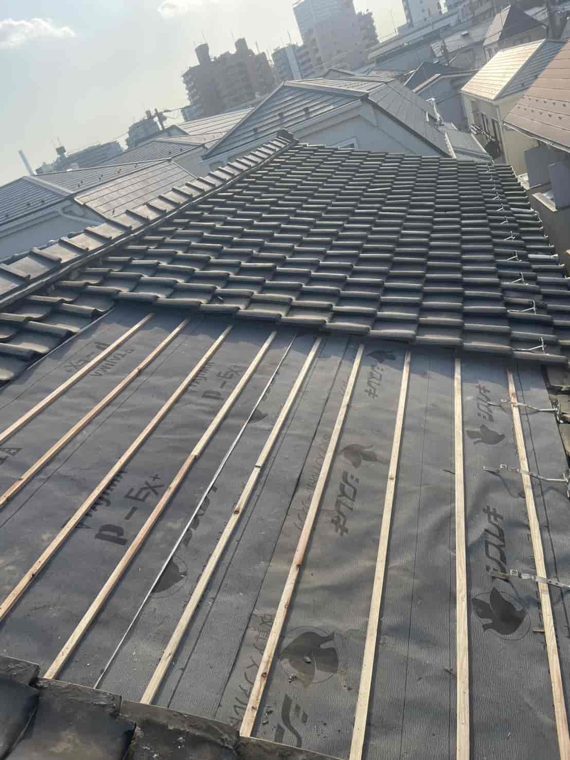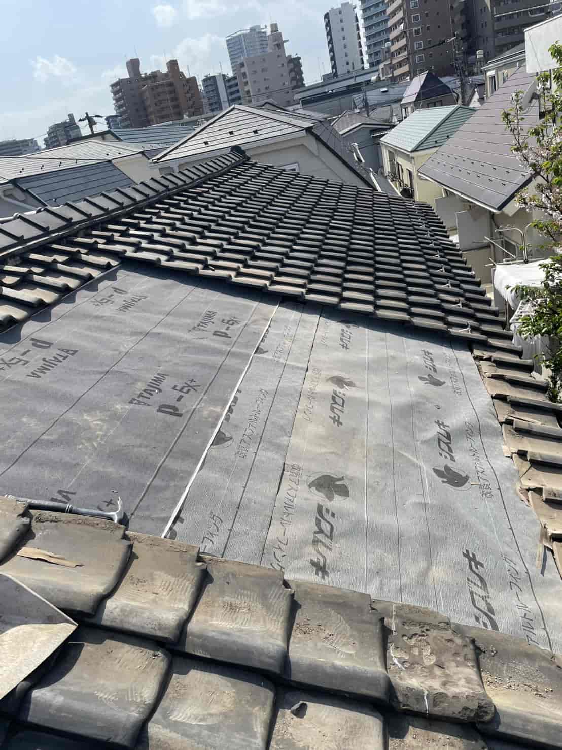 今回の対策として、割れた瓦の下に防水シートを新たに敷設し、雨水の侵入経路をしっかりと遮断する工事をご提案。