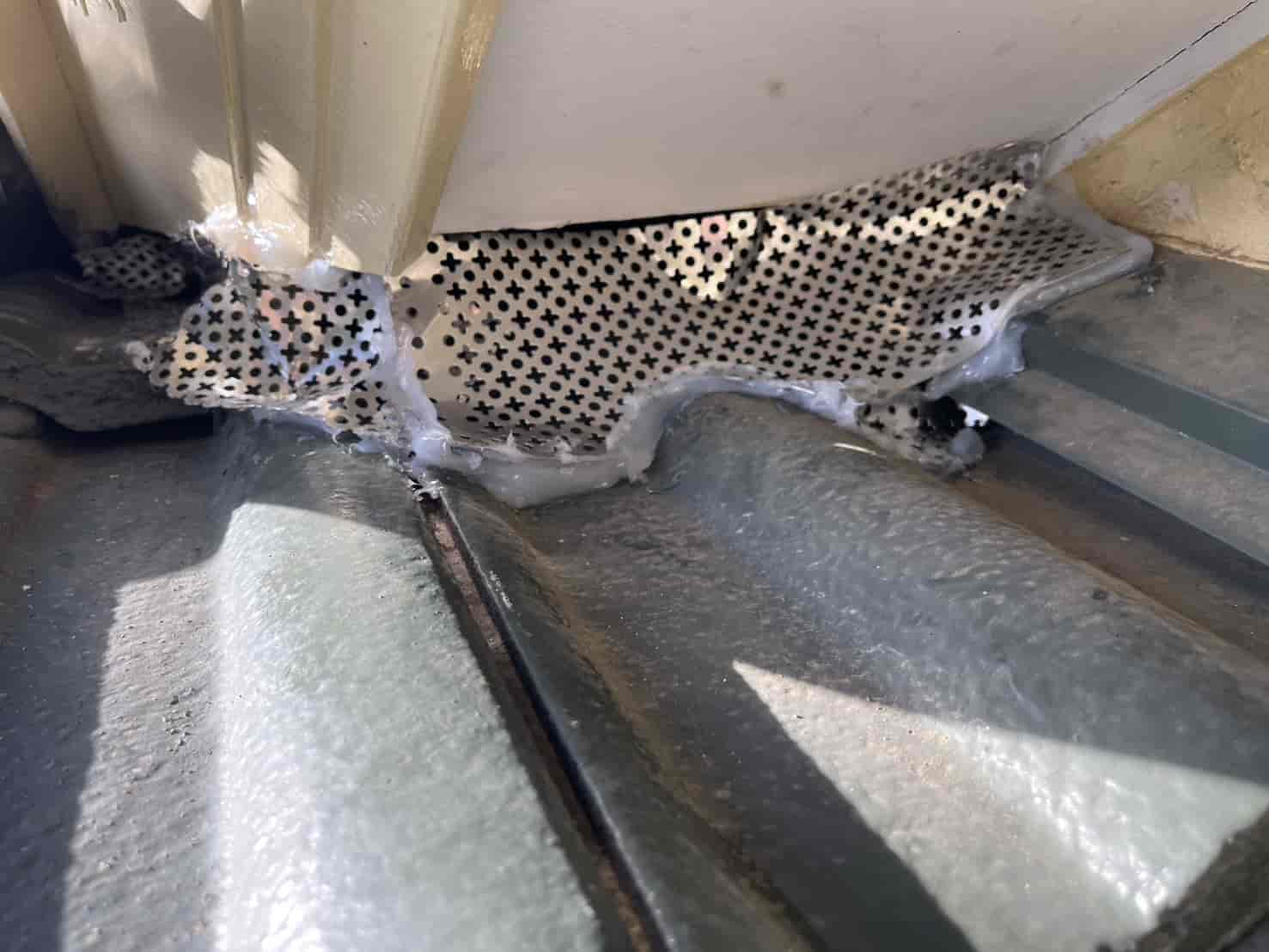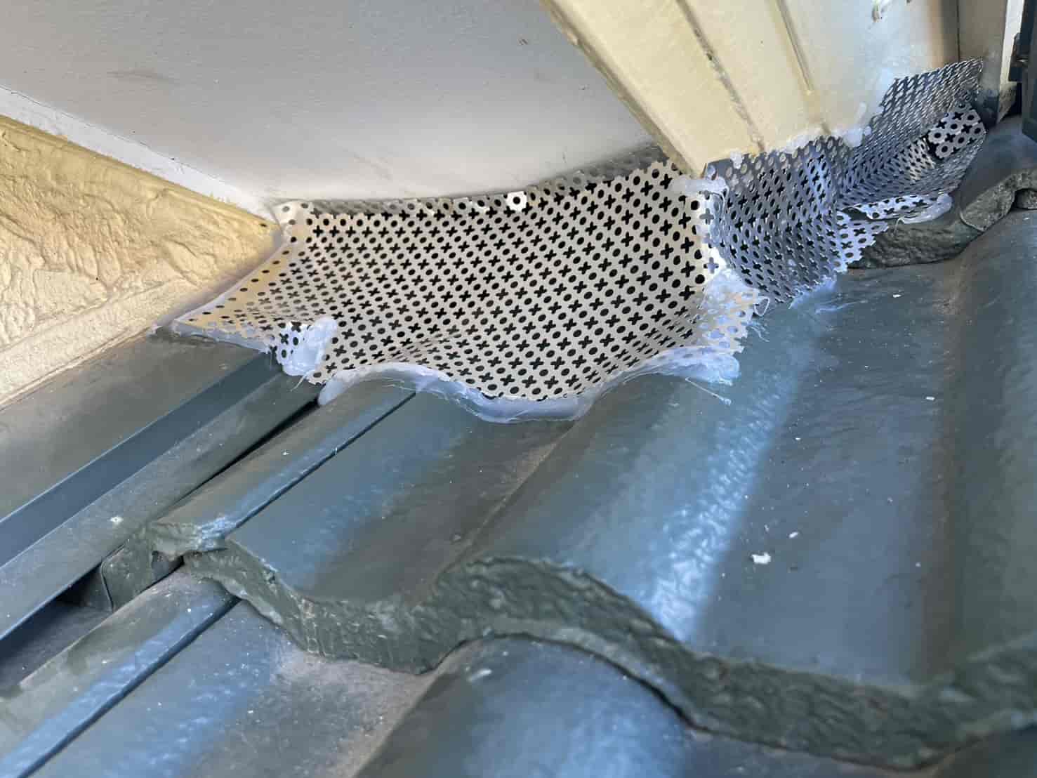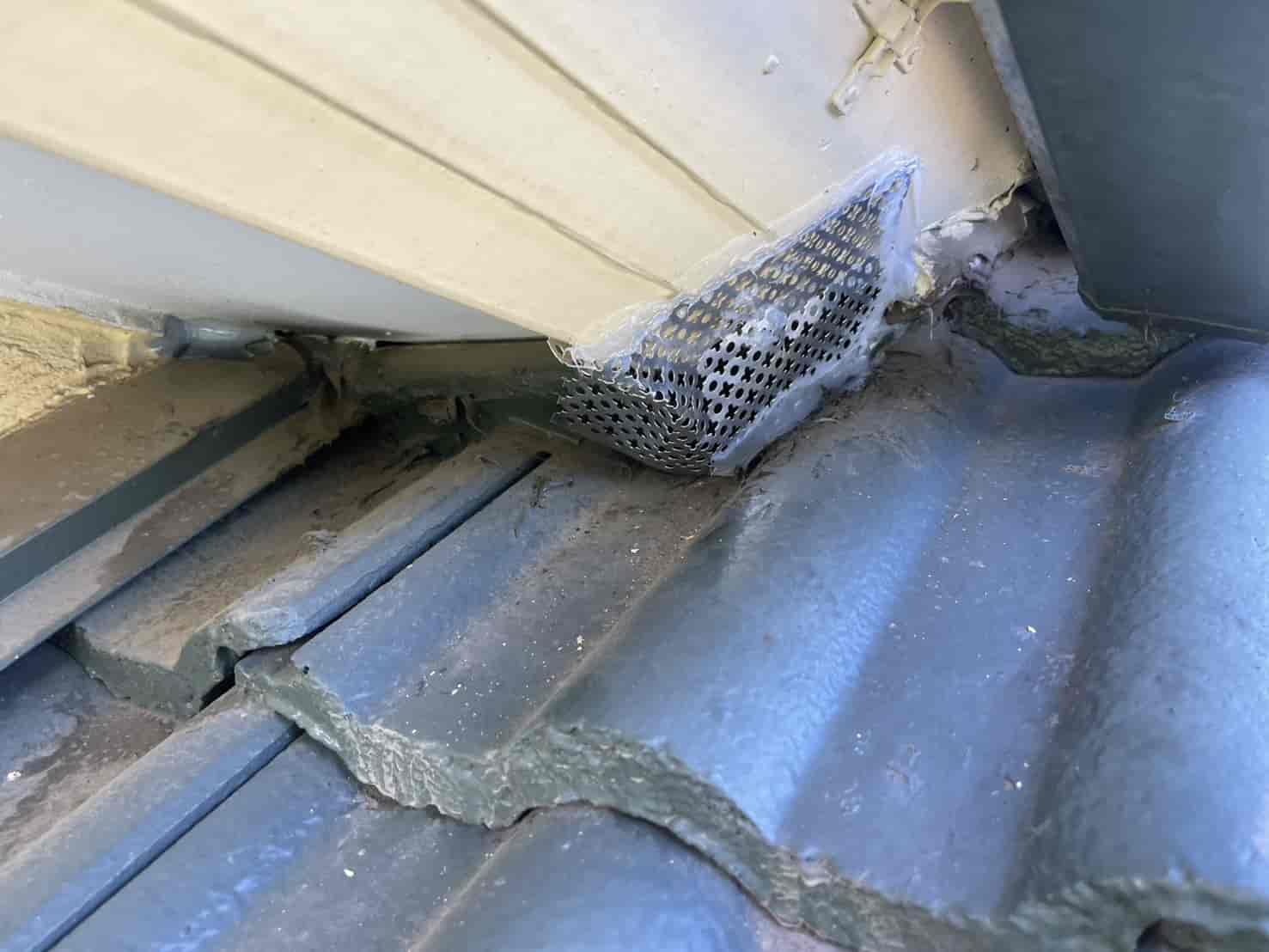 軒天の隙間は防鼠金網とパテ材で補強し、通気口にはパンチングネットを新たに設置。温水器周りのパイプの隙間には、金属メッシュと防鼠コーキングを併用して完全に塞ぎました。柔軟性と耐候性を兼ね備えた素材を使用することで、長期間にわたり効果を維持できる仕様です。